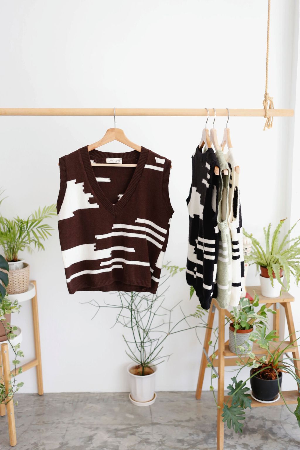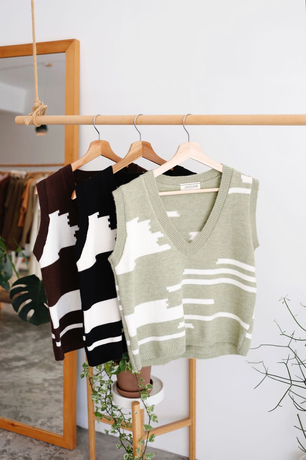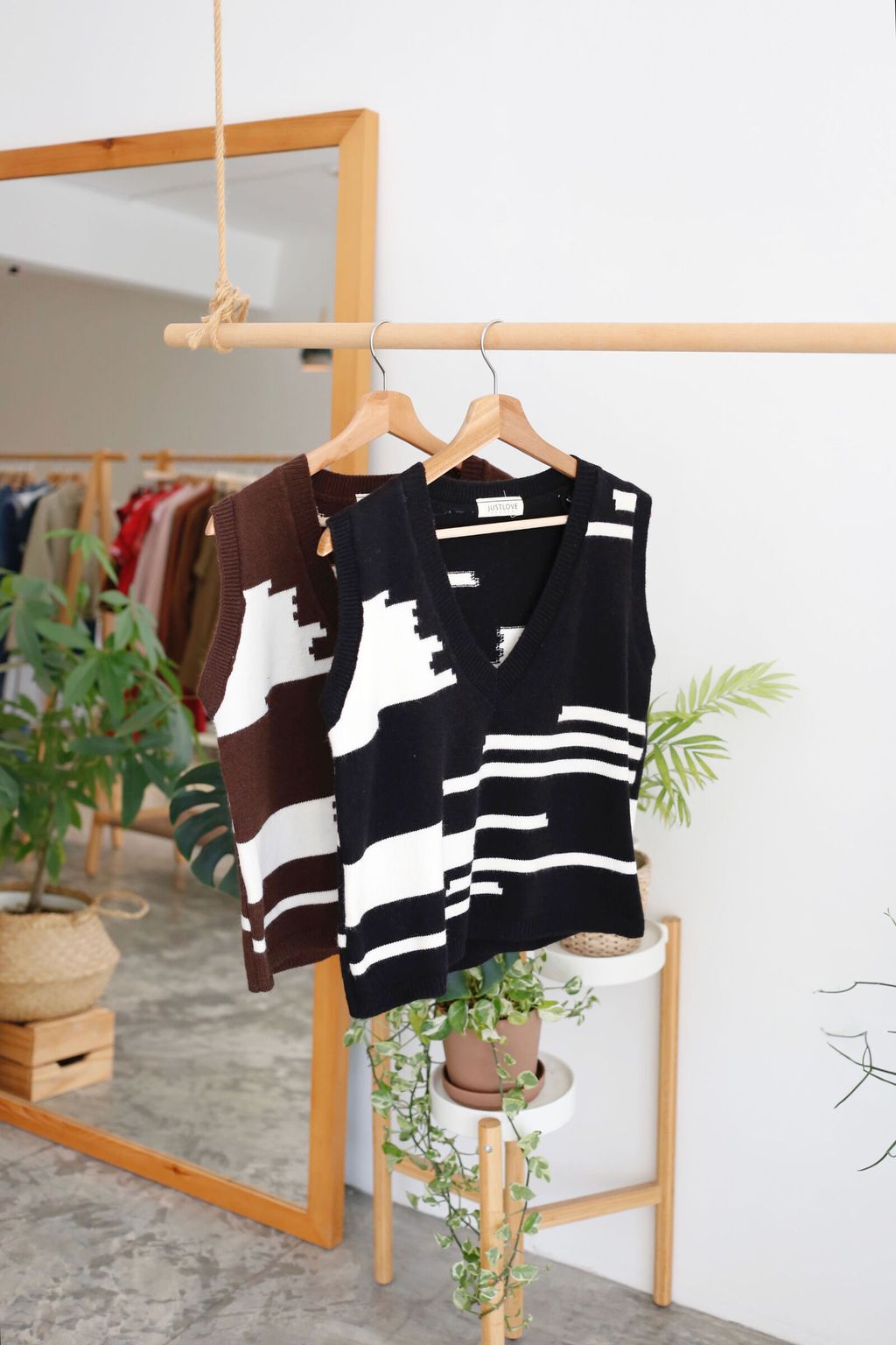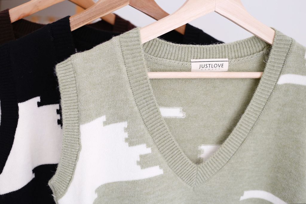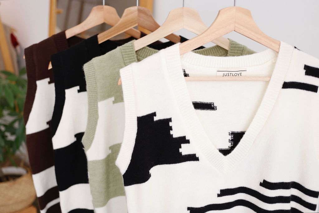 Type: 2-Tone Printed Knit Vest | Stretchable Knit | Kindly Take Note Lower V-Neck