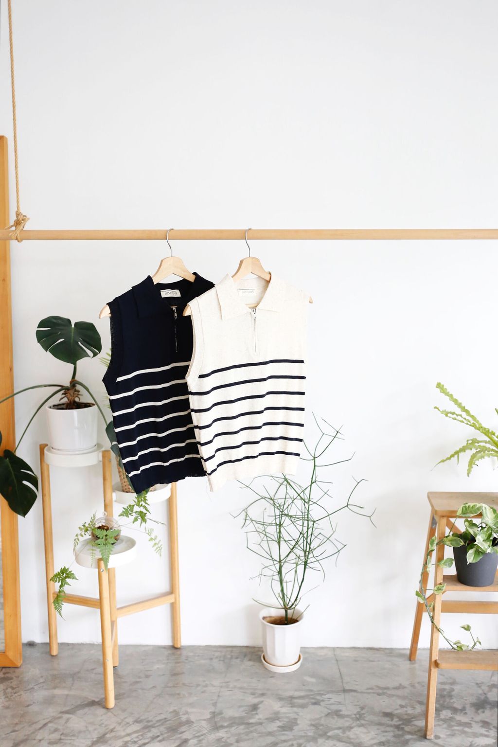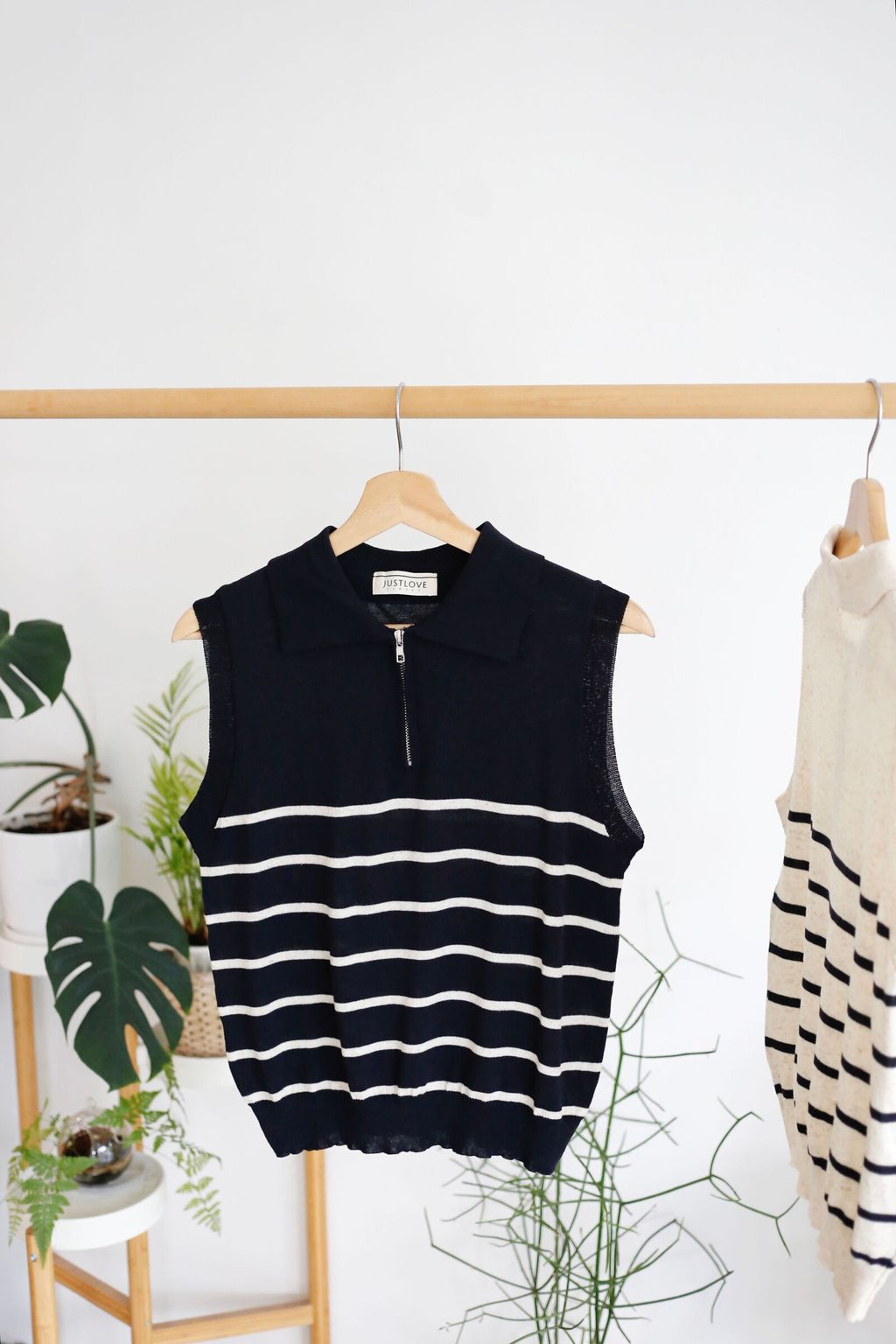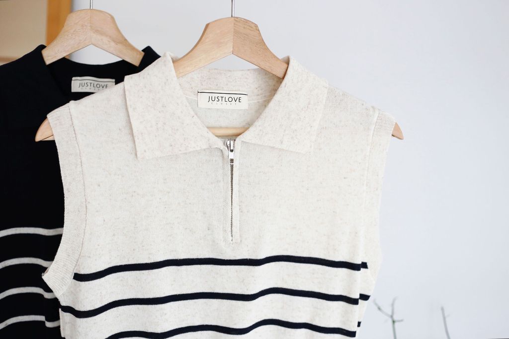 Type: 2-Tone Stripey Soft Knit Blouse | Soft and Thin Knit Fabric | Front Zipper Design