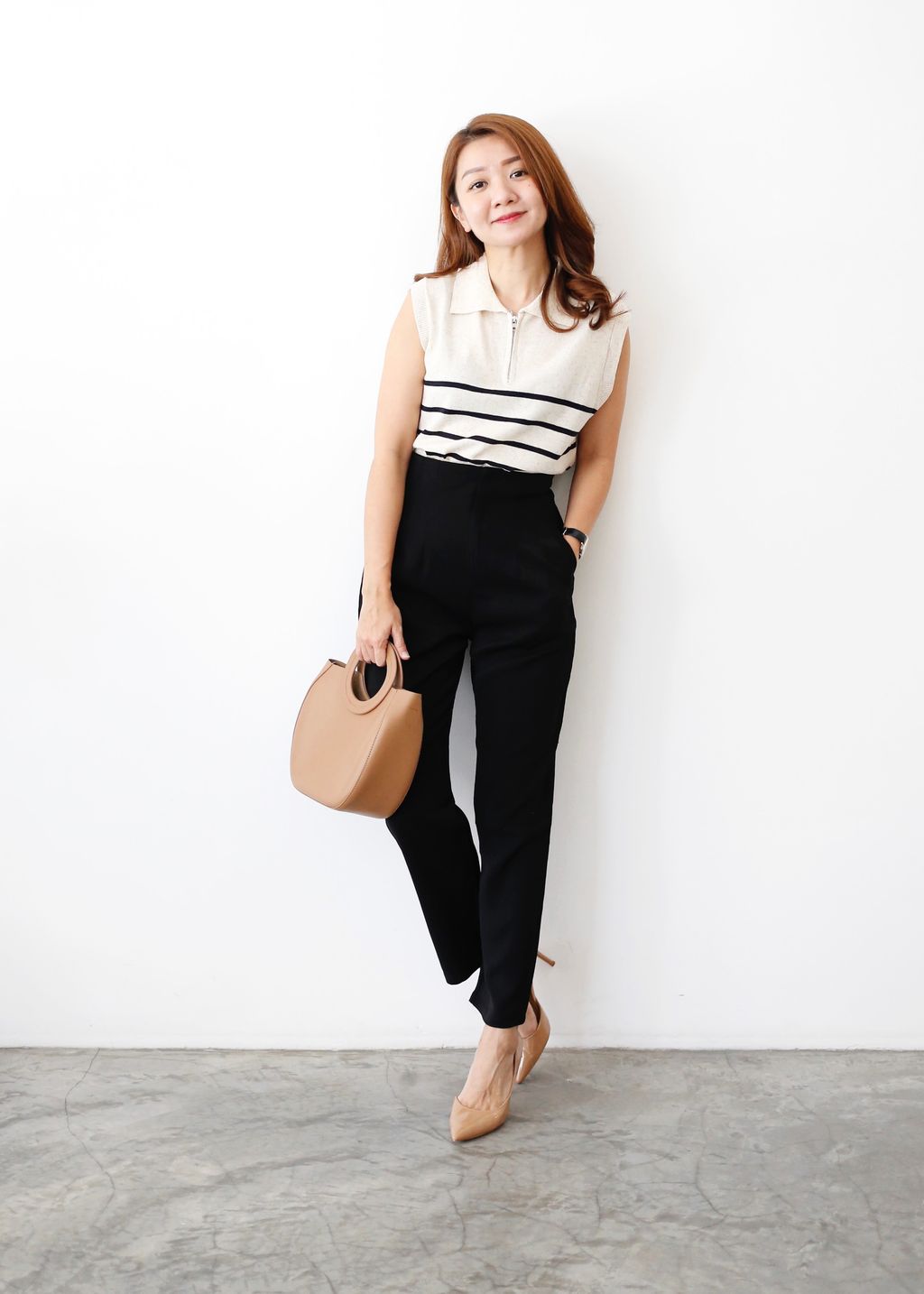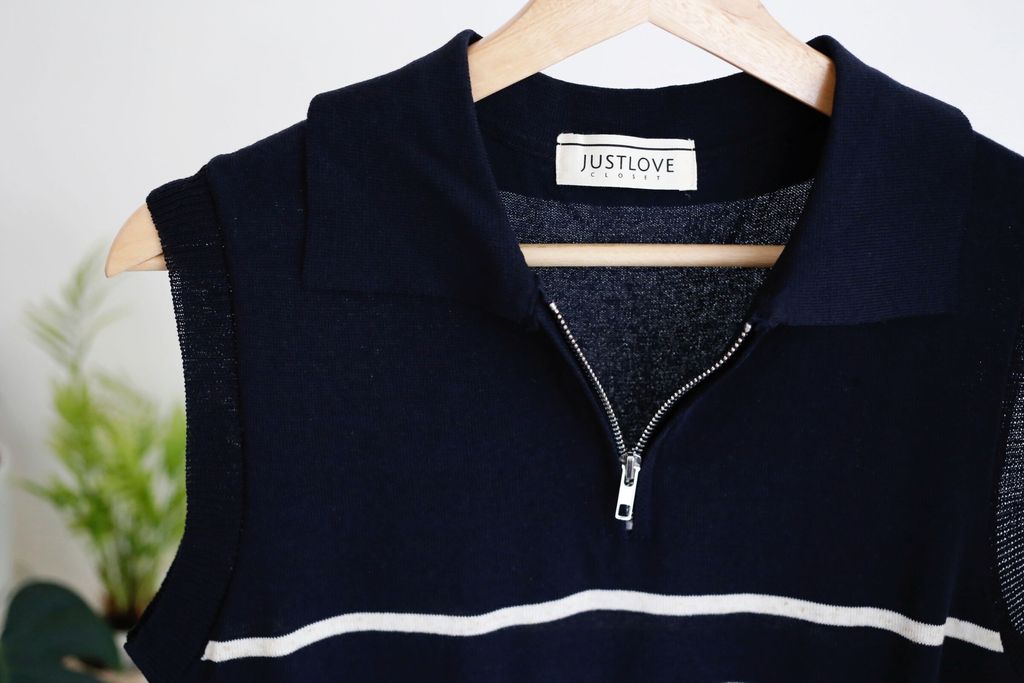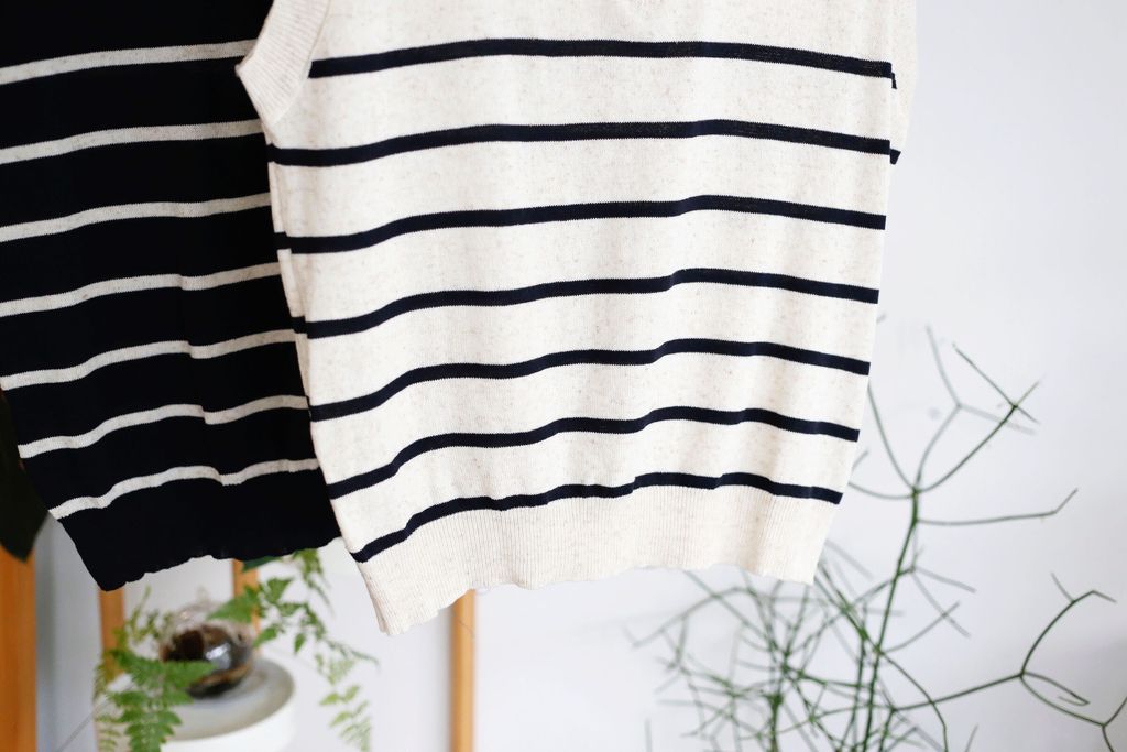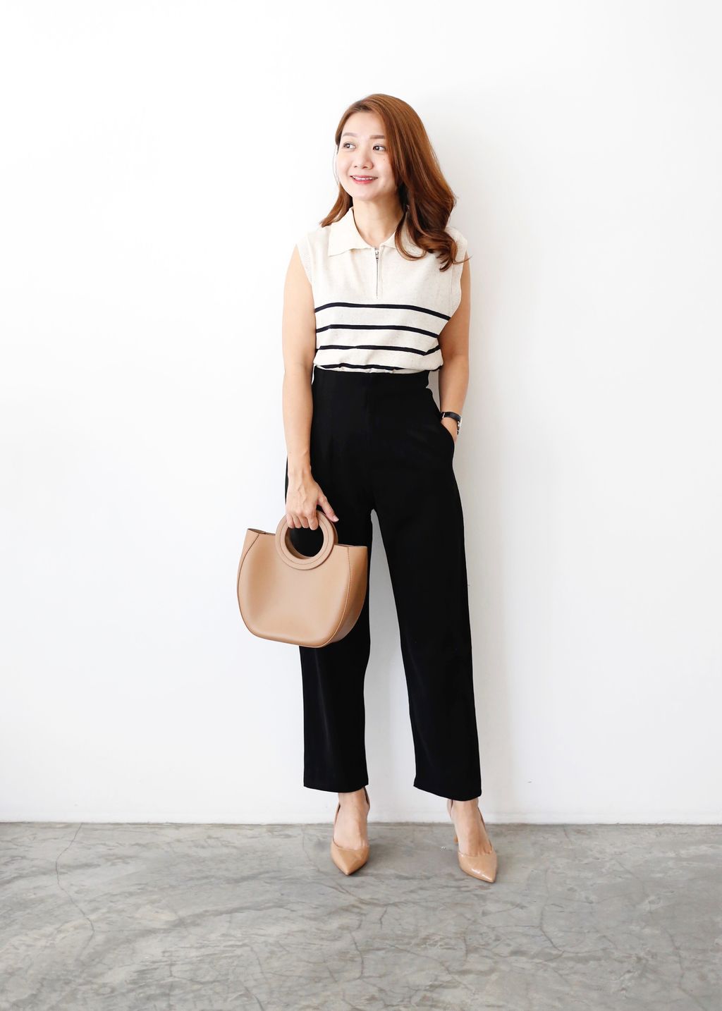 Type: 2-Tone Stripey Soft Knit Blouse | Soft and Thin Knit Fabric | Front Zipper Design