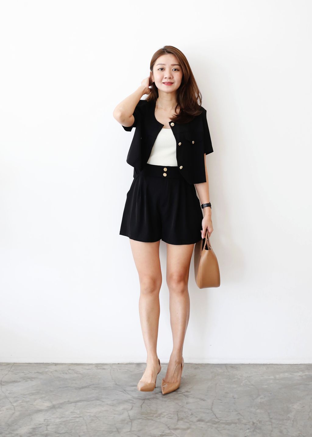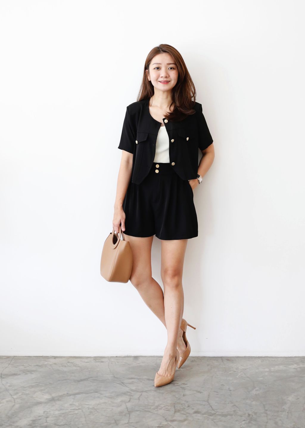Type: 2PCS Button Through Blouse and Short Pants Set | Soft Suit Fabric | Not Stretchable | PREMIUM SERIES | Blouse Comes with Shoulder Pad | Stretchable Waistband for Pants | Front Zipper and Side Pockets for Pants