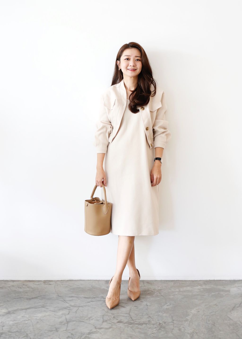 Type: 2PCS Cami Dress and Jacket Set | Not Stretchable | Wool Fabric | Dress Length Adjustable | Side Zipper for Dress