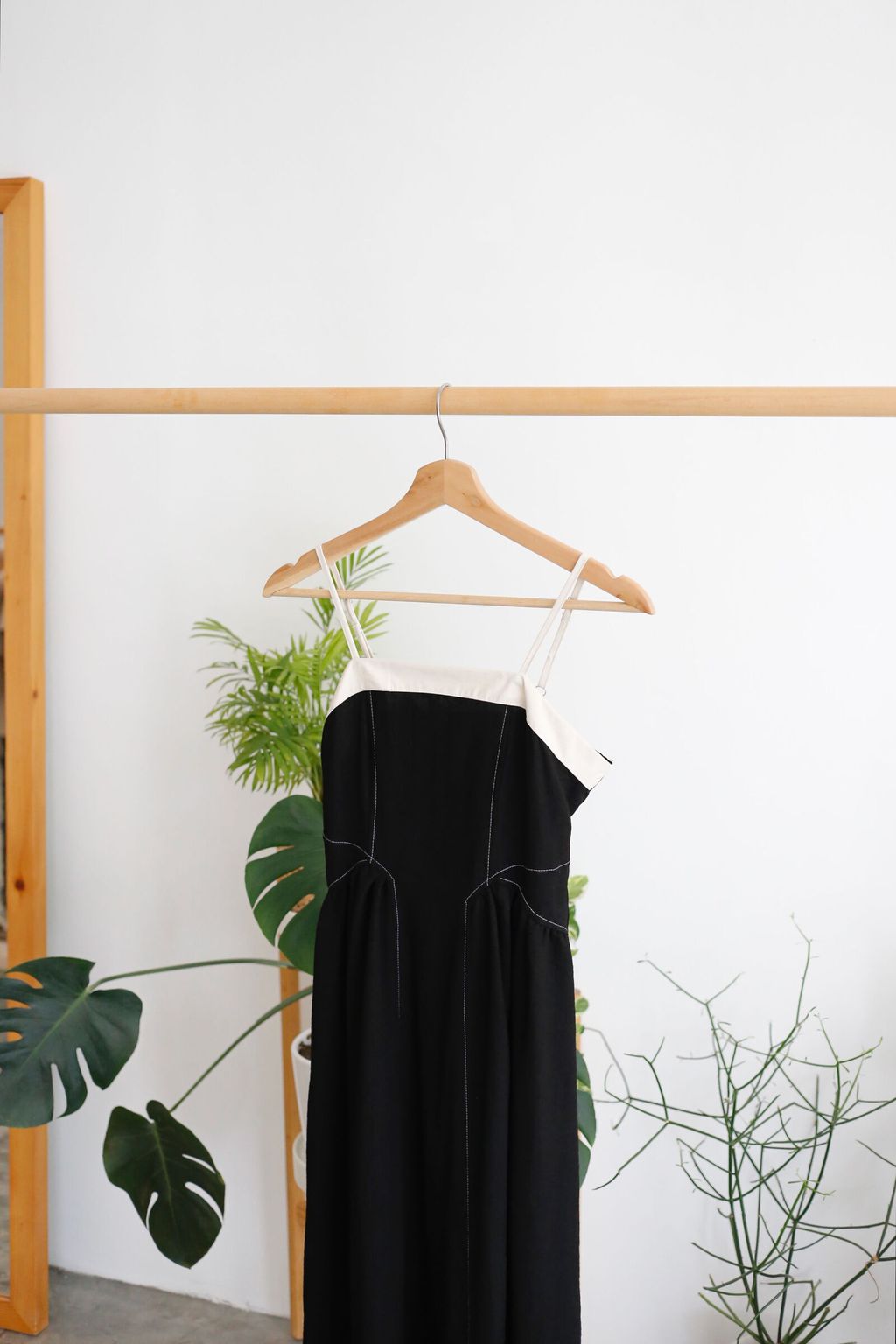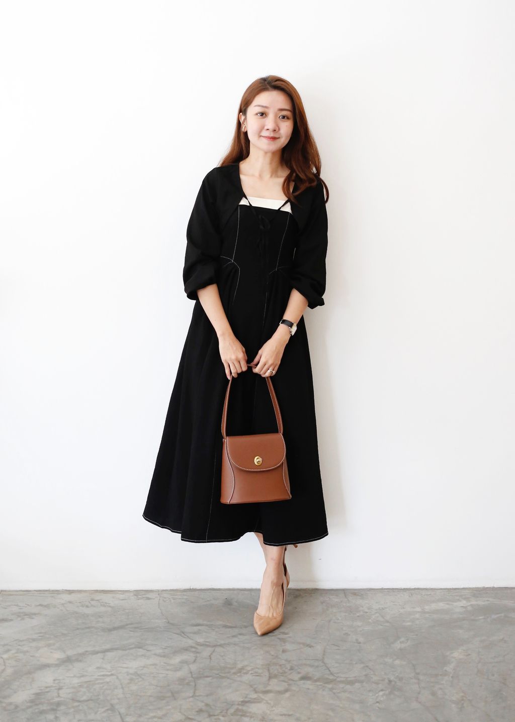 Type: 2PCS Contrast Stitch Dress with Short Shawl | Crepe Chiffon Fabric | Smock Design at the Back | Shawl Can Be Separated | Strap Length Adjustable