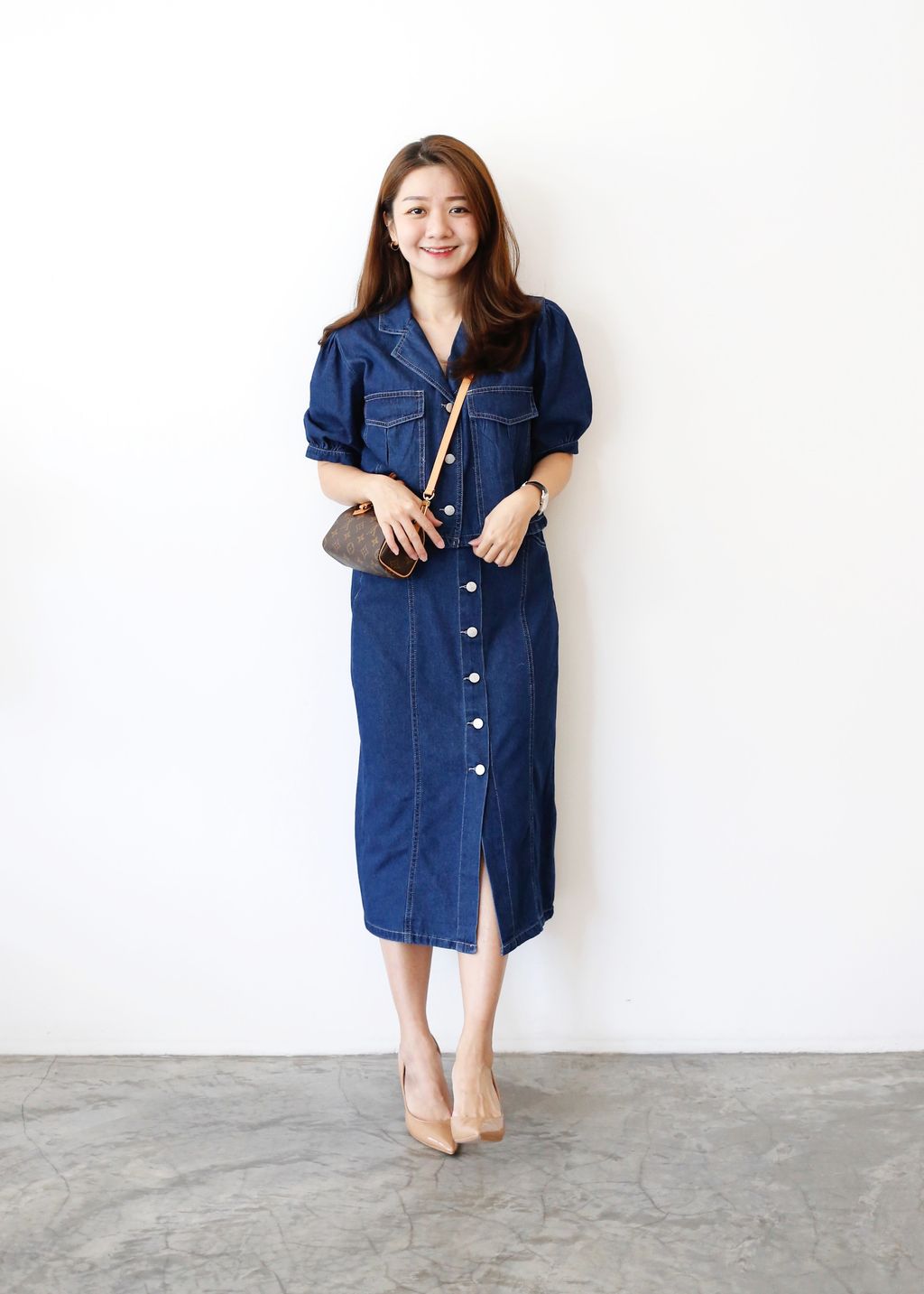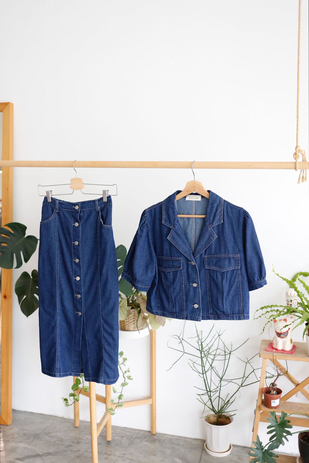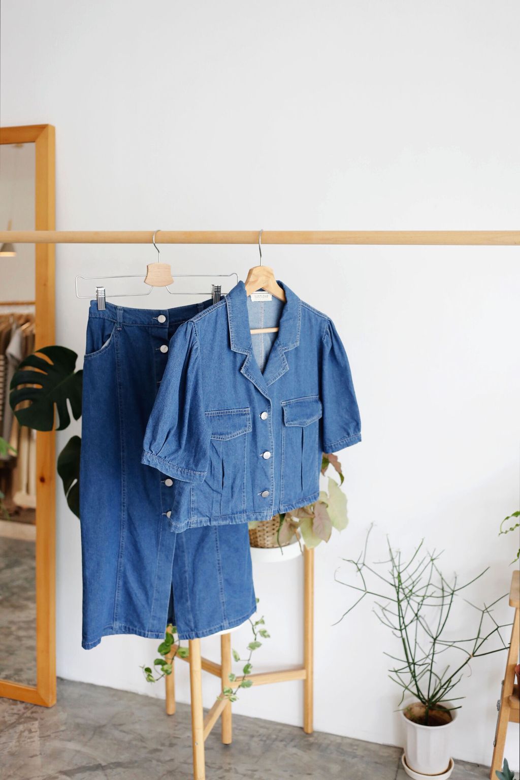 Type: 2PCS Denim Lapel Neck Shirt And Midi Skirt Set | Non Stretchable Denim | Button Through for Top and Bottom | Stretchable Waistband for Bottom