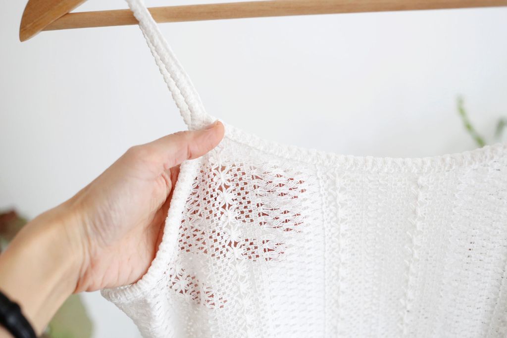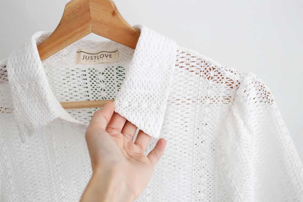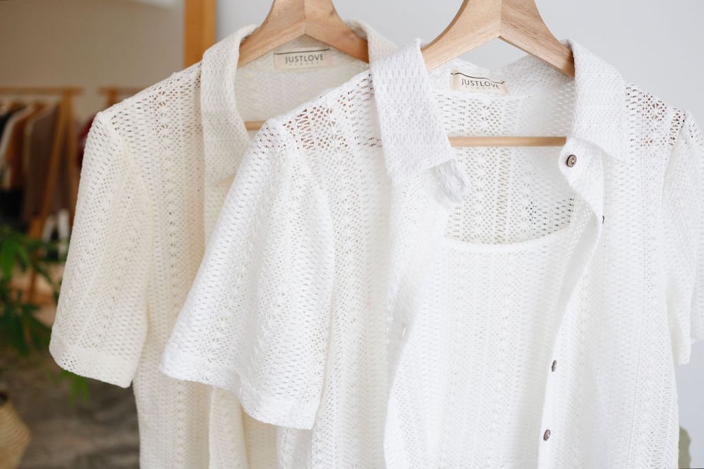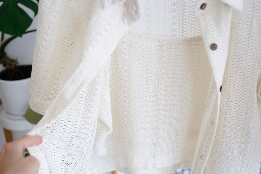 Type: 2PCS Eyelet Crochet Cami Top and Shirt Set | Crochet Knit Fabric | Slightly Stretchable | Kindly Hand Wash