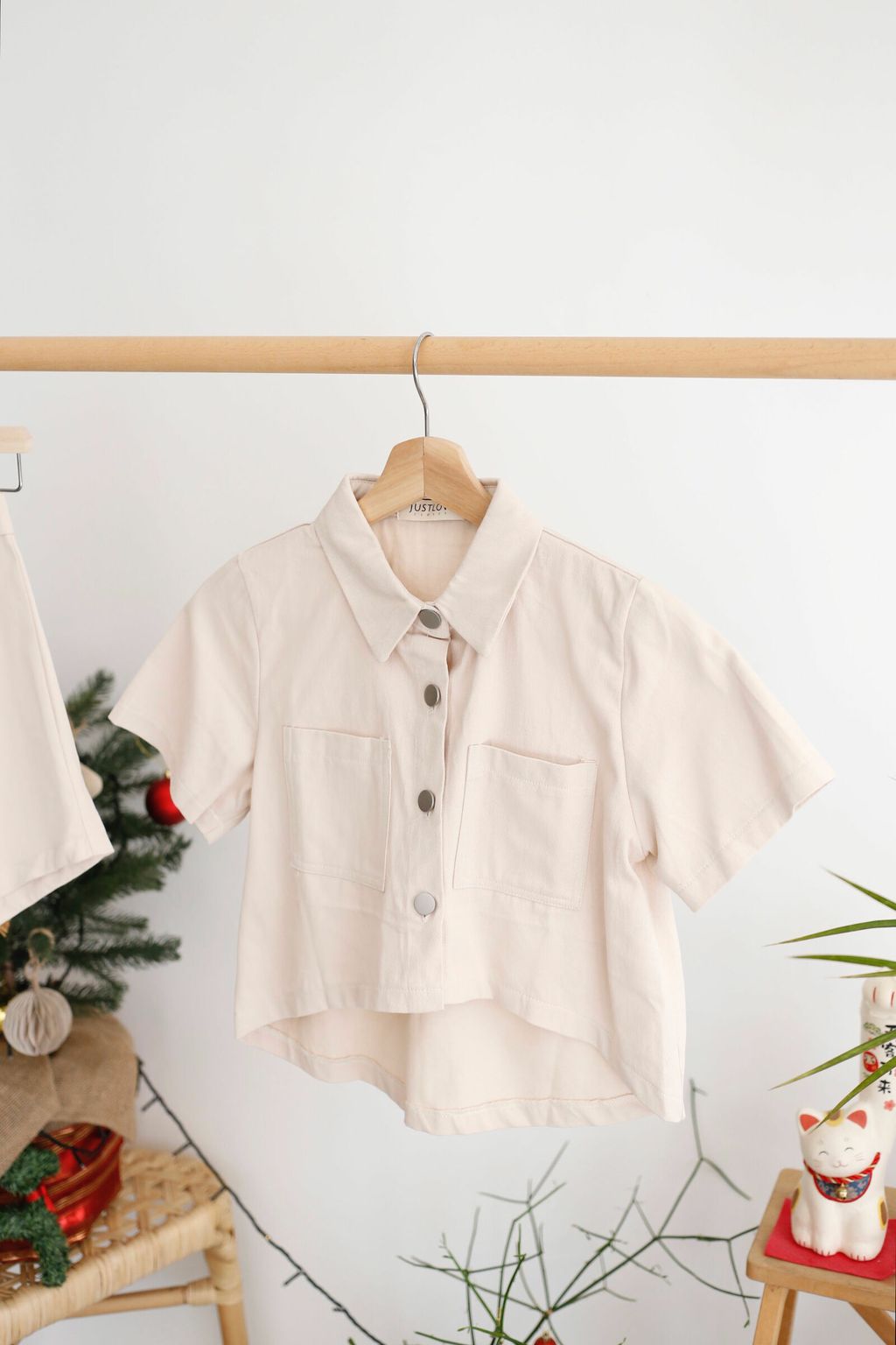 Type: 2PCS High Low Shirt and Short Pants Set | Denim Fabric | Not Stretchable | Curved Up Design for Pants | Pants Waist Slightly Smaller, Kindly Check Measurement