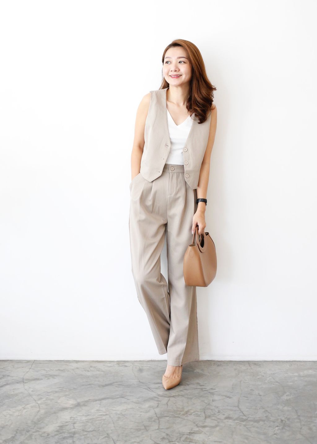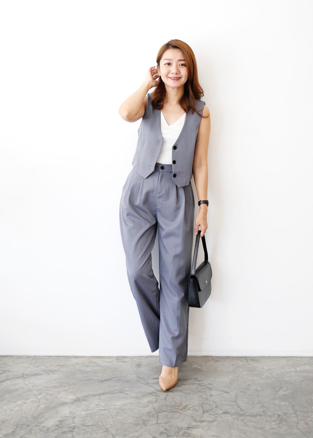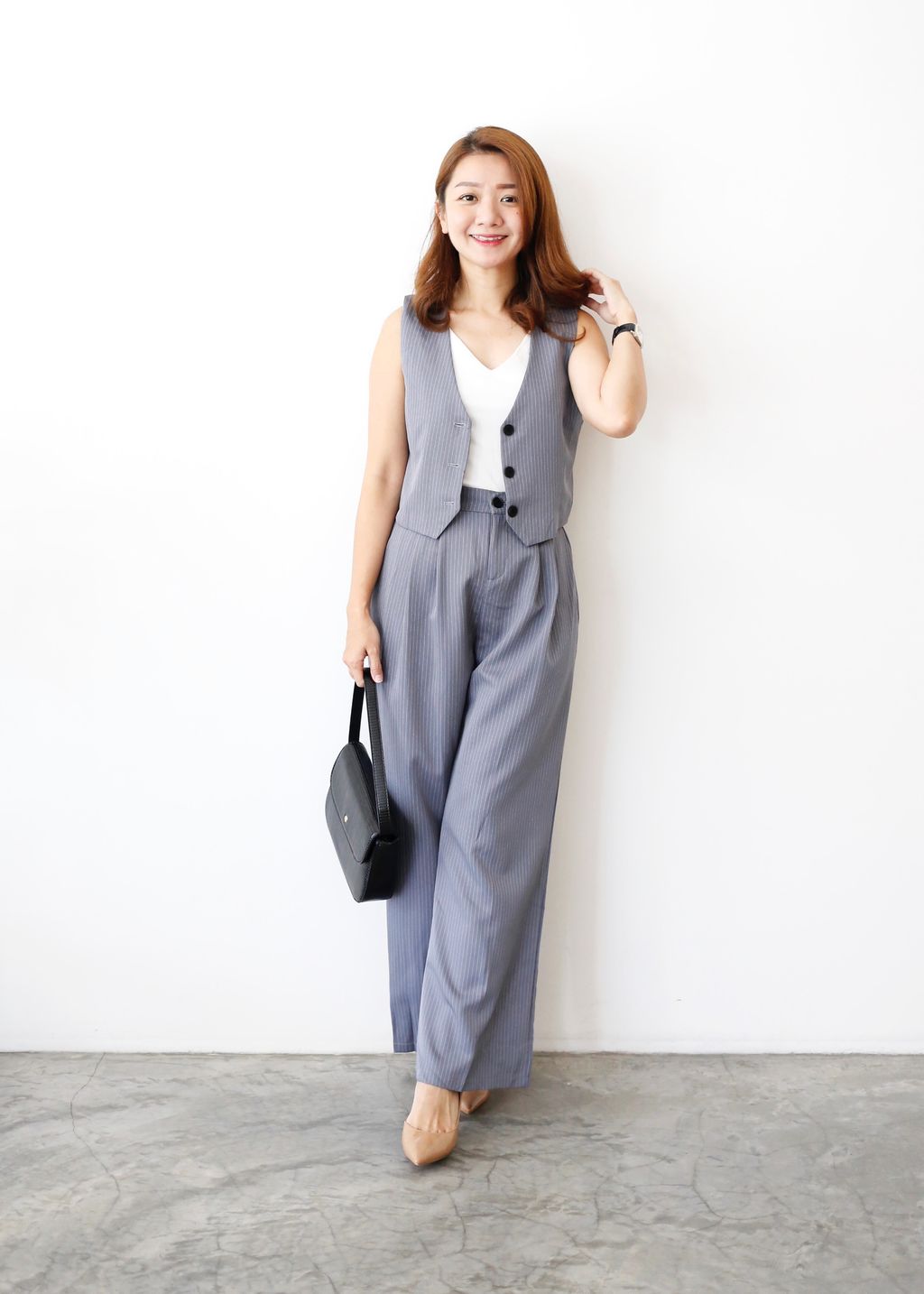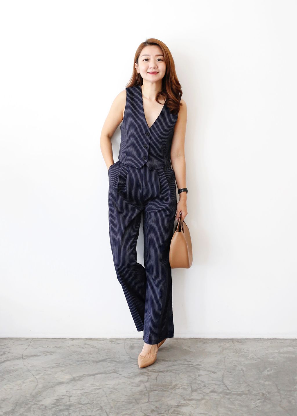 Type: 2PCS Stripey Vest and Long Pants Suit Set | Suit Fabric | Vest Comes with Lining | Stretchable Waistband for Pants | Front Zipper | Side Pockets