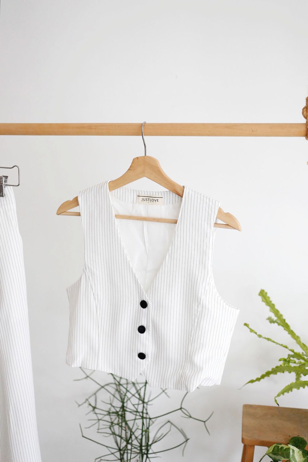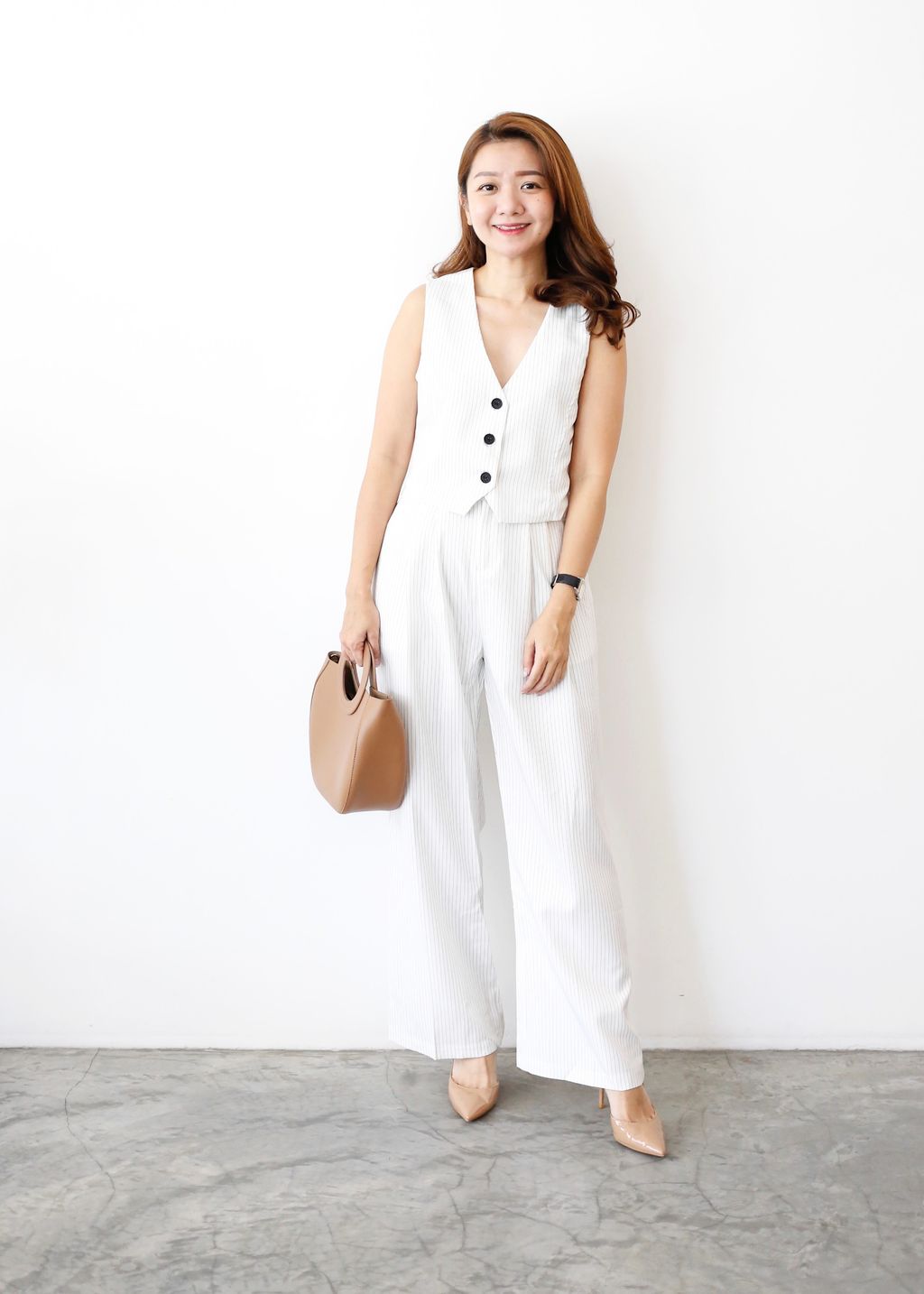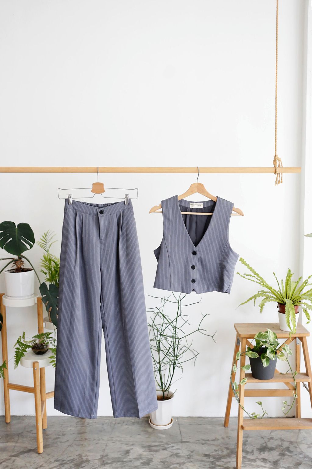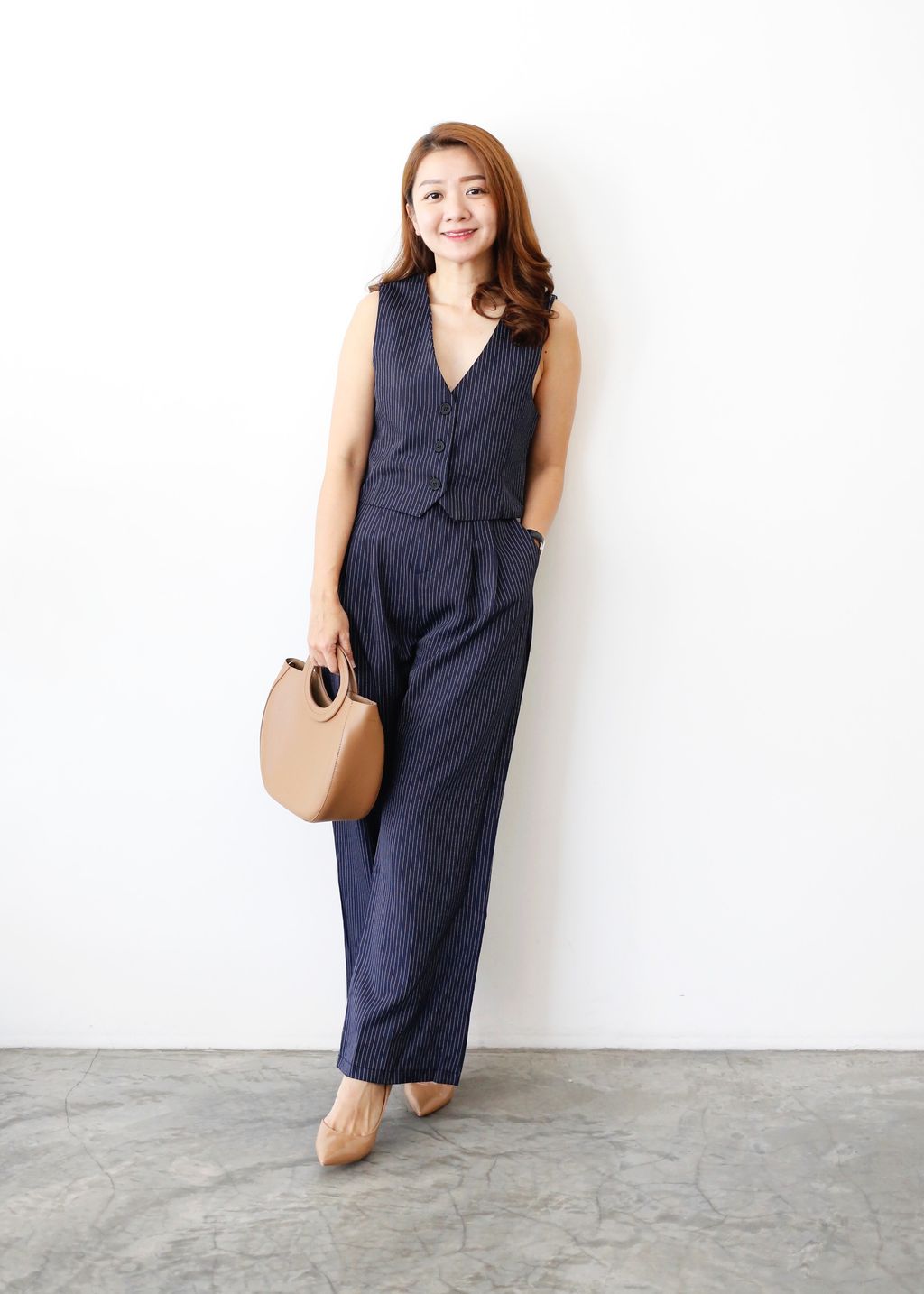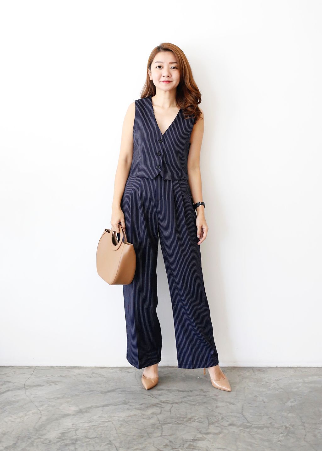 Type: 2PCS Stripey Vest and Long Pants Suit Set | Suit Fabric | Vest Comes with Lining | Stretchable Waistband for Pants | Front Zipper | Side Pockets