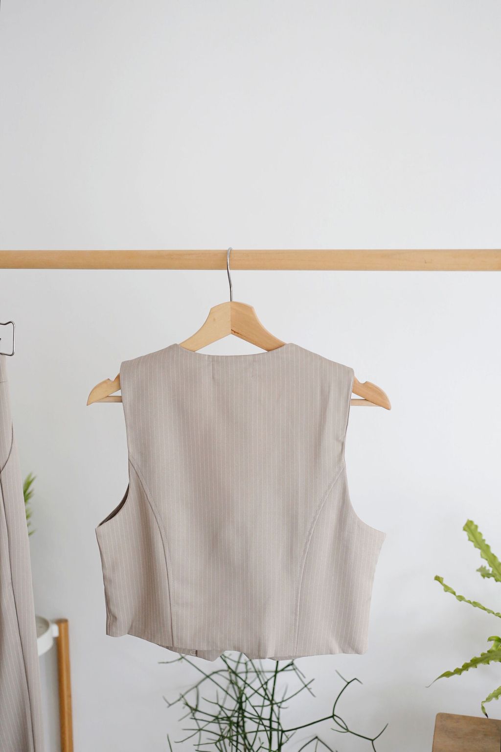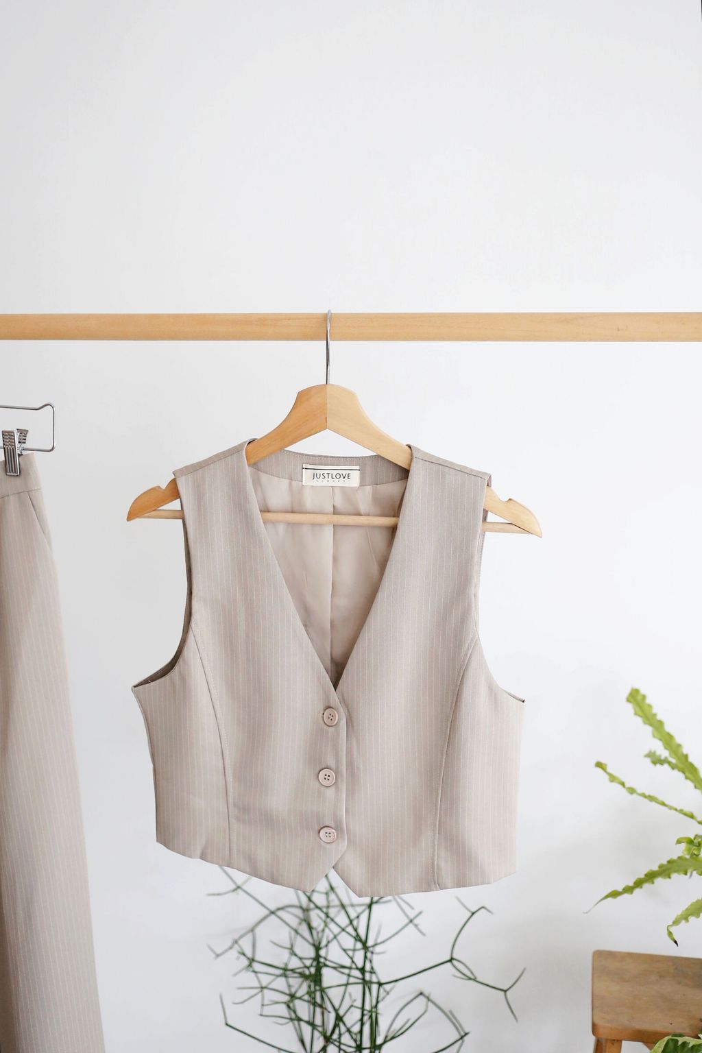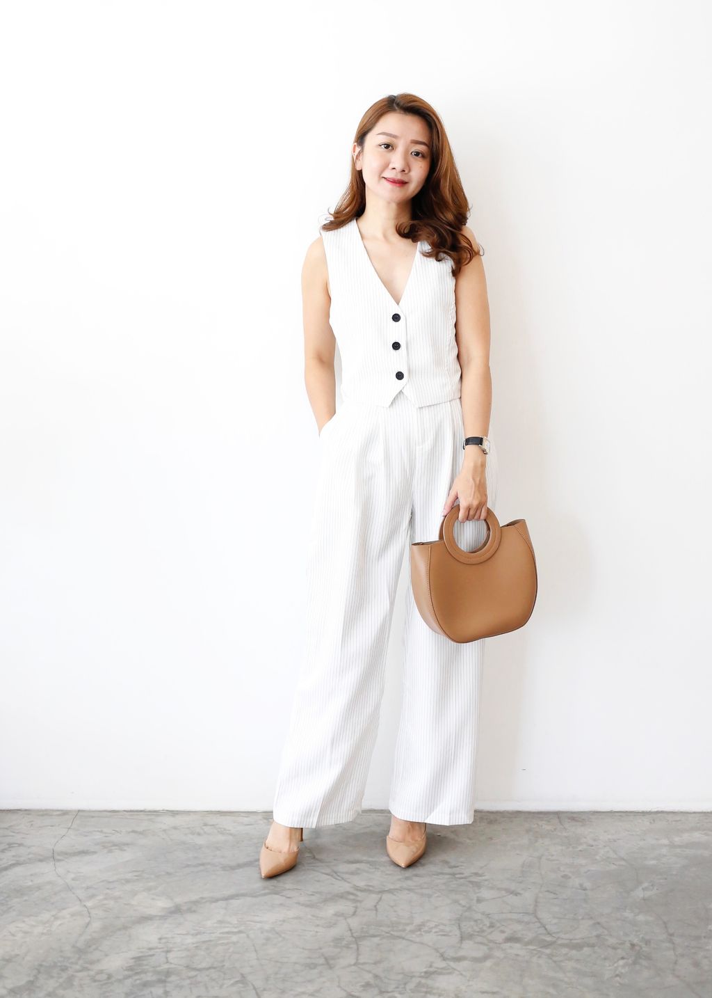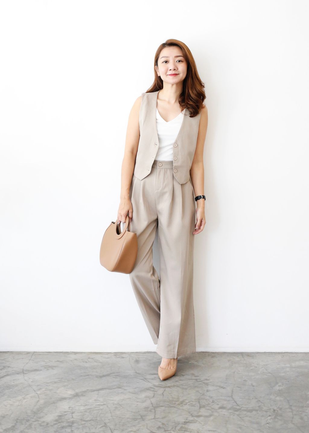 Type: 2PCS Stripey Vest and Long Pants Suit Set | Suit Fabric | Vest Comes with Lining | Stretchable Waistband for Pants | Front Zipper | Side Pockets