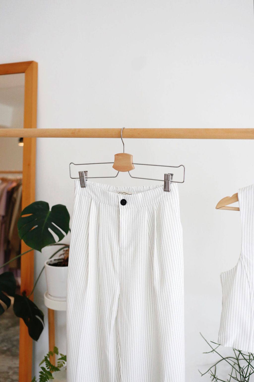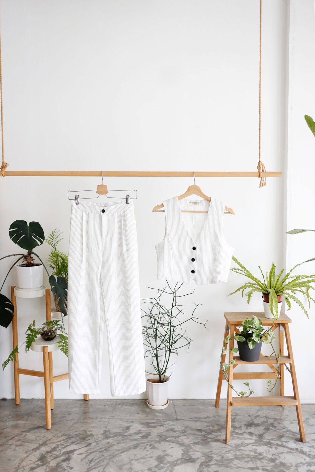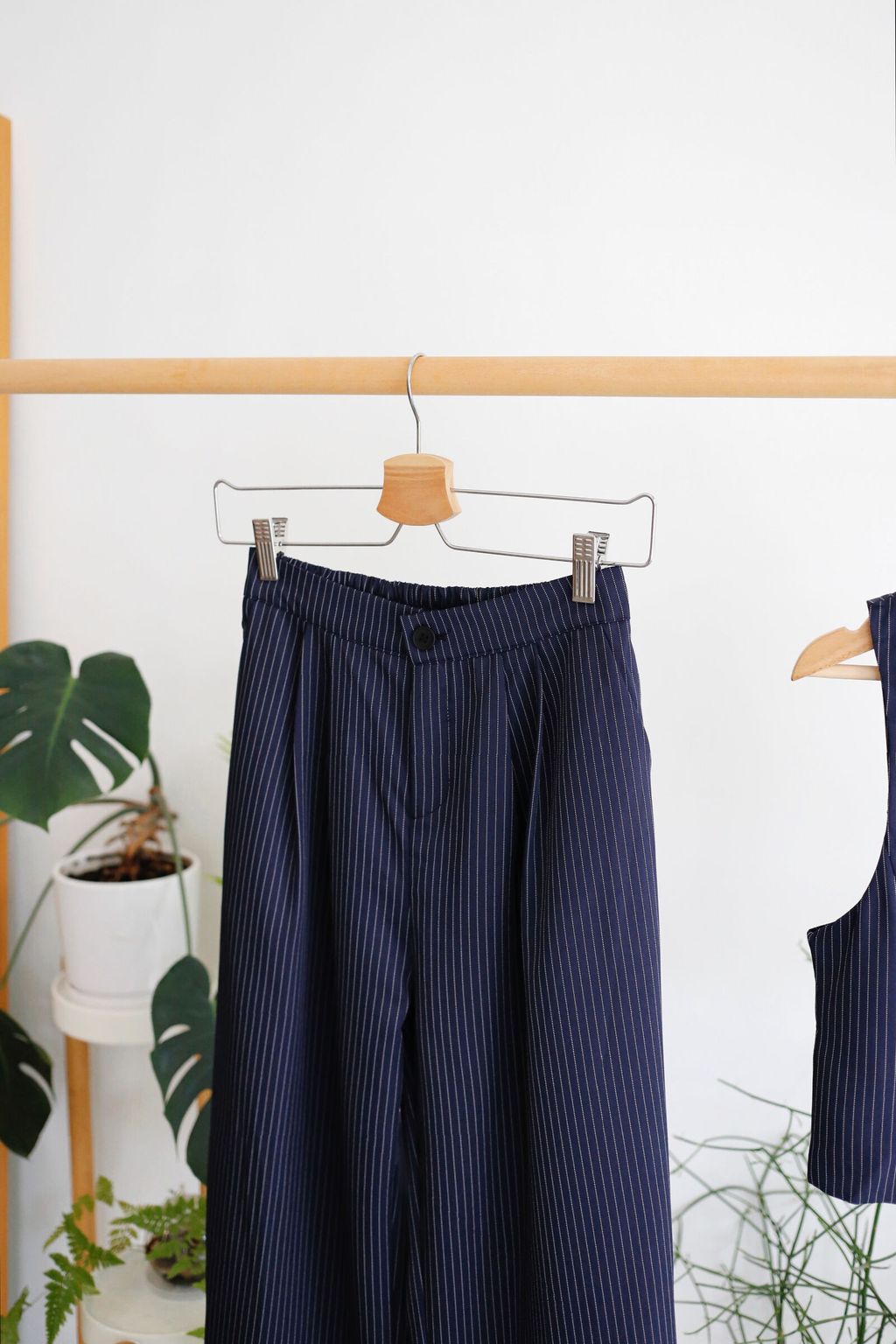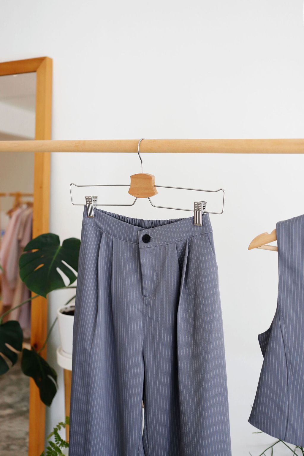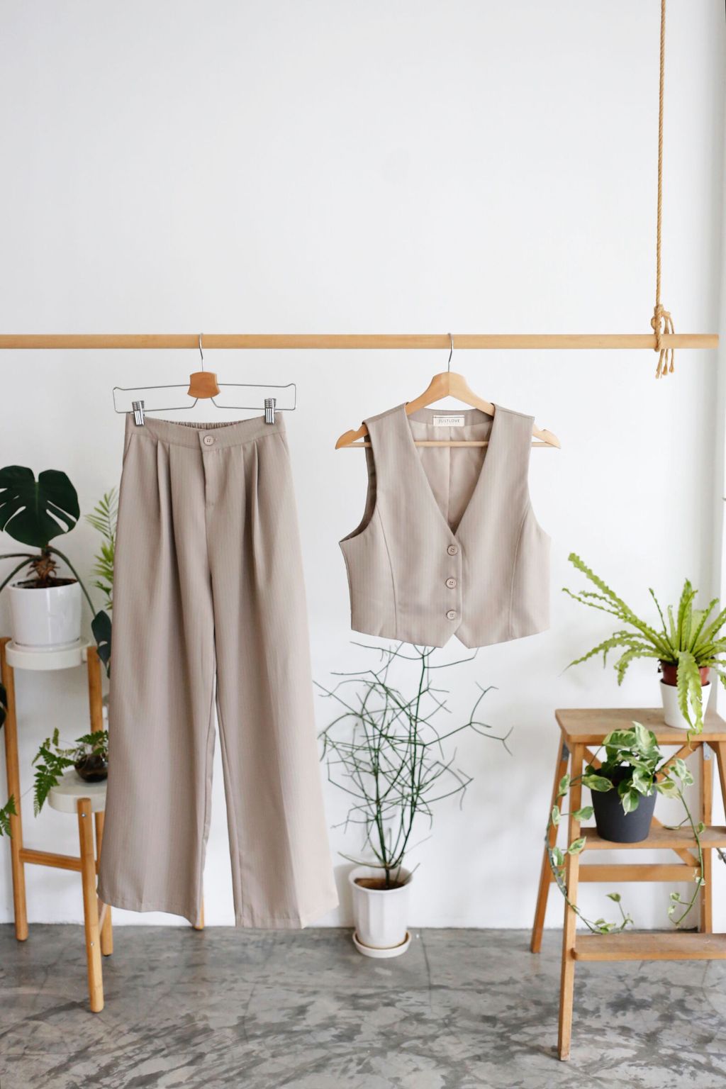 Type: 2PCS Stripey Vest and Long Pants Suit Set | Suit Fabric | Vest Comes with Lining | Stretchable Waistband for Pants | Front Zipper | Side Pockets
