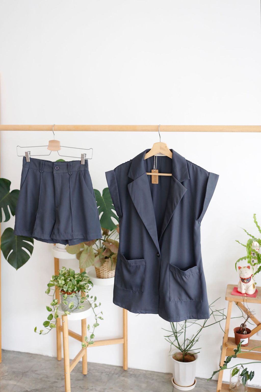 Type: 2PCS Suit Vest and Short Pants Set | Suit Fabric | Not Stretchable | Folded Sleeves for Vest | Stretchale Waistband for Pants | Front Zipper and Side Pockets for Pants | Pants Cutting Slightly Small, Kindly Refer to Measurement | Kindly Use Washing Net