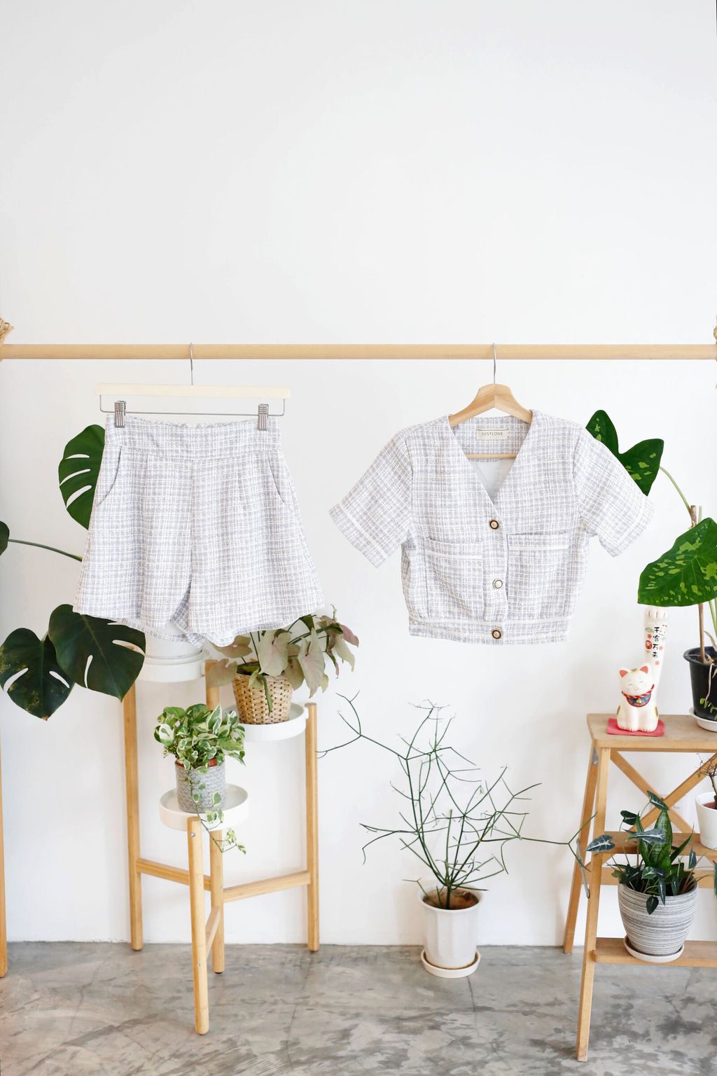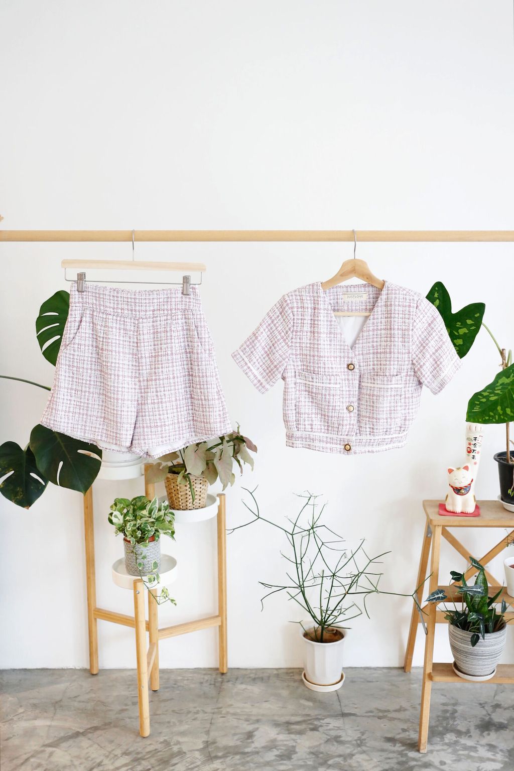 Type: 2PCS Tweed Top and Short Pants Set | Tweed Fabric with Full Lining for Top and Pants | Kindly Hand Wash