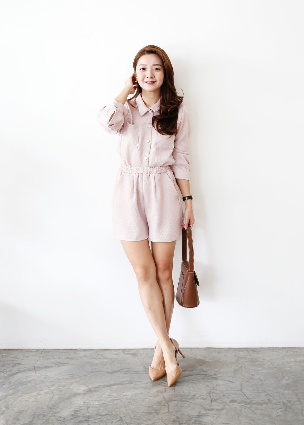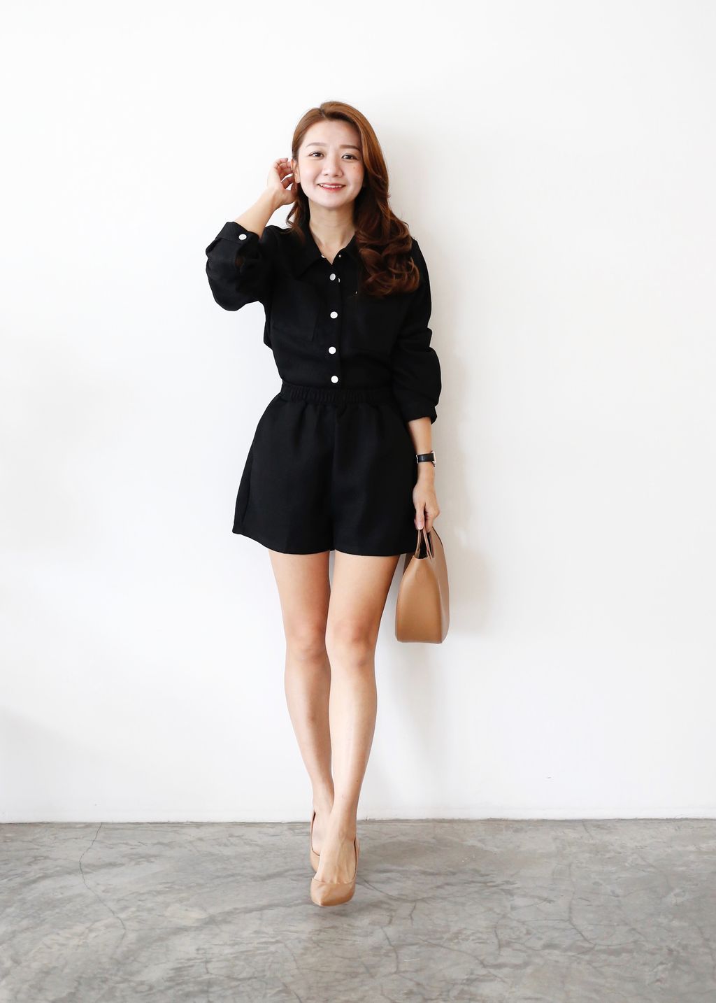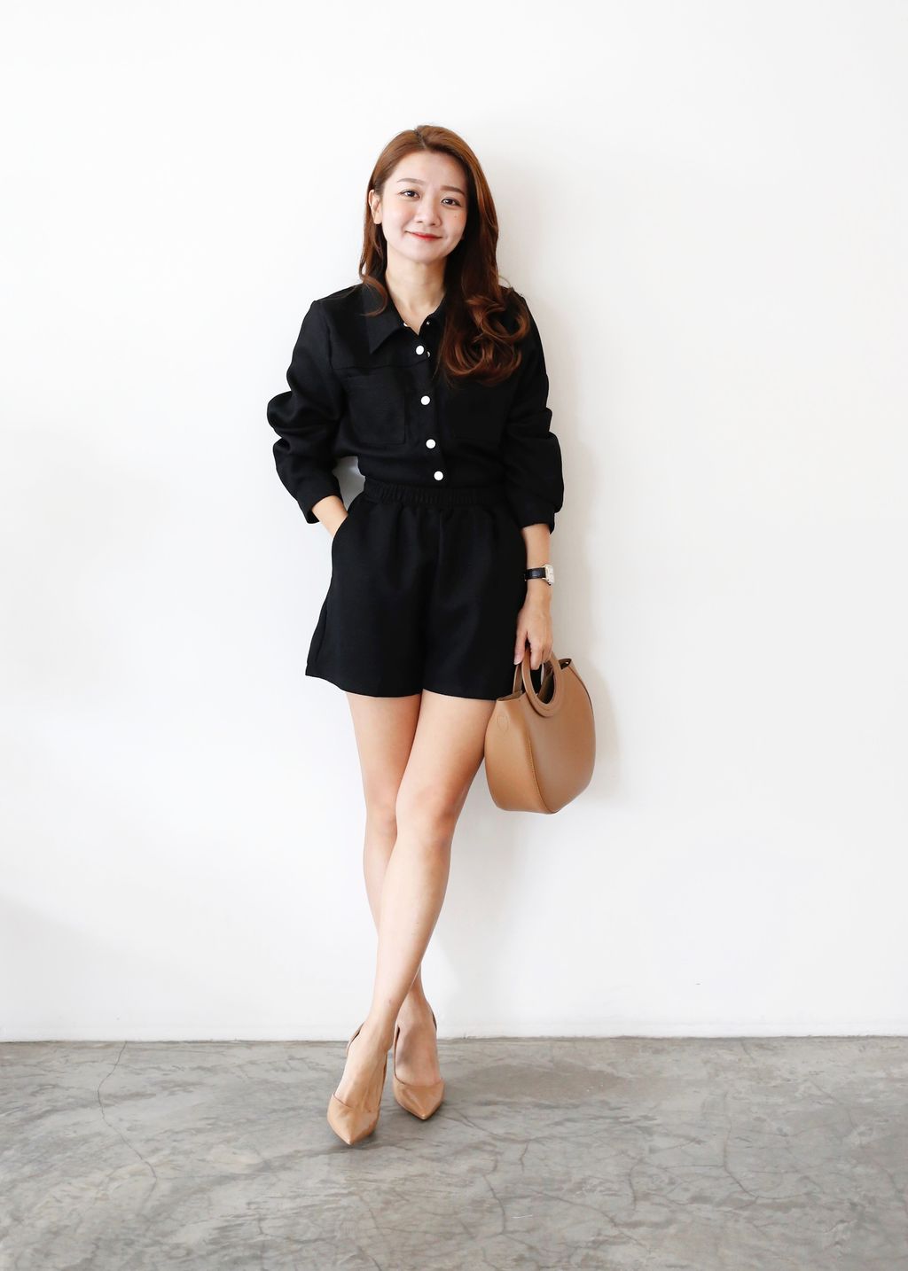 Type: 2PCS Waffle Long Sleeves Shirt and Shorts Set | Not Stretchable Waffle Fabric | Stretchable Waistband for Shorts | Side Pockets
