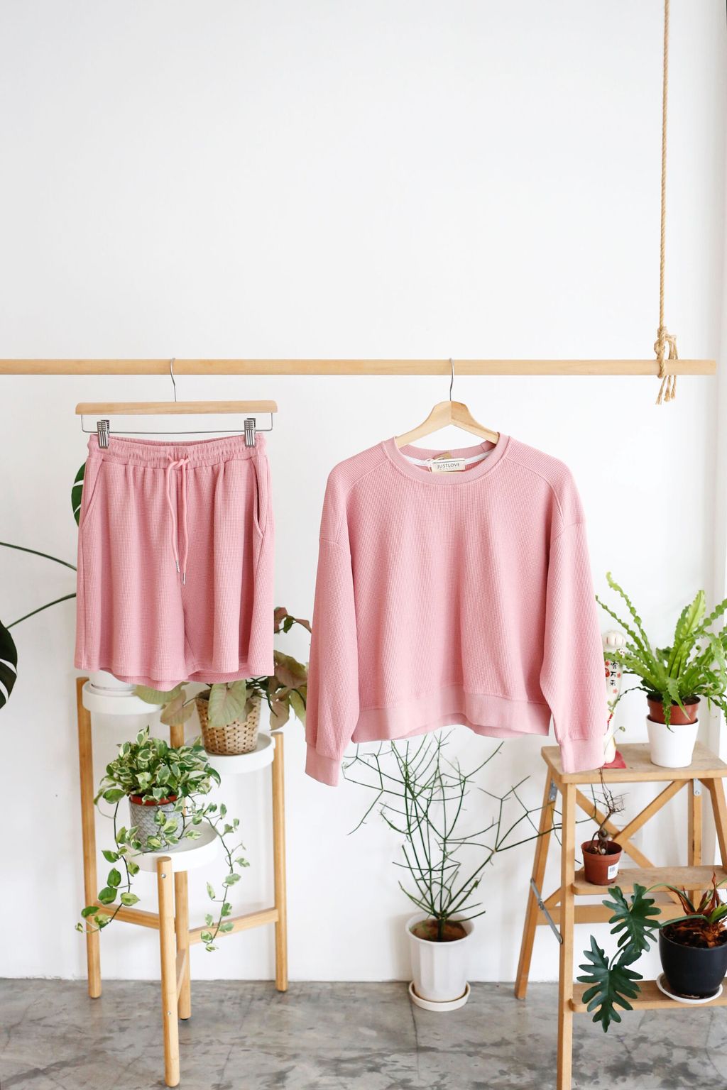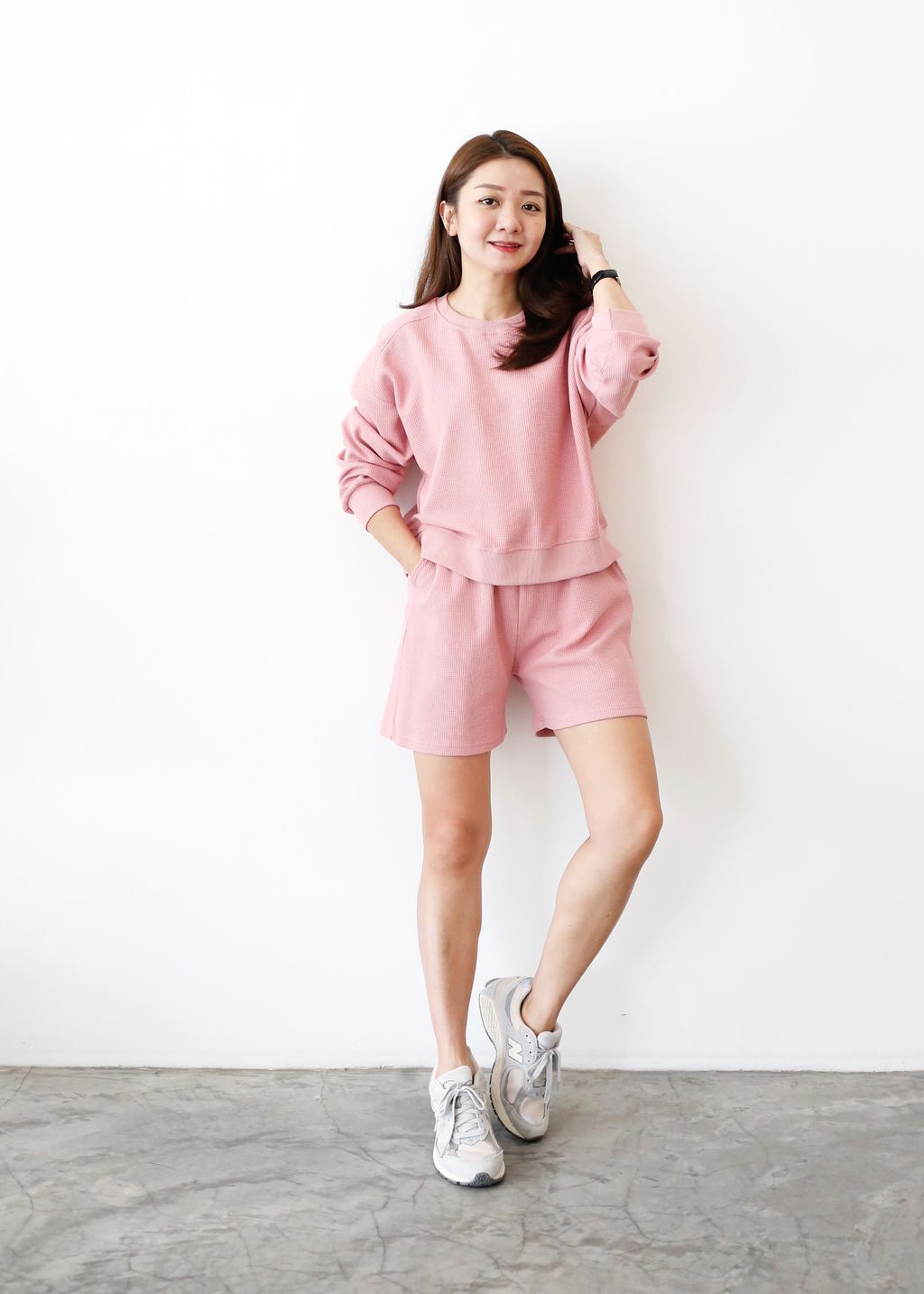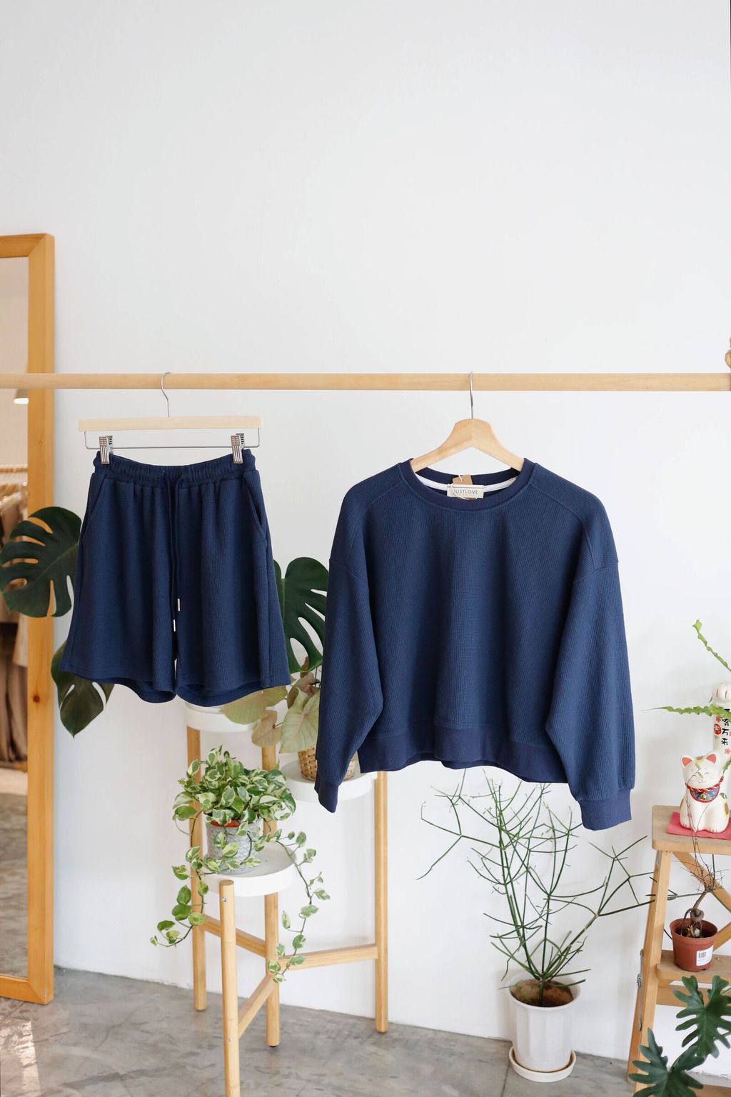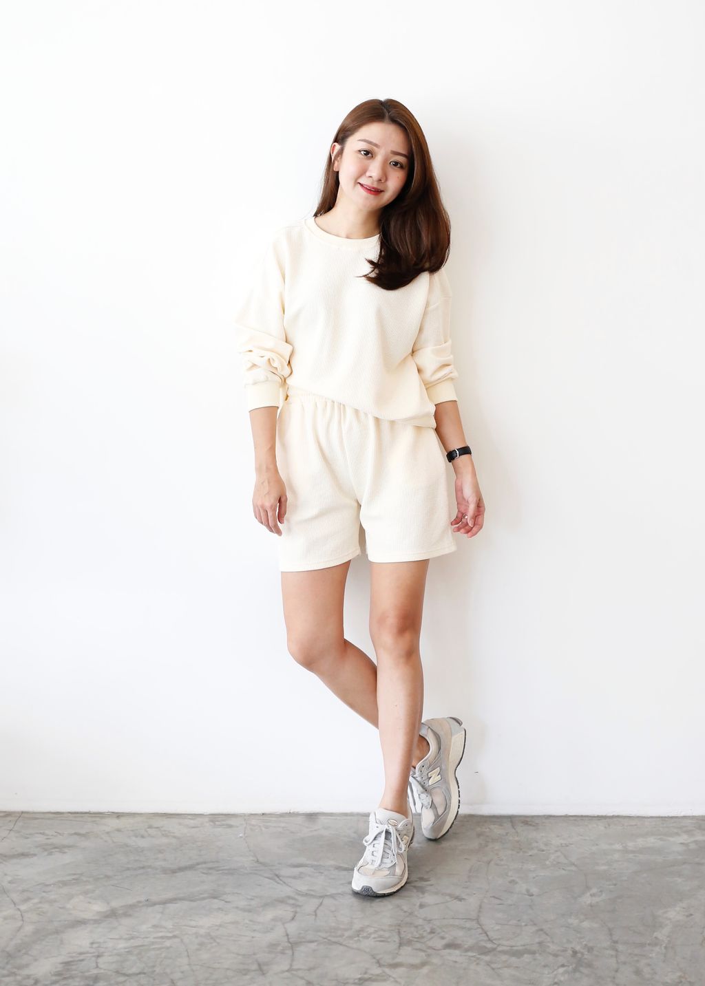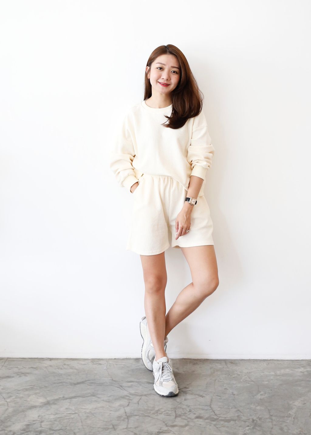 Type: 2PCS Waffle Sweat Shirt and Pants Set | Stretchable Waffle Fabric | Stretchable Waistband For Pants | Pants with Drawstring | Side Pockets