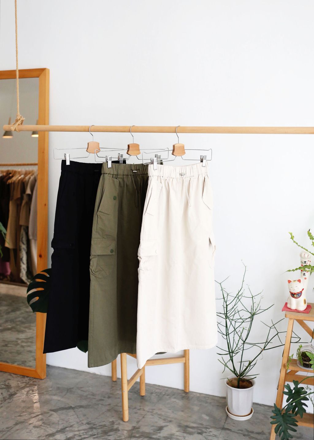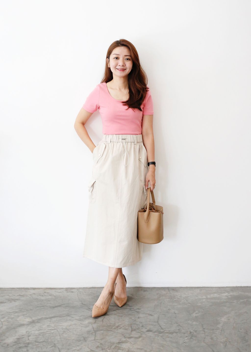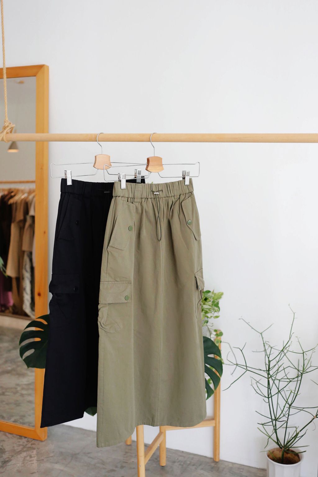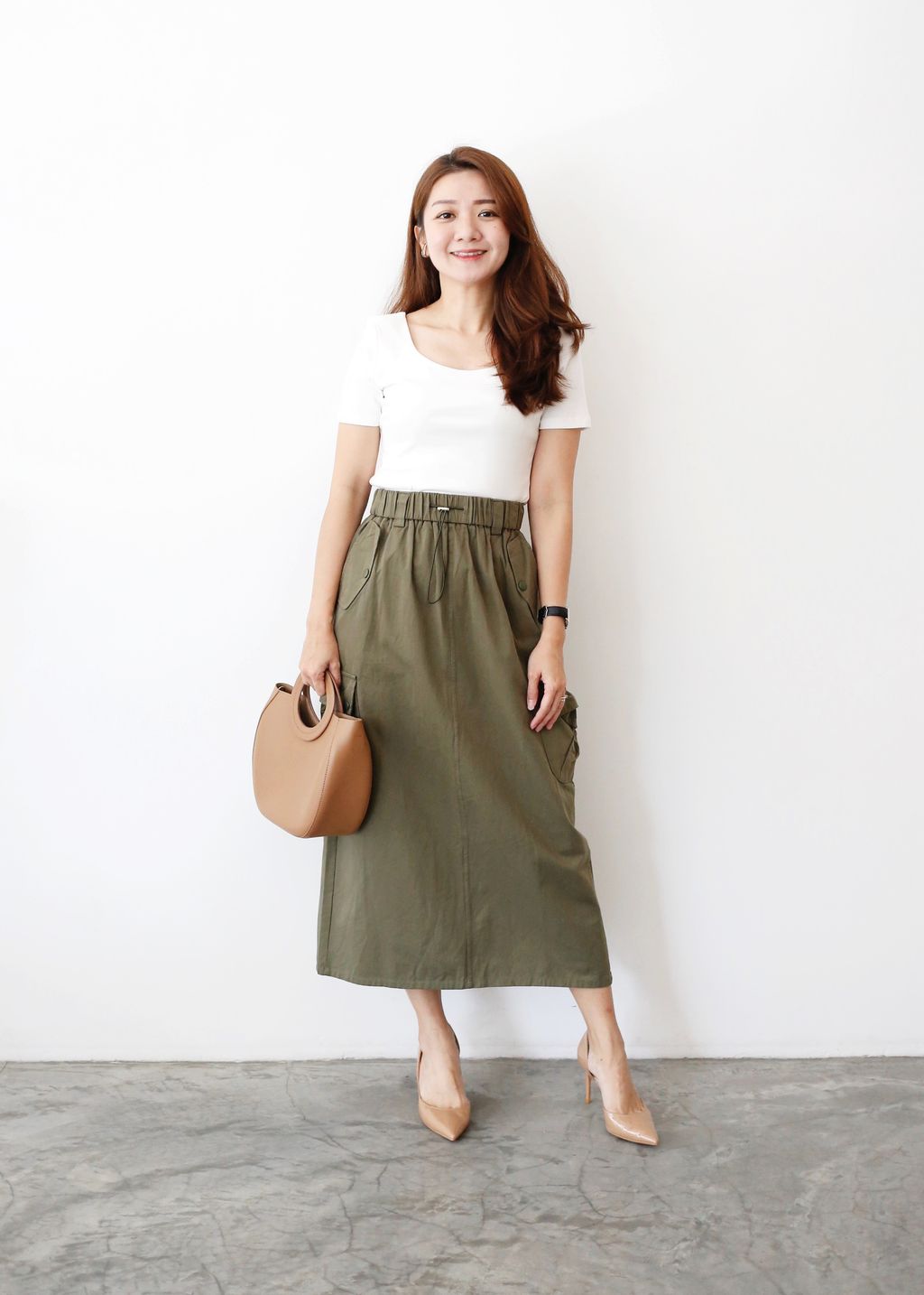 Type: A-Line Cargo Skirt with Drawstring | Cotton Fabric | Non Stretchable | Stretchable Waistband with Drawstring | Side Pockets | Back Slit Design