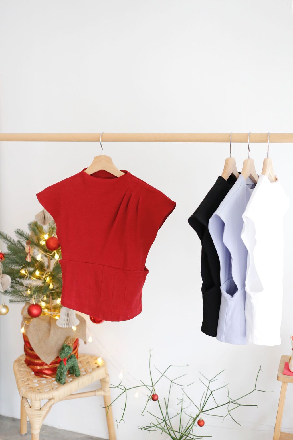 Type: Boat Neck Cap Sleeves Tee | Cotton Fabric | Stretchable | Comes with Attached Inner Tube Top | Shoulder Pleated Design