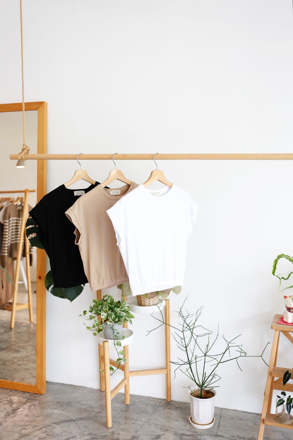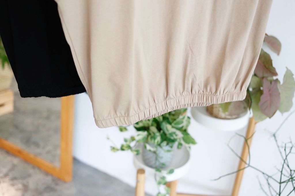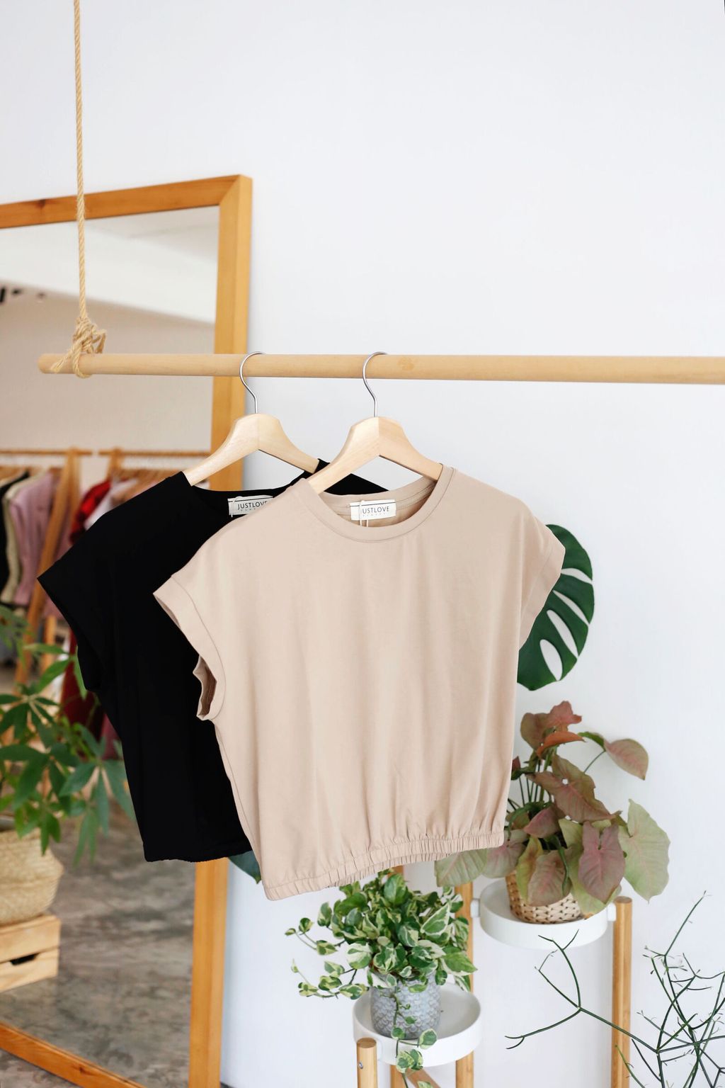 Type: Cap Sleeves Gather Waist Tee | Cotton Fabric | Stretchable Waistband | May Fold Inward for Shorter Length | Loose Cutting For XS Body Size