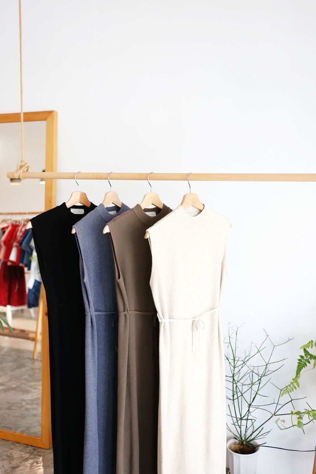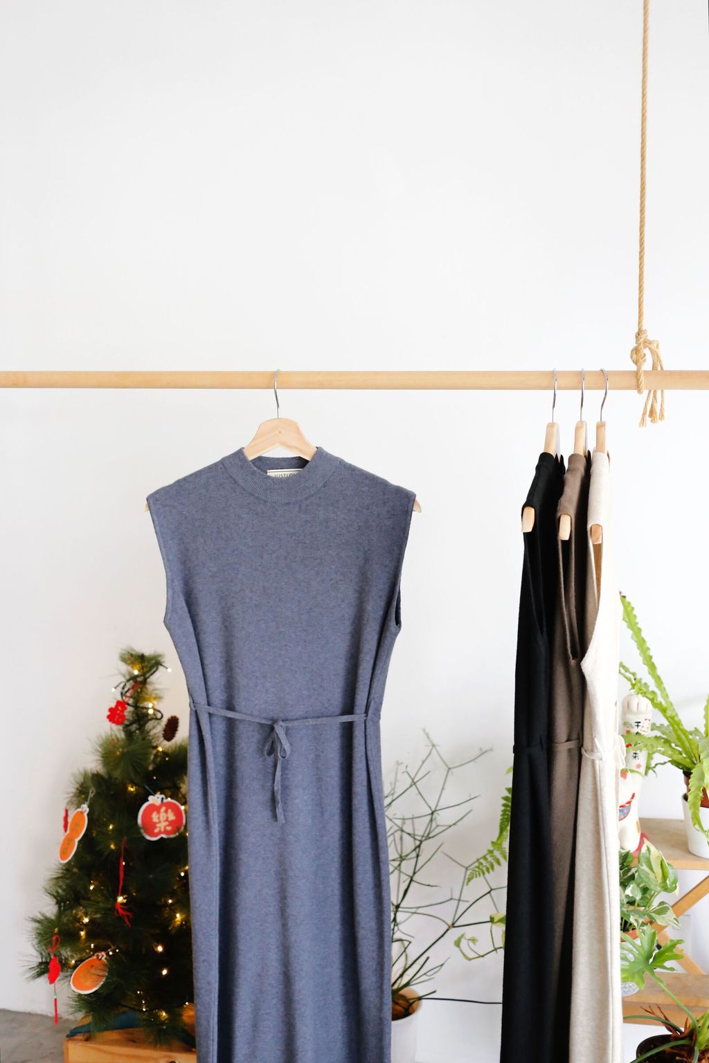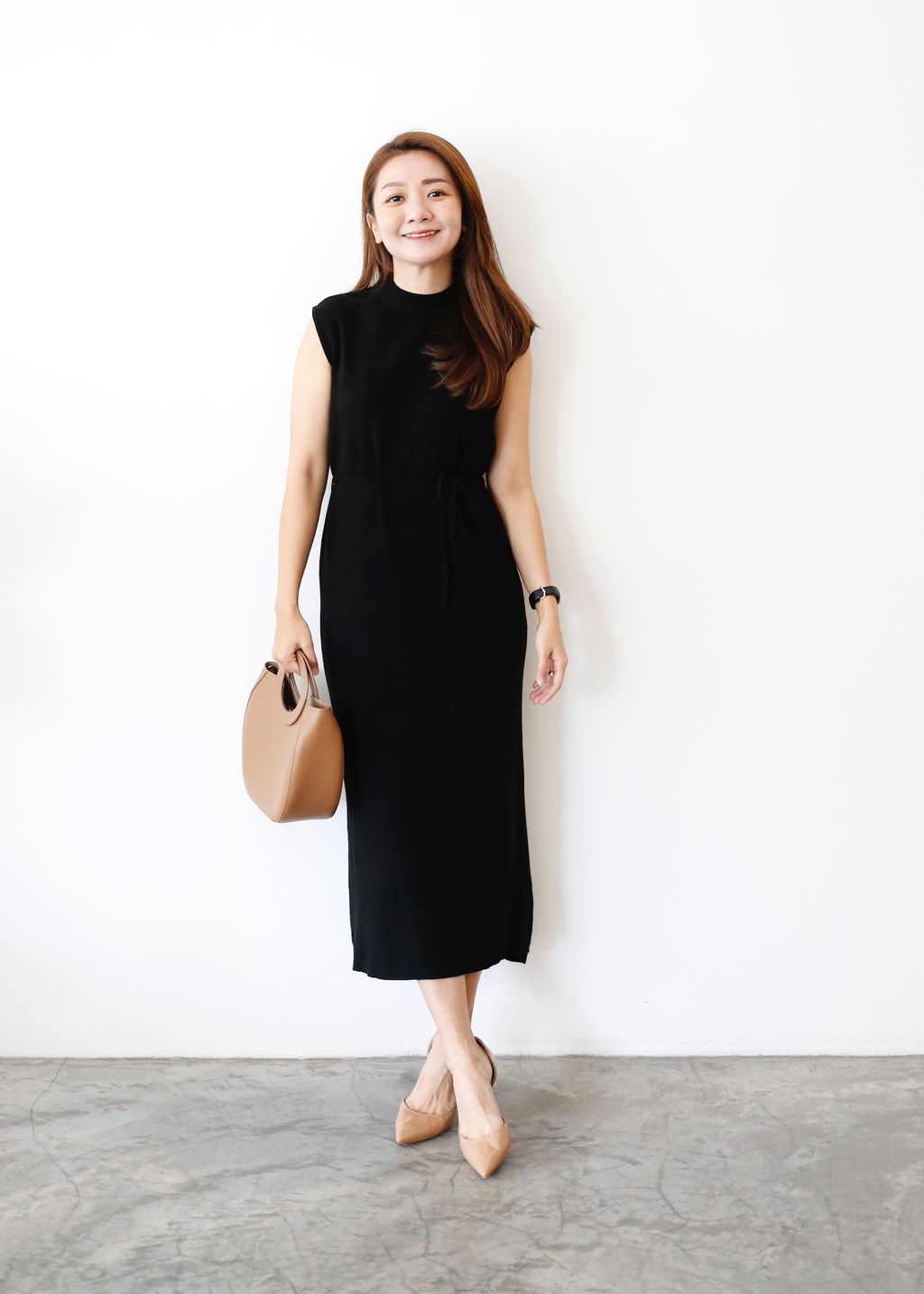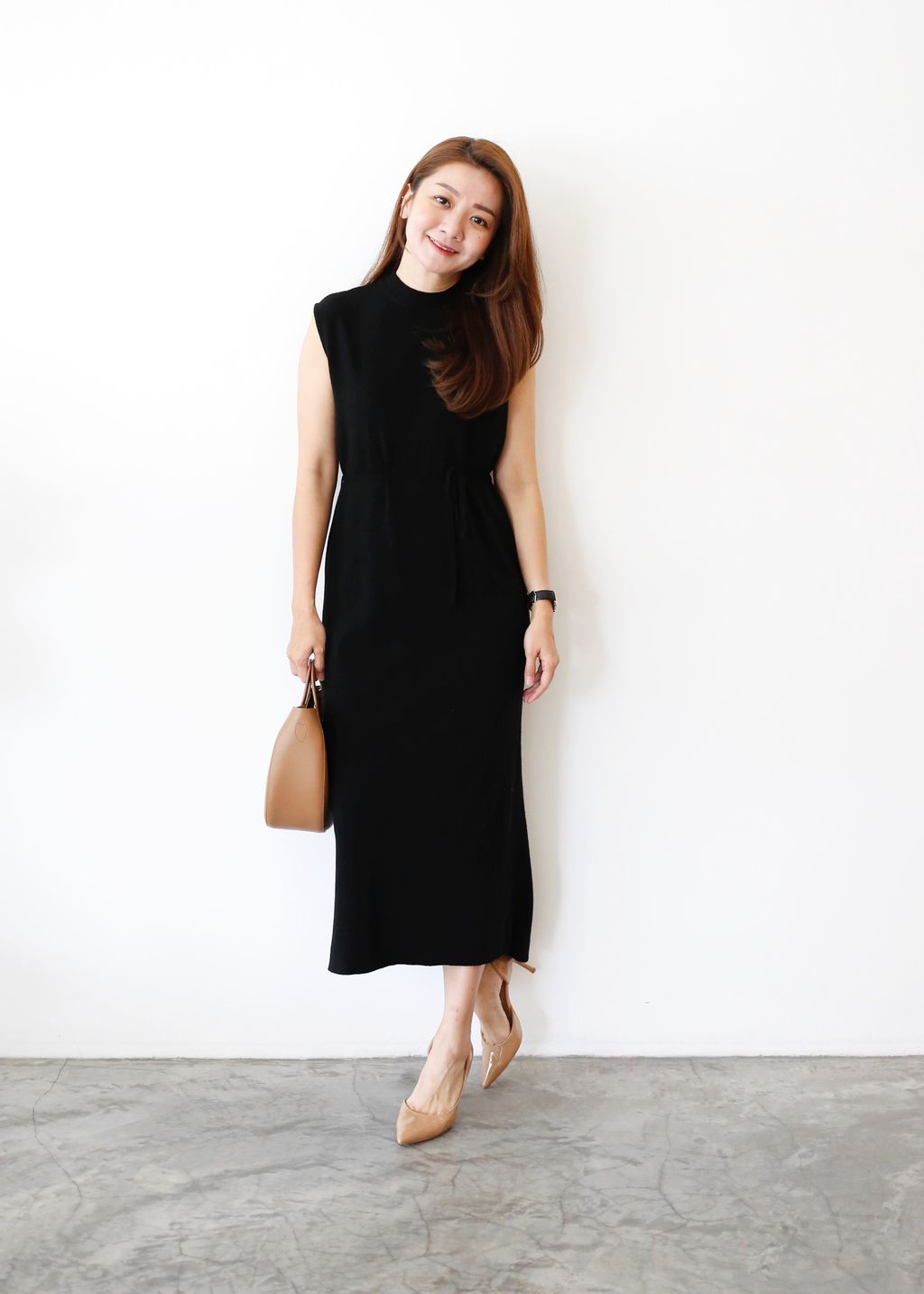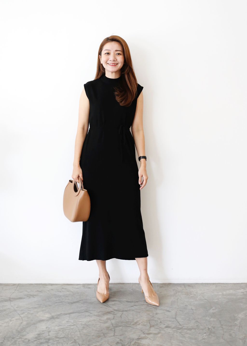 Type: Cap Sleeves Knitted Midi Dress | Stretchable Knit | Crew Neck Design | Comes with String Belt
