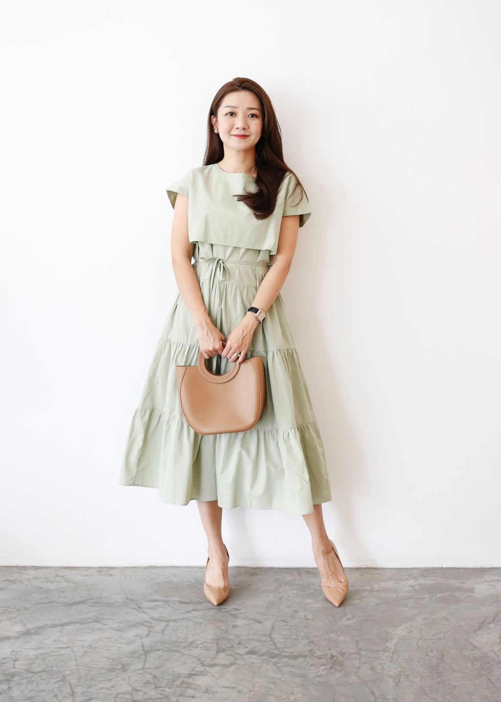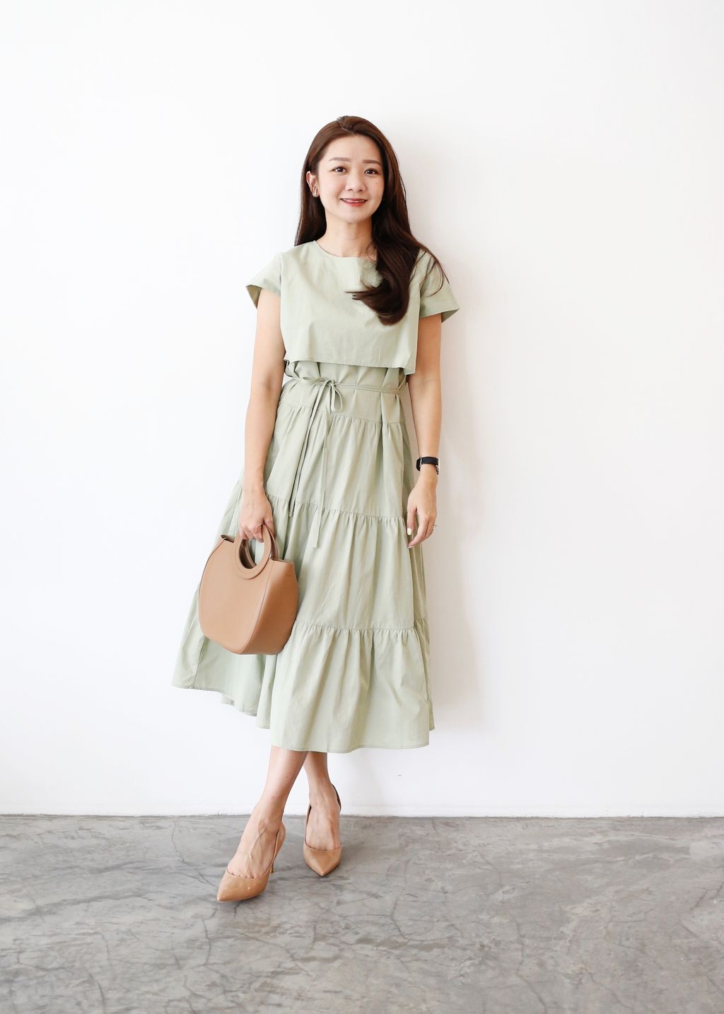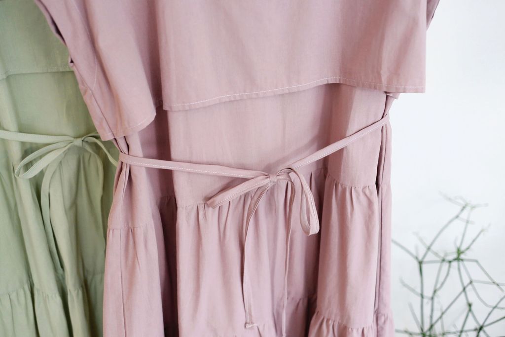 Type: Cap Sleeves Tiered Midi Dress | Cotton Fabric | String Belt Included | Double Layer Fabric From Shoulder to Waist