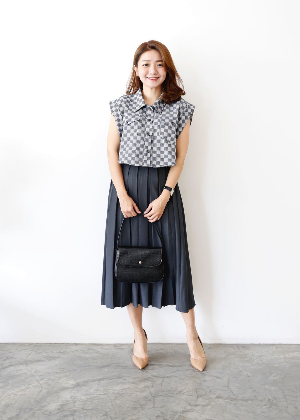 Type: Checkered Cropped Shirt | Soft Denim Fabric | Not Stretchable | Button Through Design | Side Curved Up Design | Inner Cloth Cover Arm Hole Gap