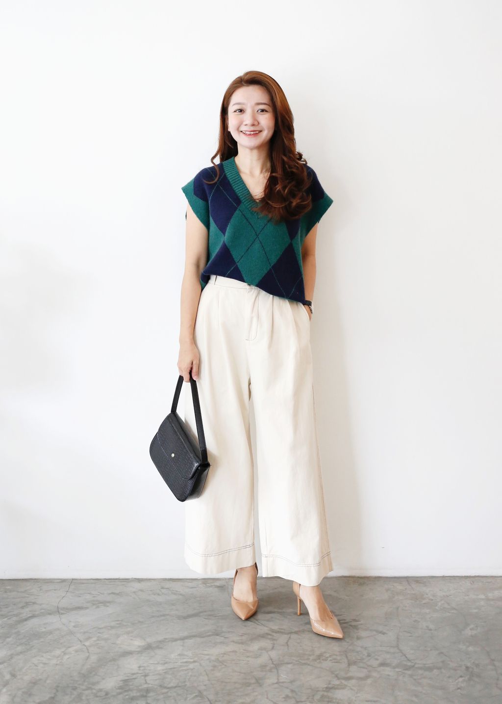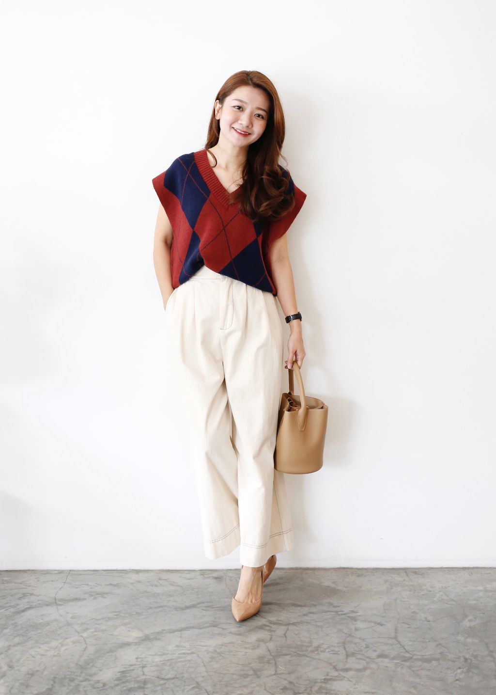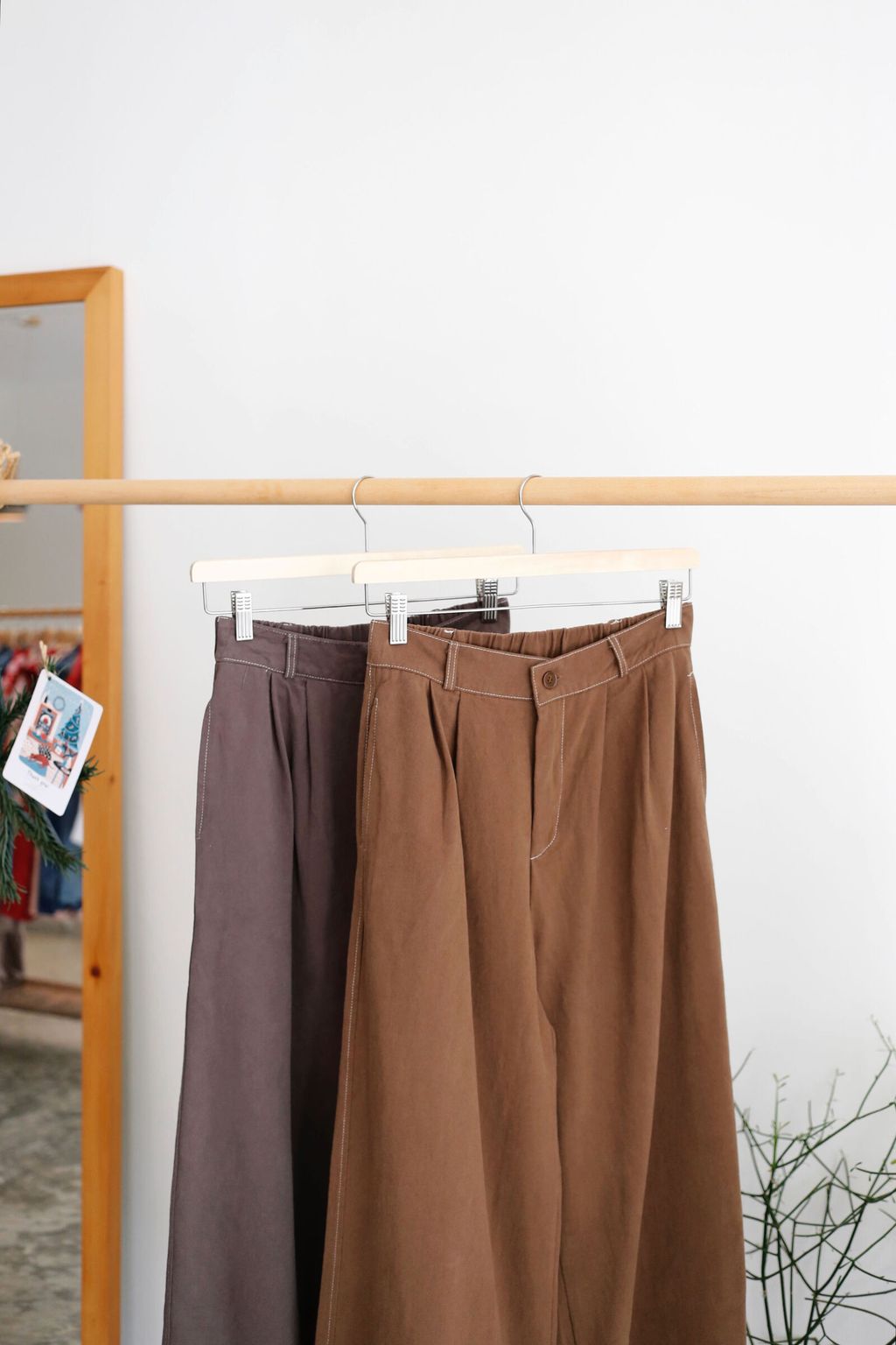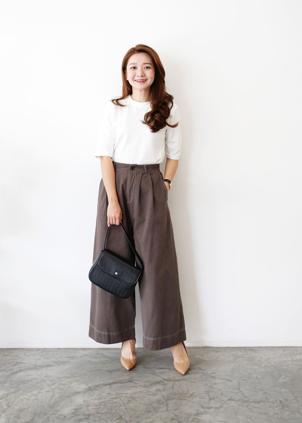 Type: Contrast Stitch Wide Leg Pants | Cotton Fabric | Stretchable Waistband | Side Pockets | Front Zipper
