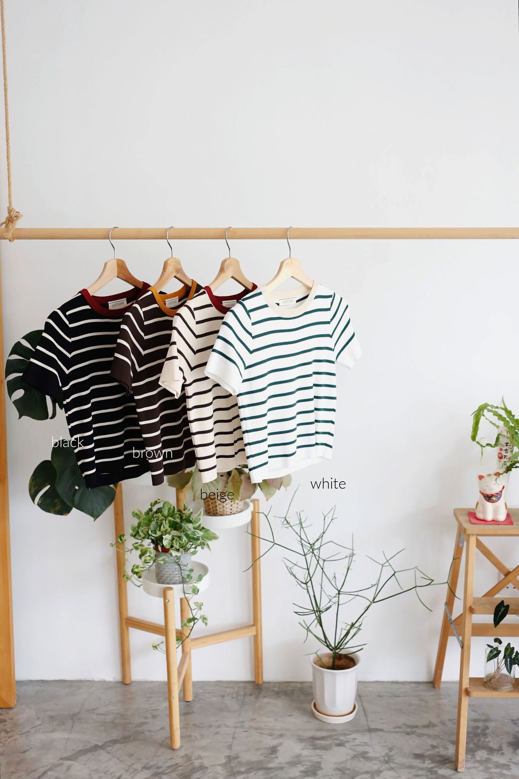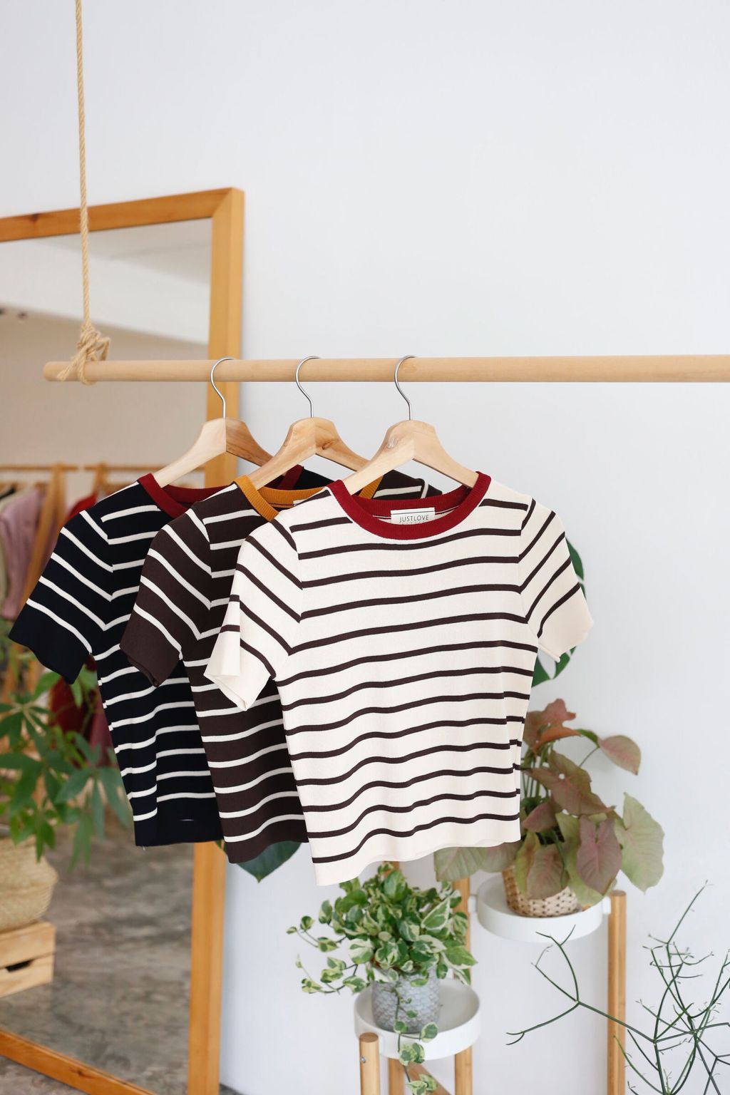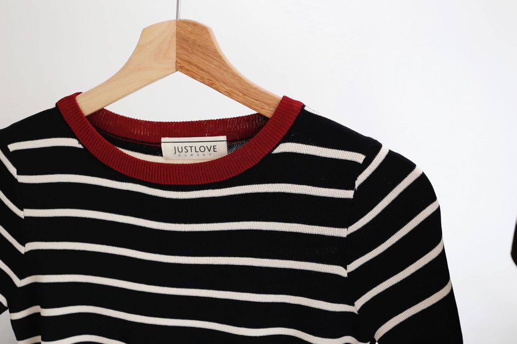 Type: Contrast Tone Stripey Knit Top | Stripey Knit Fabric | 3-Tone Design