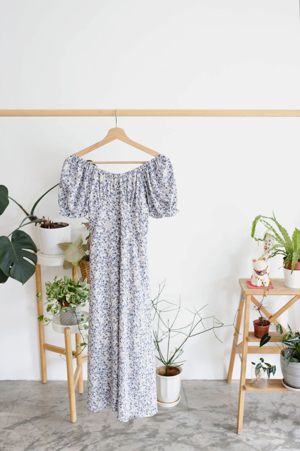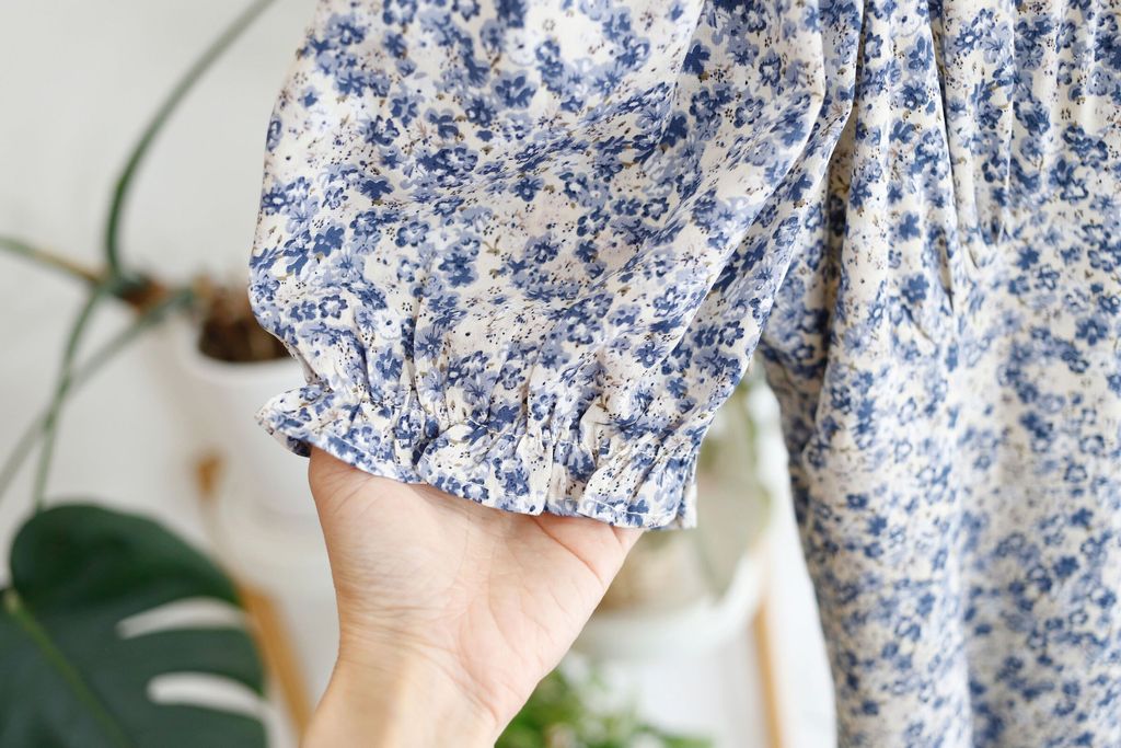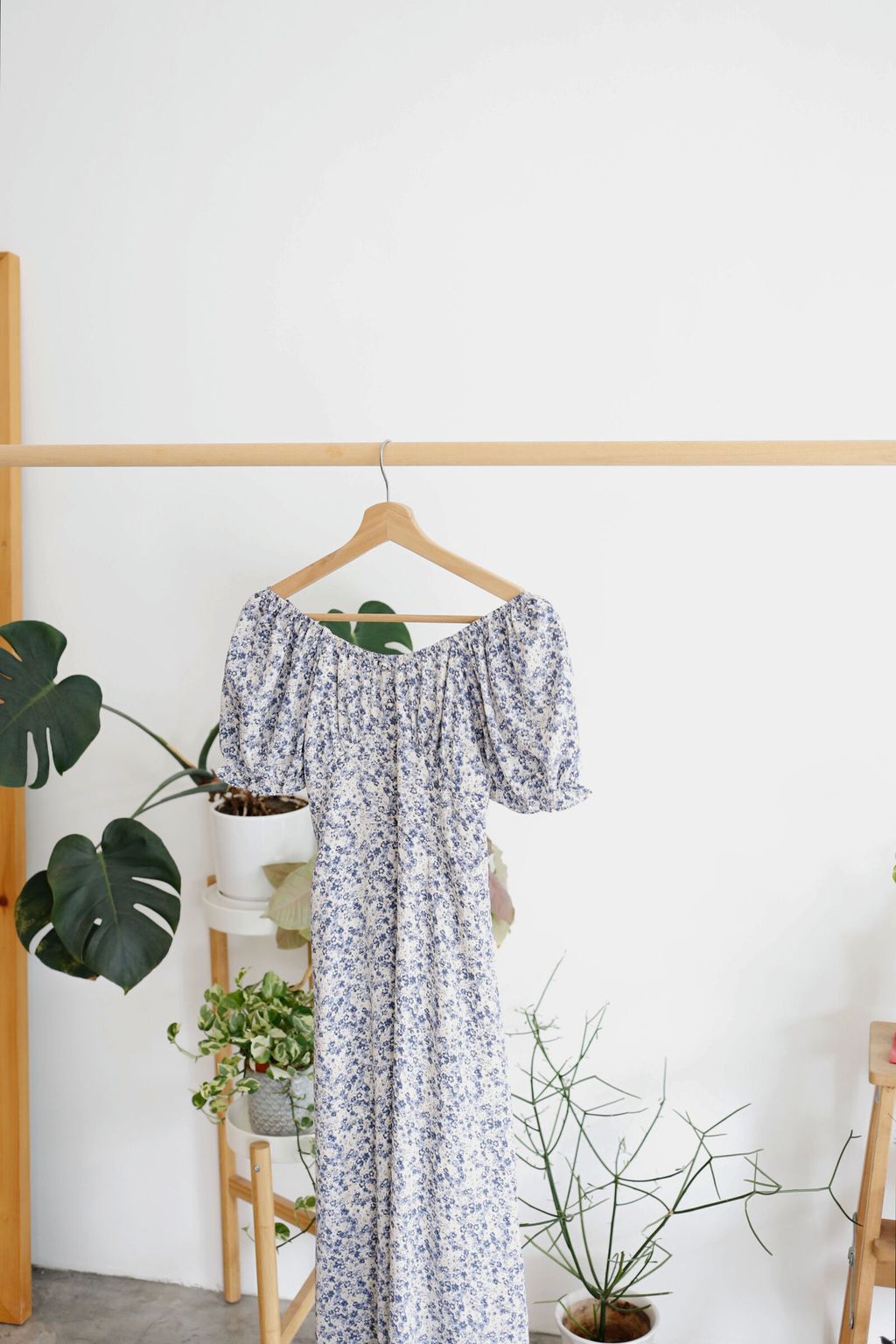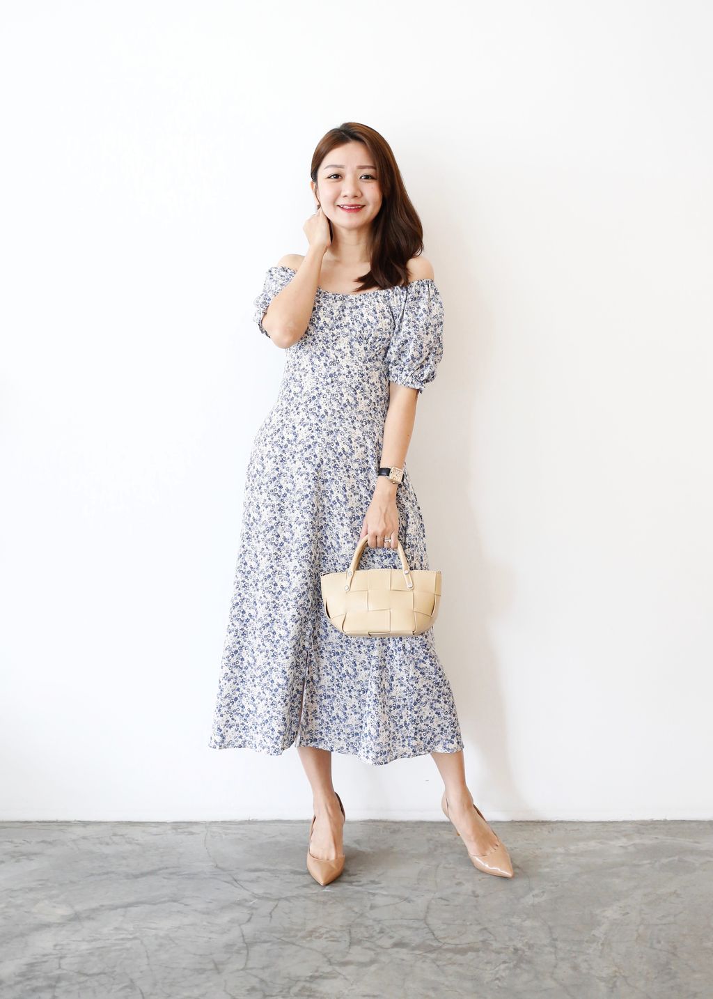 Type: Drop Shoulder Floral Midi Dress | Chiffon Fabric with Lining | Side Zipper | Front Slit Hem Design