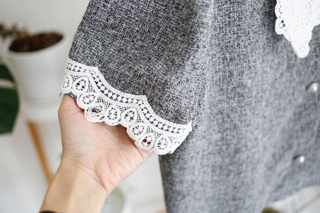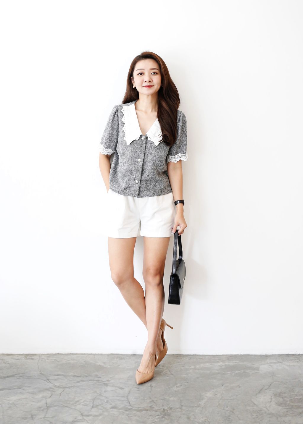 Type: Embroidered Puritan Collar Tweed Blouse | Mixed Woven Fabric | Not Stretchable | Button Through