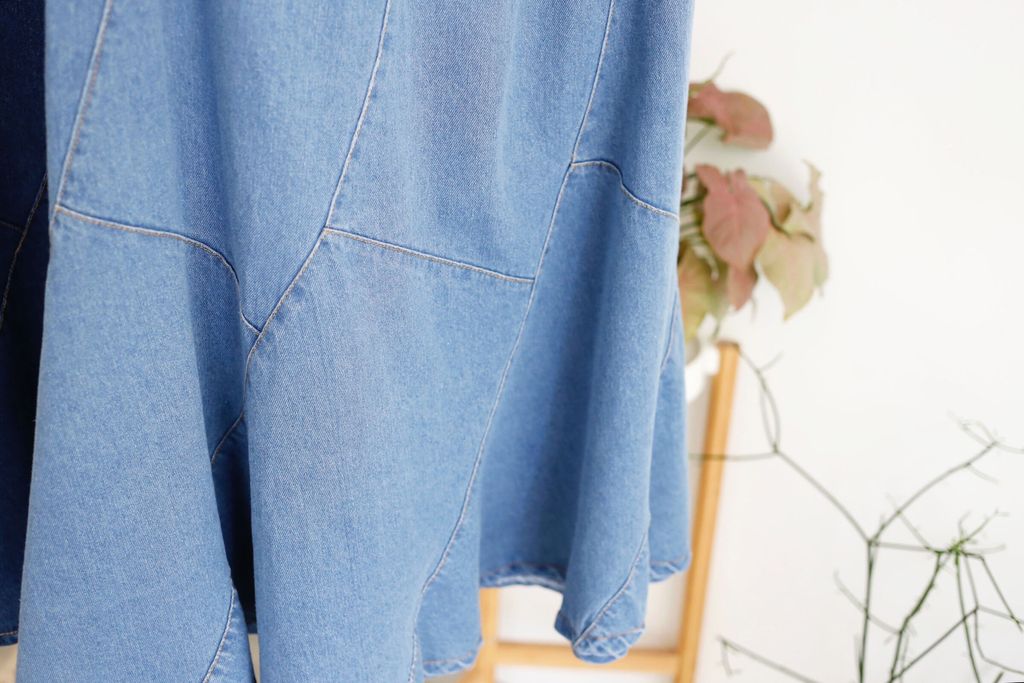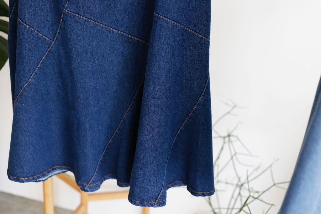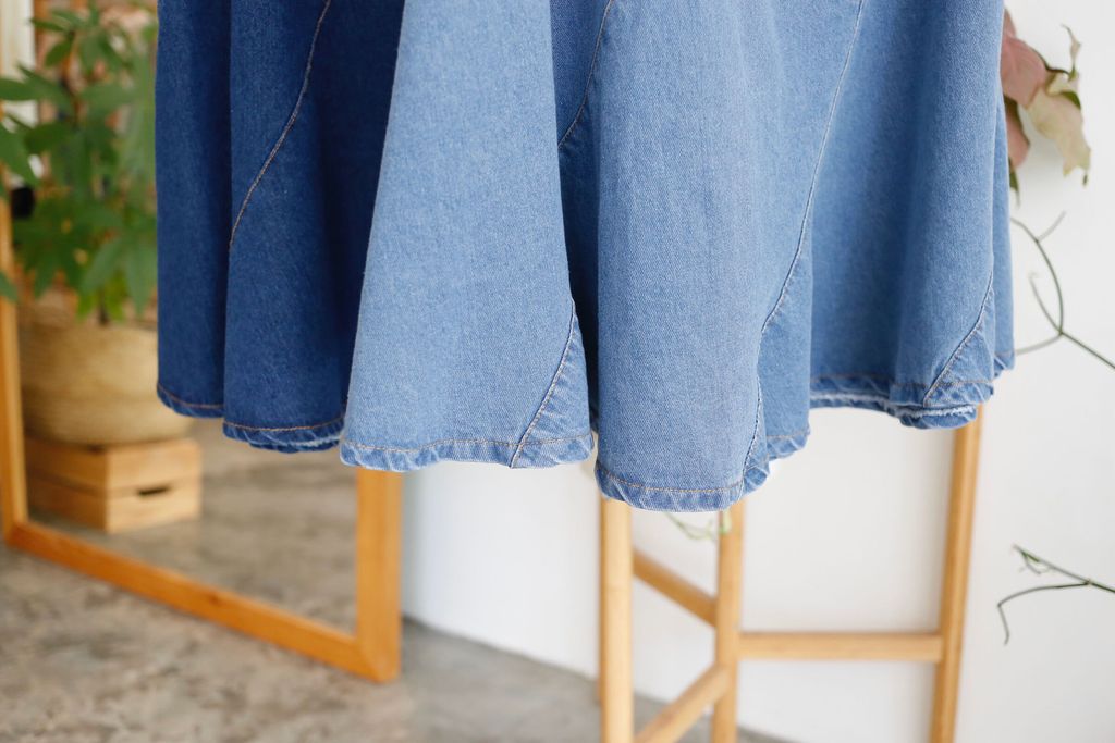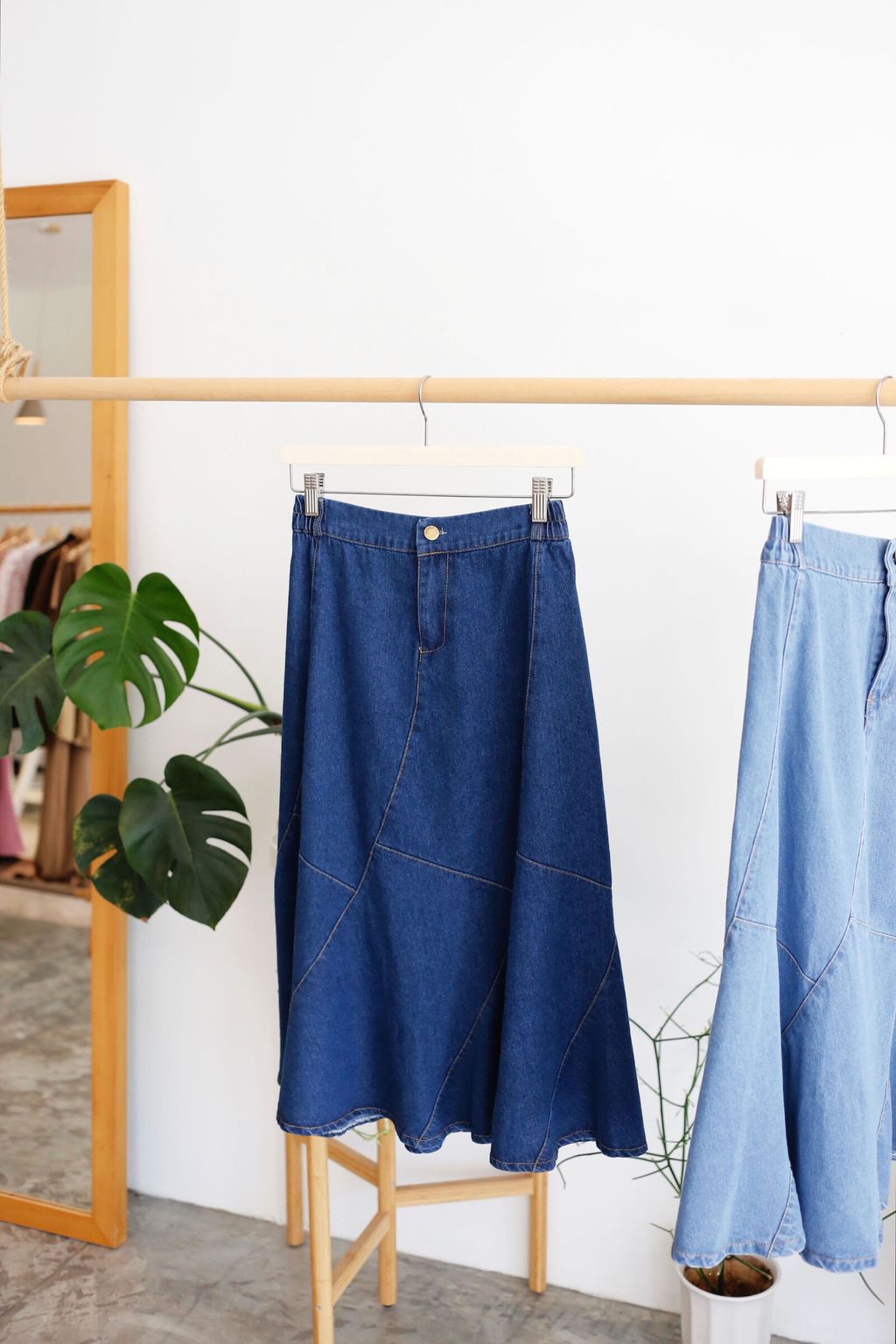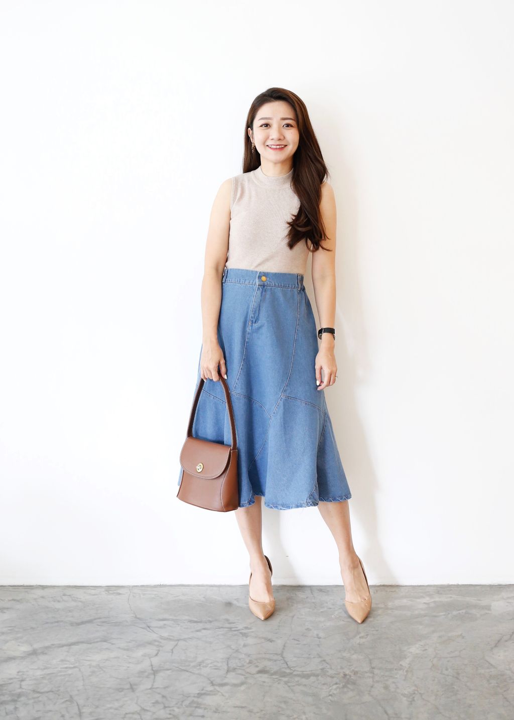 Type: Flared Hem Denim Midi Skirt | Stretchable Waistband | Non-Stretchable Denim | Front Zipper