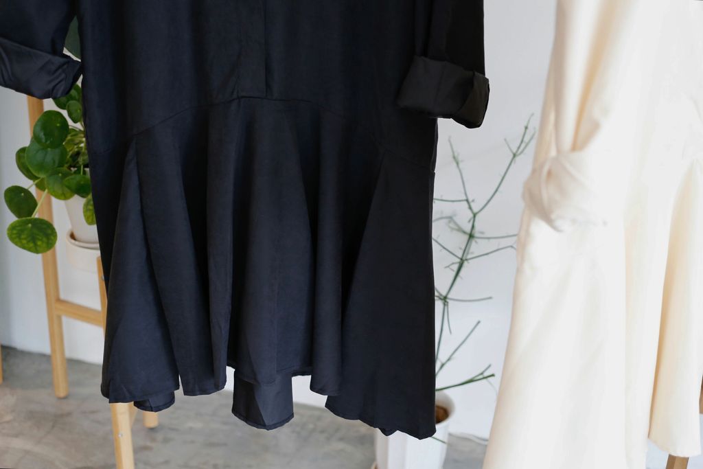 Type: Flared Hem Long Sleeves Dress | Suede Fabric | Not Stretchable