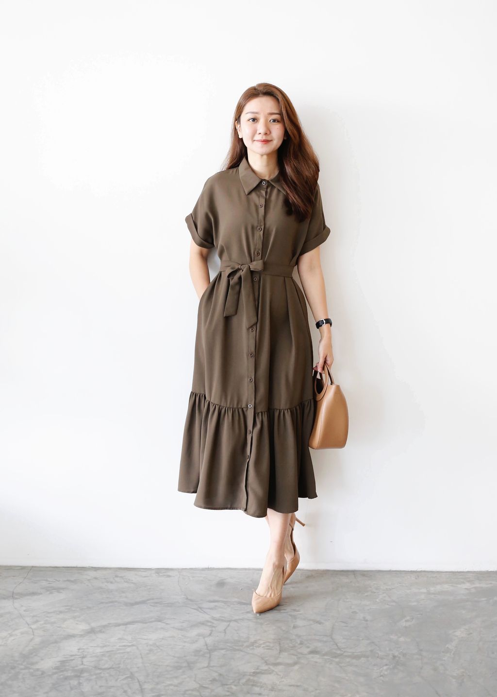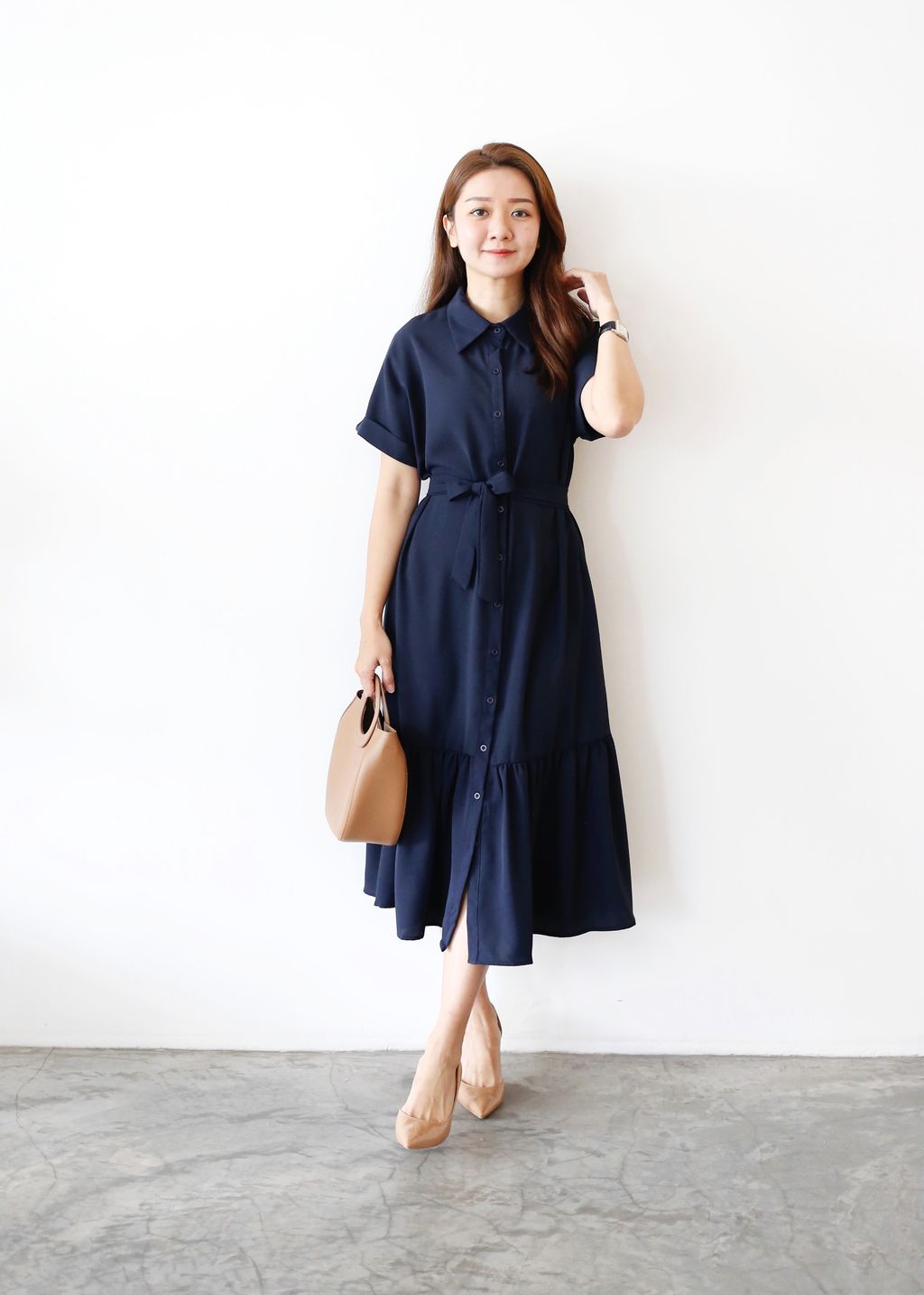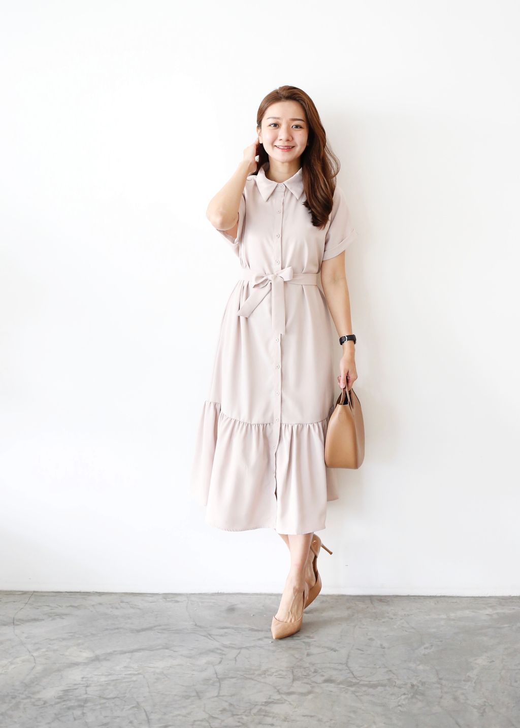Type: Flared Hem Soft Button Through Dress | Soft Polyester Fabric | Side Pockets