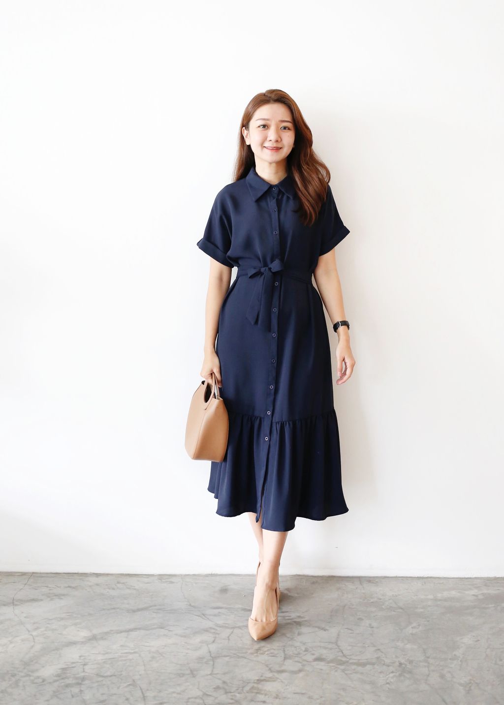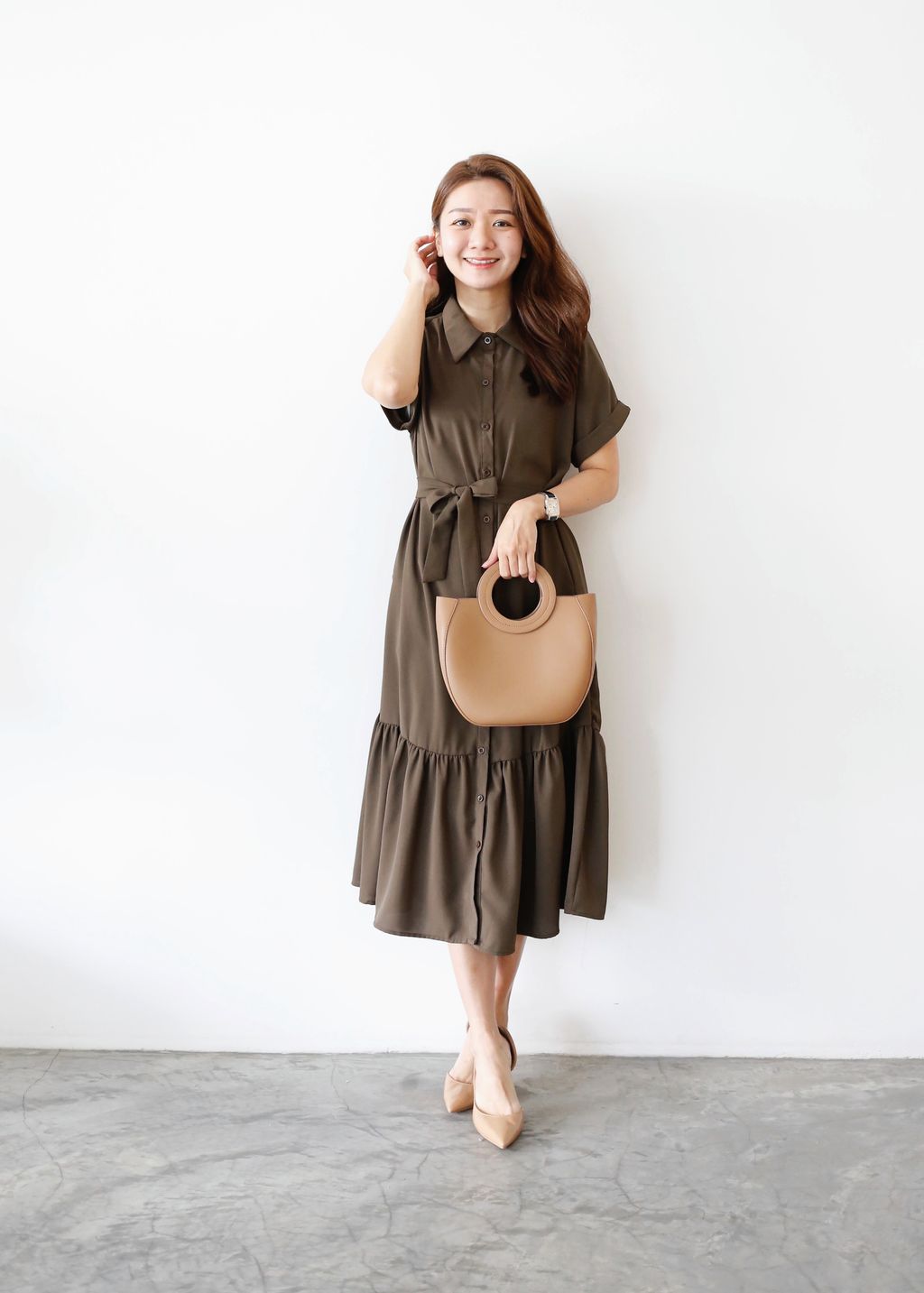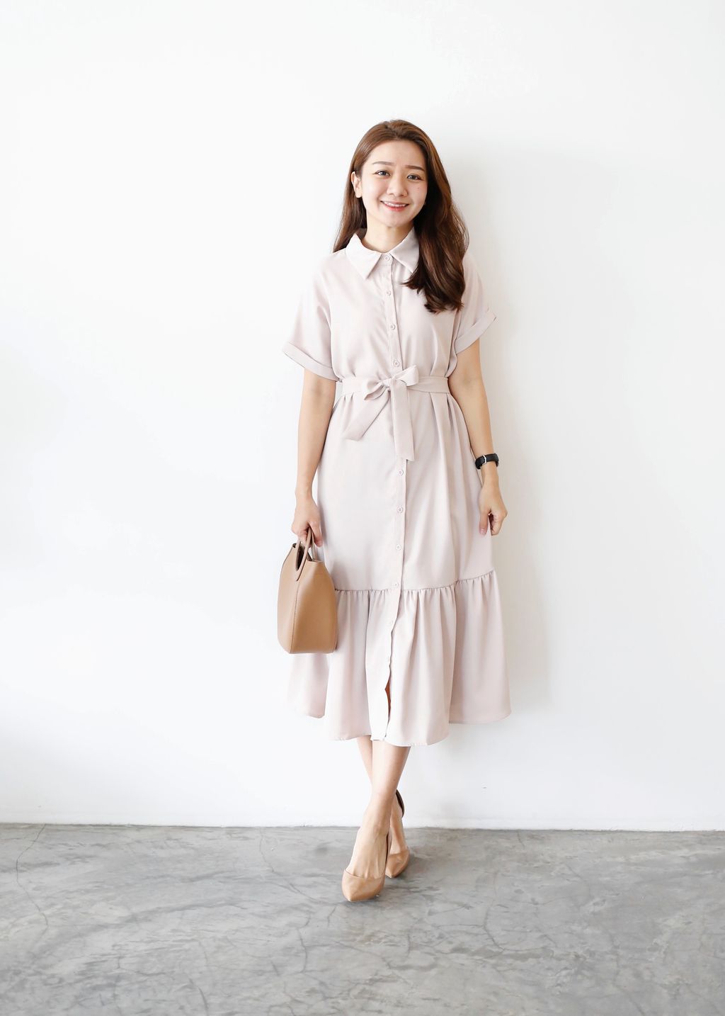 Type: Flared Hem Soft Button Through Dress | Soft Polyester Fabric | Side Pockets