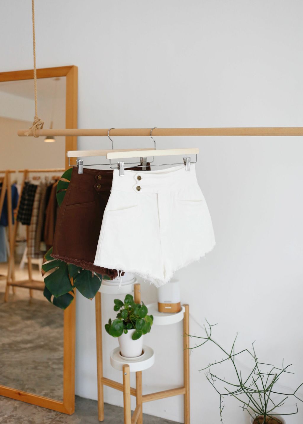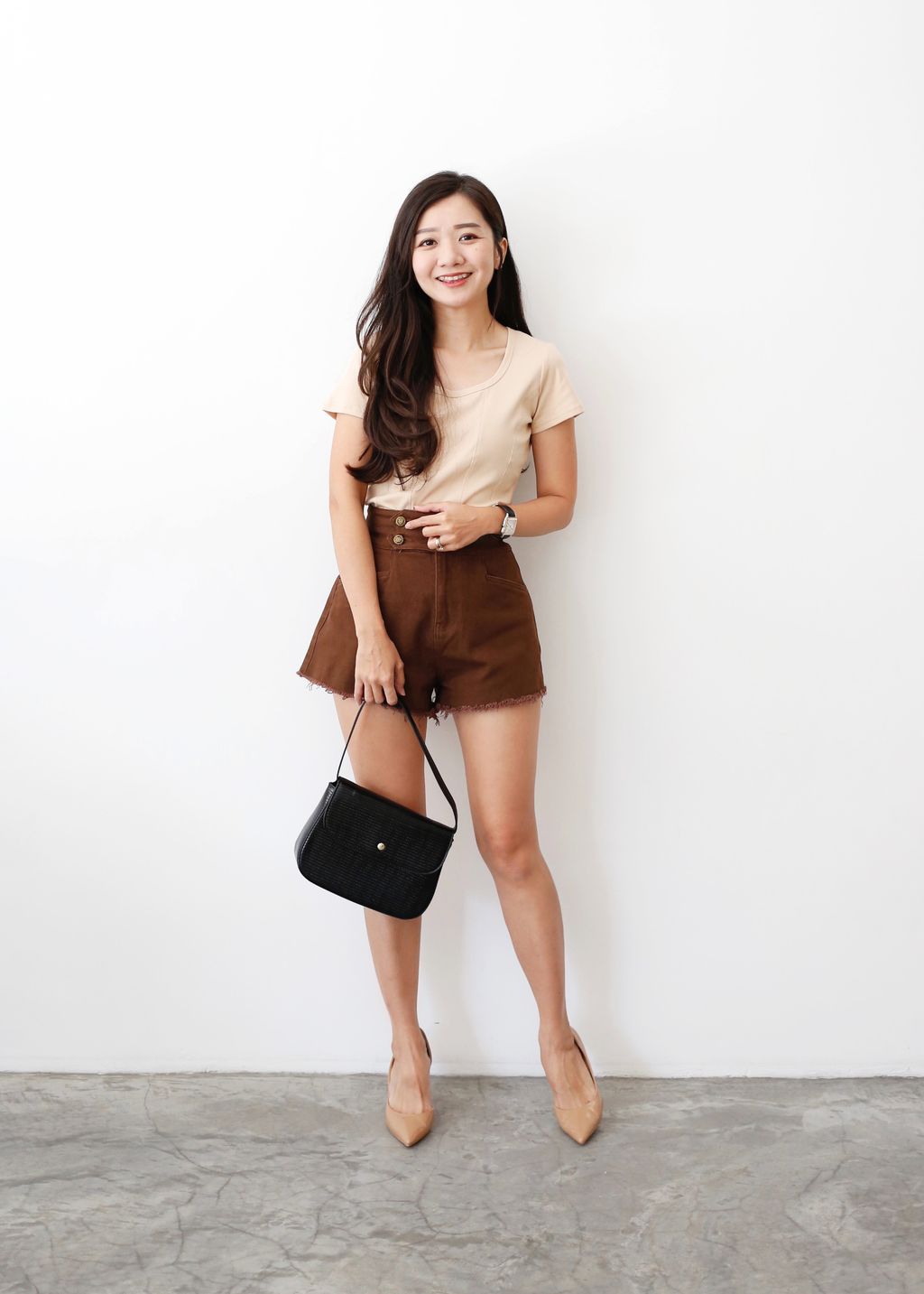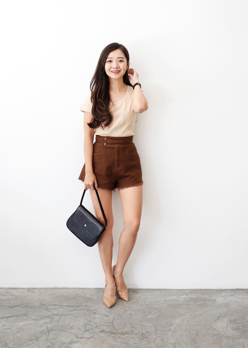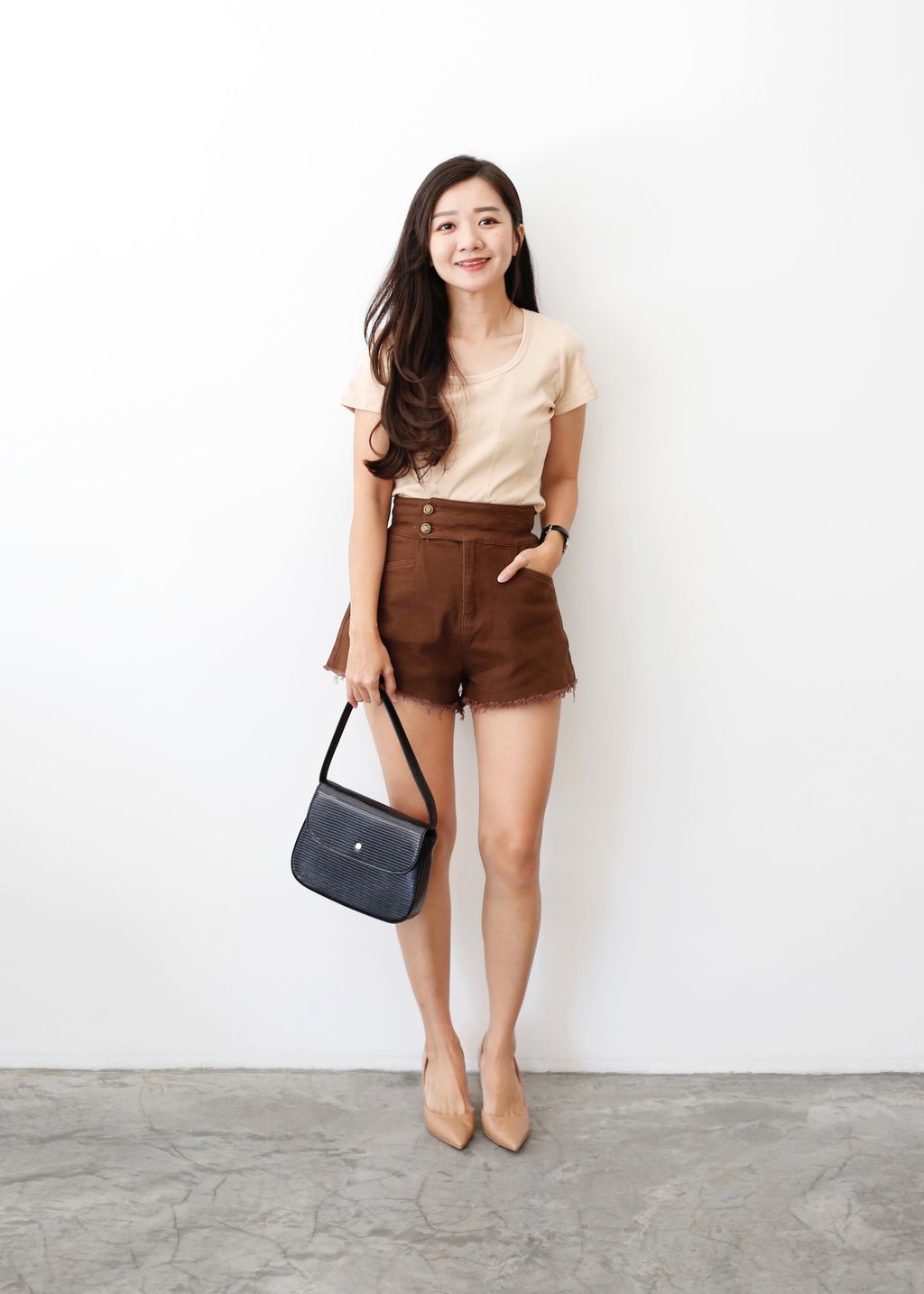 Type: Frayed Hem Denim Shorts | Dual-Button Design | Not Stretchable Denim | Front Zipper and Side Pockets