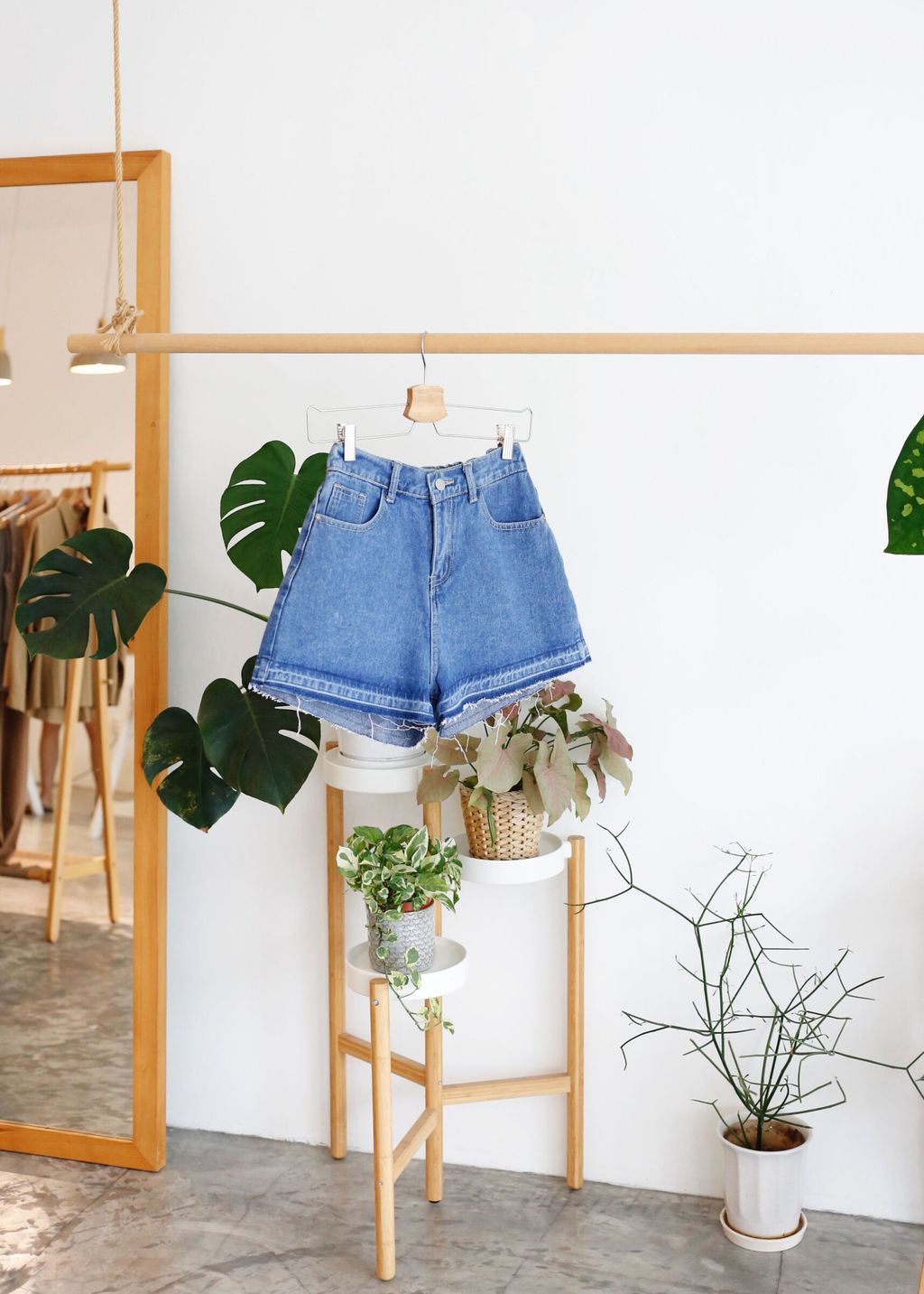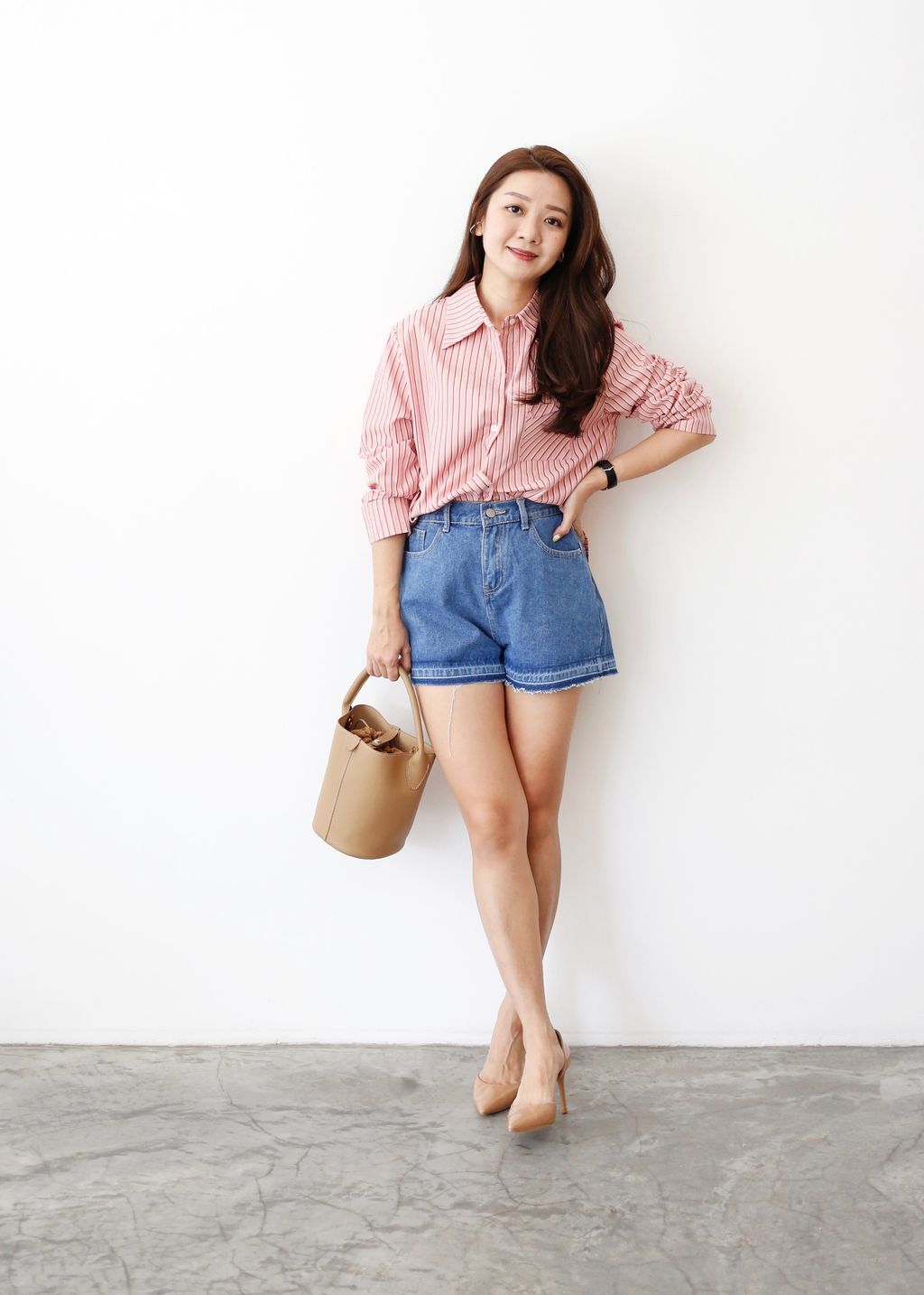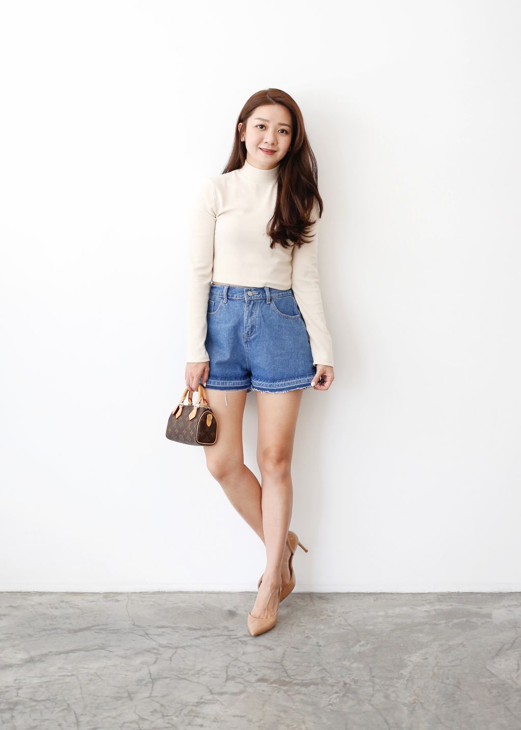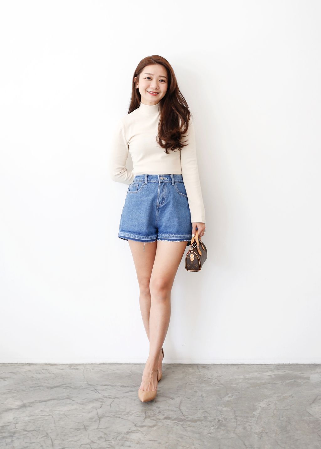 Type: Frayed Hem Denim Shorts | Washed Denim Fabric | Stretchable Waistband | Front Zipper | Side Pockets