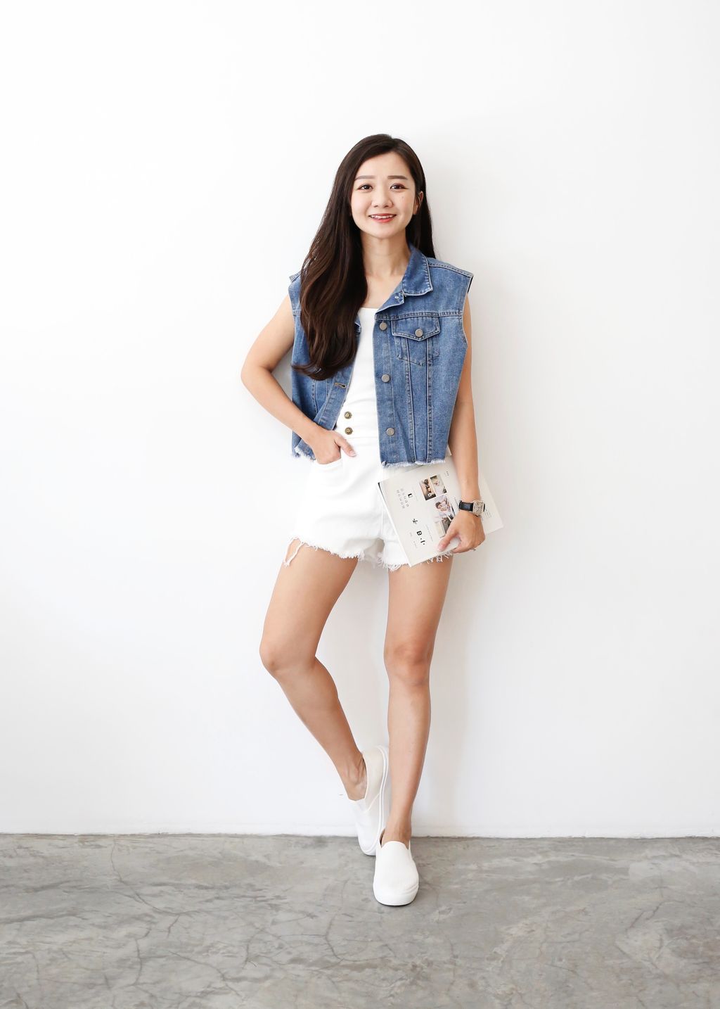 Type: Frayed Hem Denim Vest | Non Stretchable Denim | Button Through