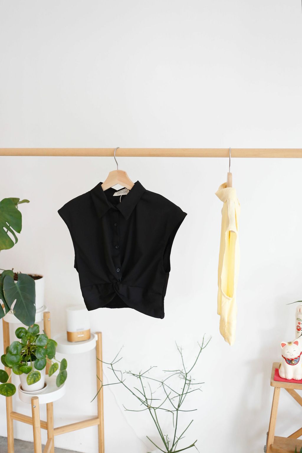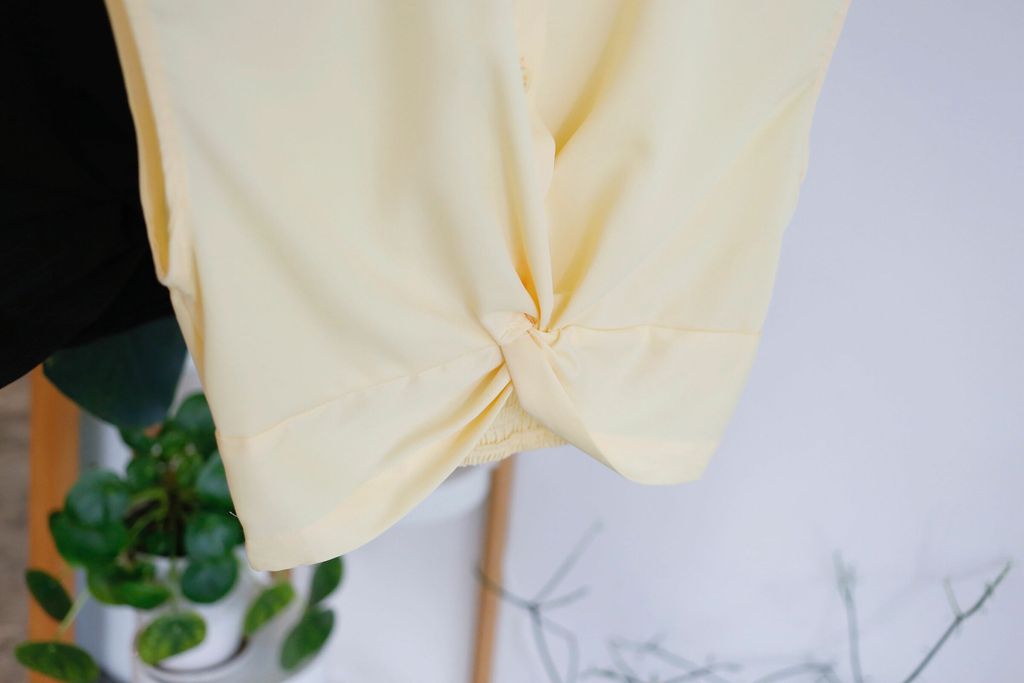 Type: Front Twist Stretch Waist Blouse | Cap Sleeves Design | Button Through | Chiffon Fabric | Kindly Take Note on Bigger Arm Hole Gap