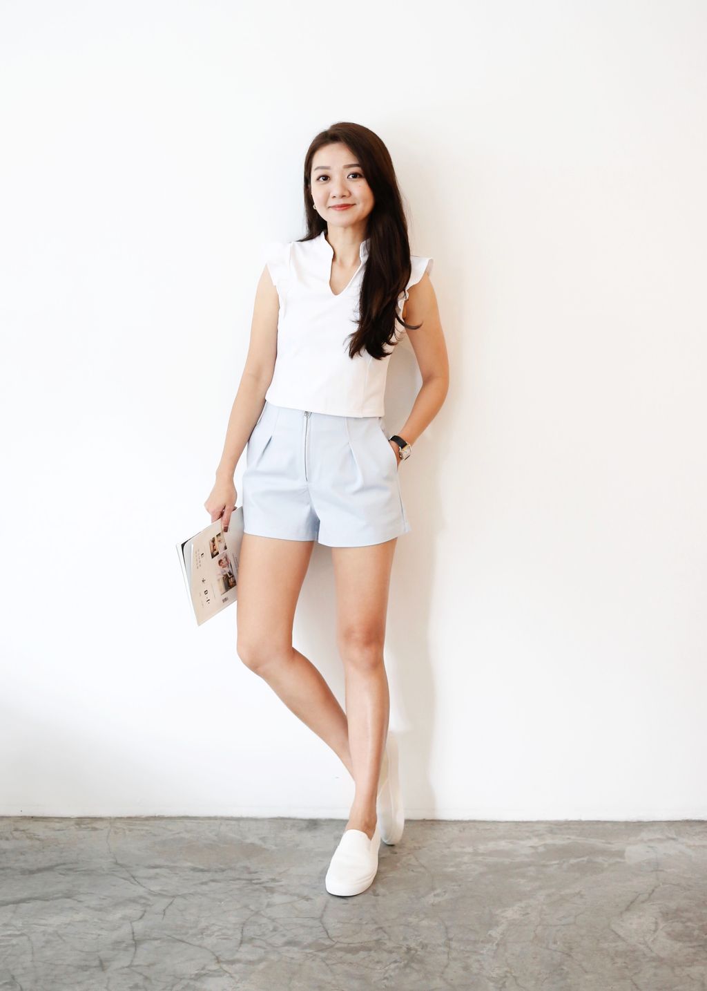 Front Zipper Pleated Smart Shorts