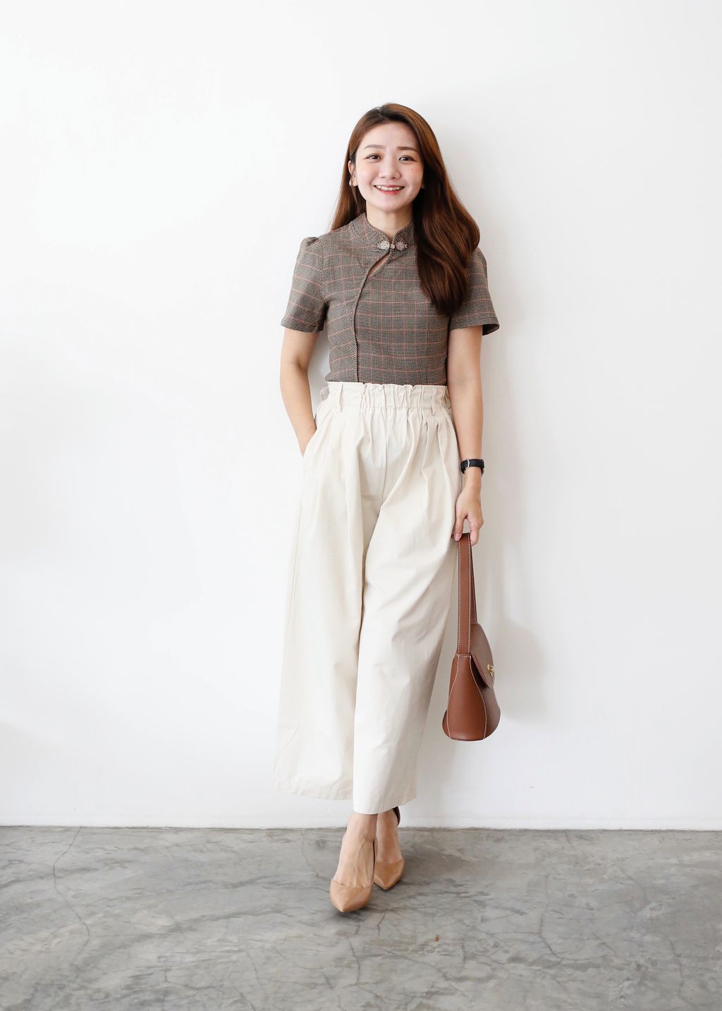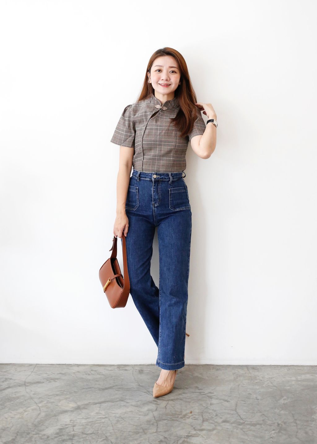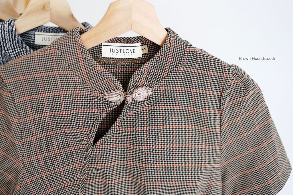 Type: Houndstooth Chinese Collar Pankou Knots Blouse | Stretchable Houndstooth Fabric | Functional Pankou Knit | Side Zipper