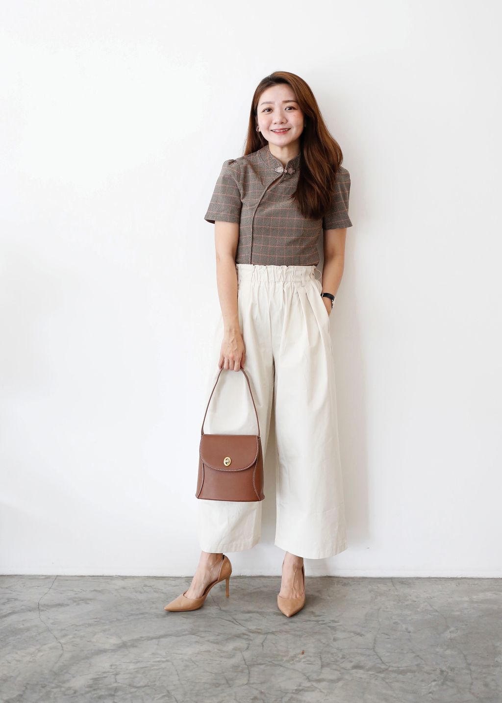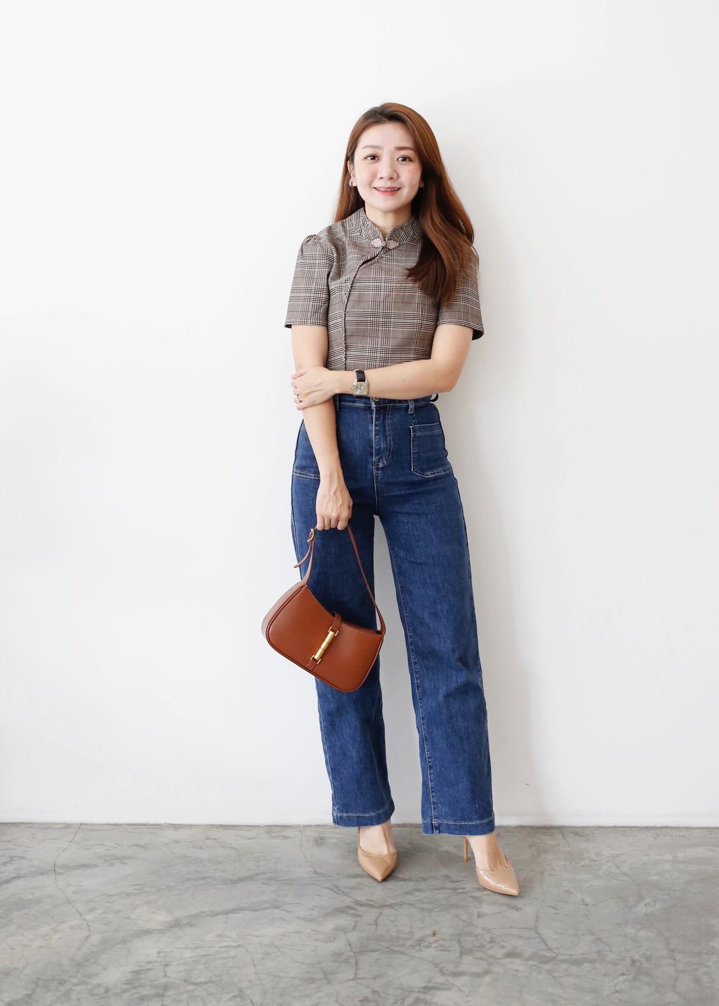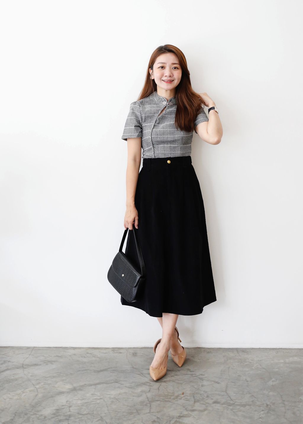 Type: Houndstooth Chinese Collar Pankou Knots Blouse | Stretchable Houndstooth Fabric | Functional Pankou Knit | Side Zipper