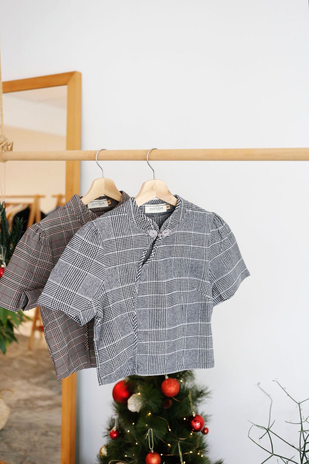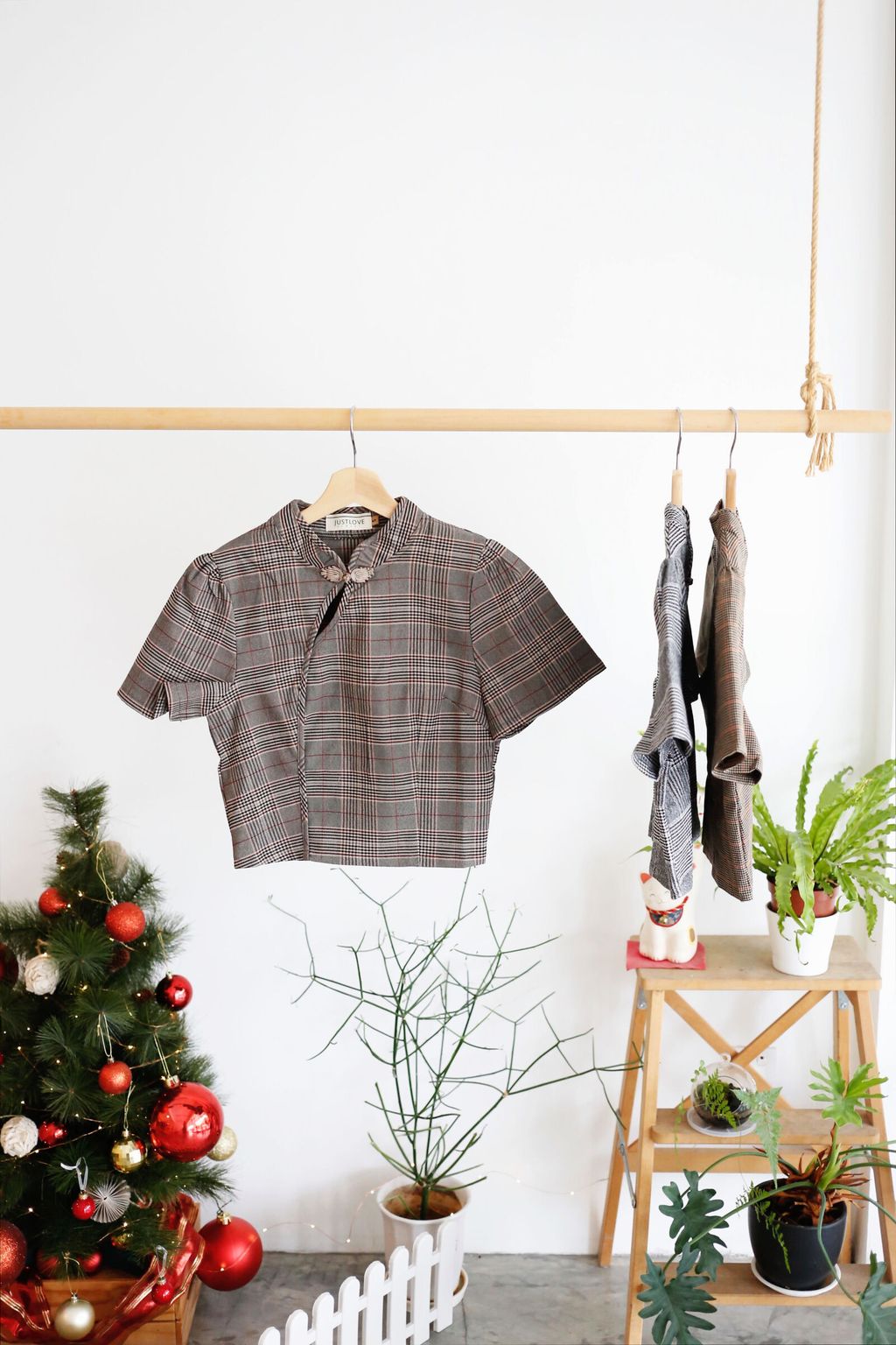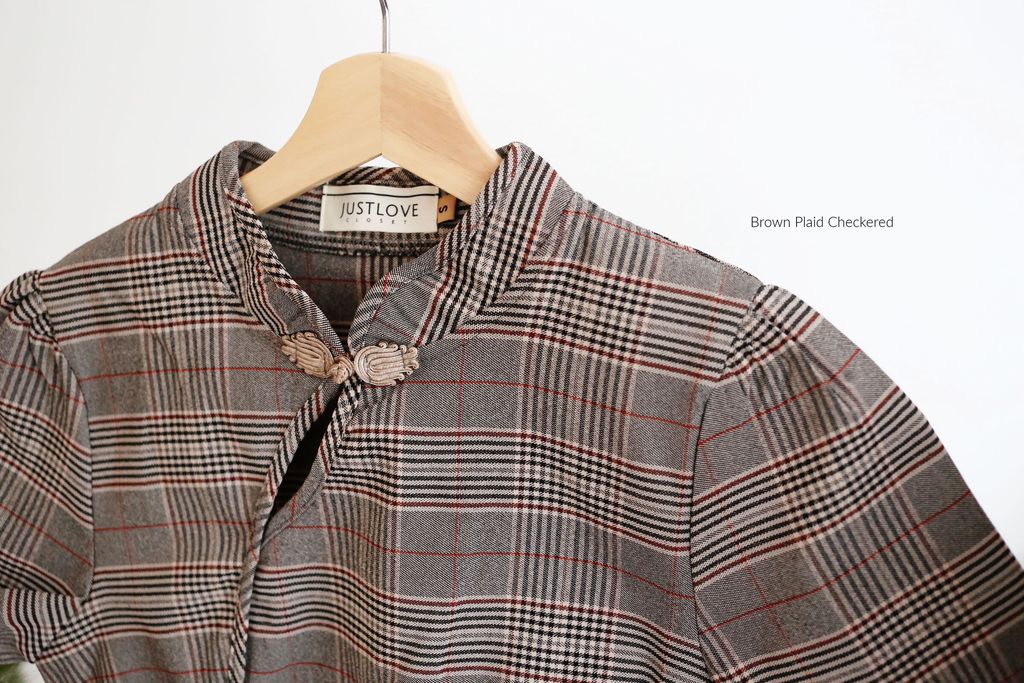 Houndstooth Chinese Collar Pankou Knots Blouse