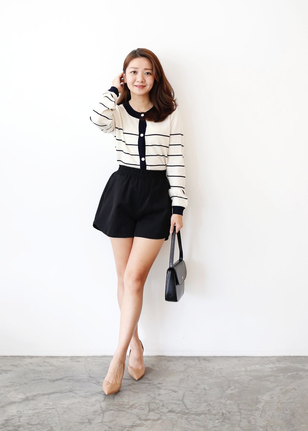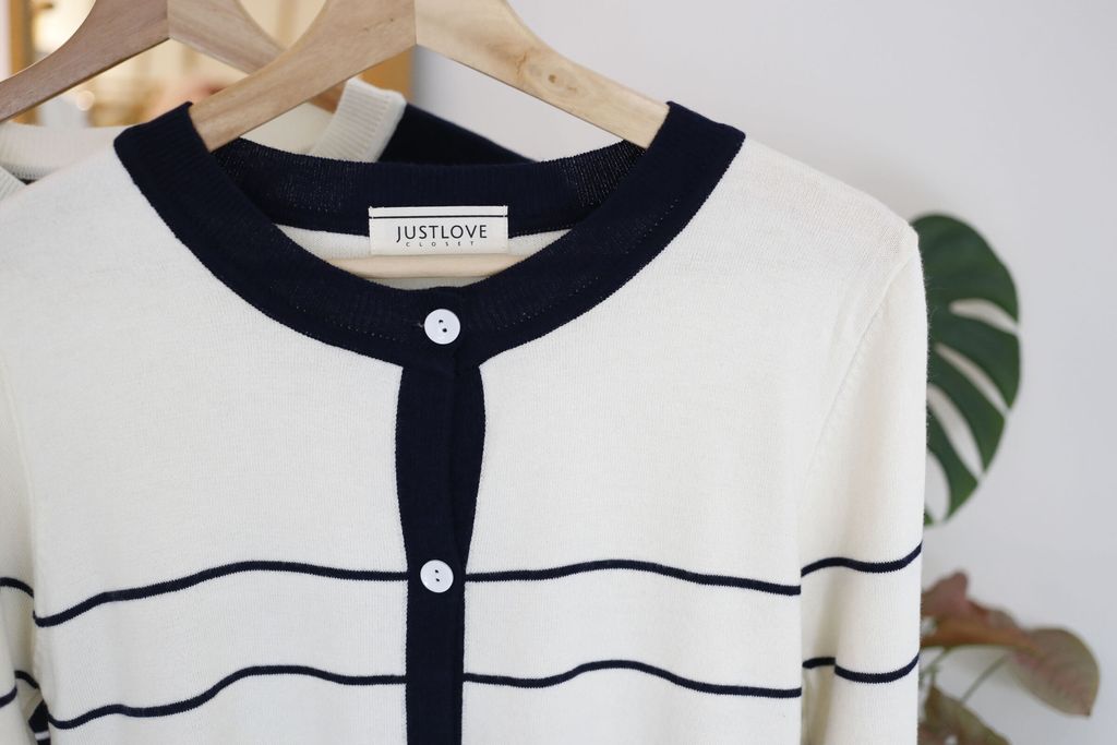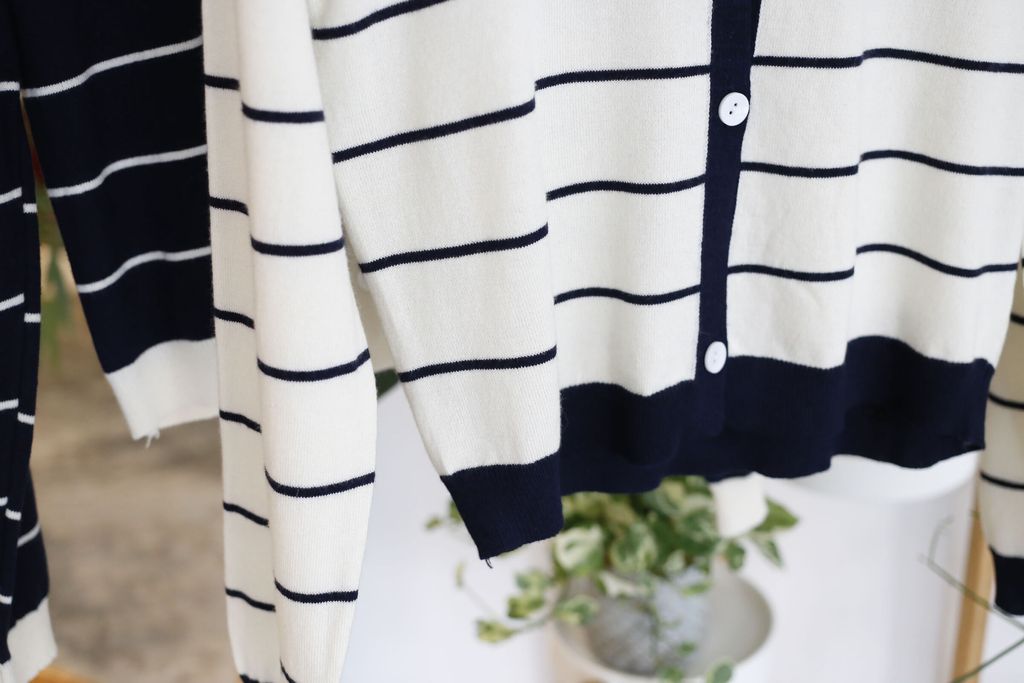 Type: Long Sleeves Stripey Knit Cardigan | Stretchable Knit | Botton Through Design | Do Not Soak