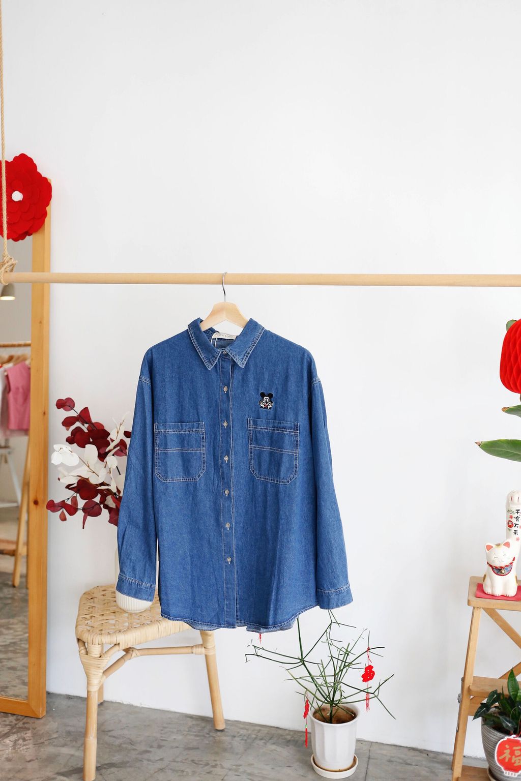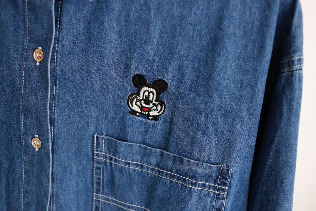 Mickey Embroidered Denim Long Shirt