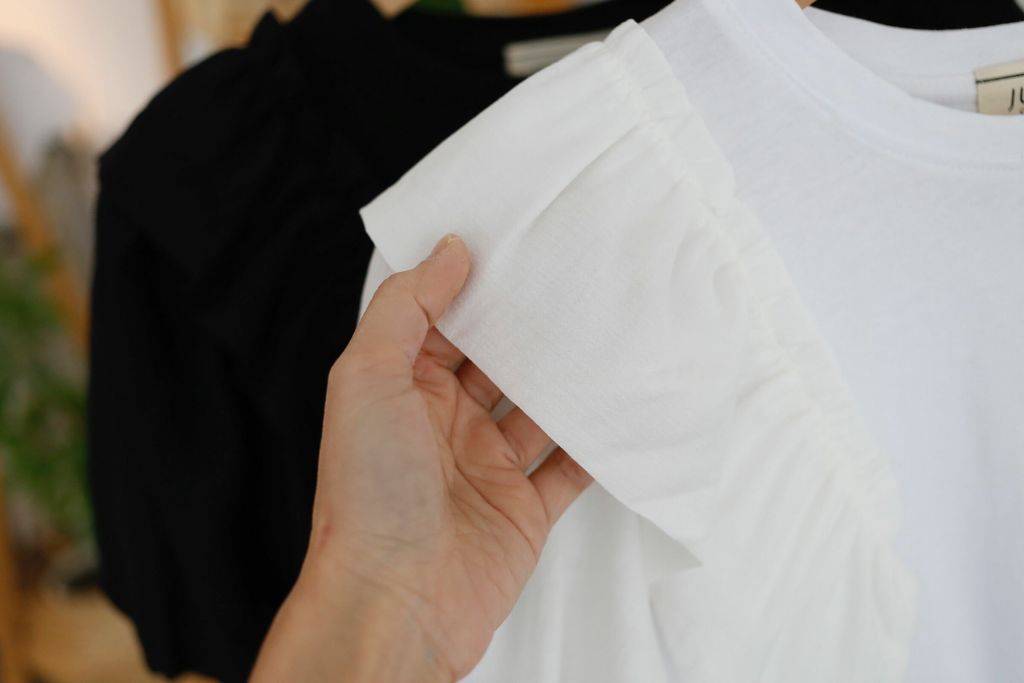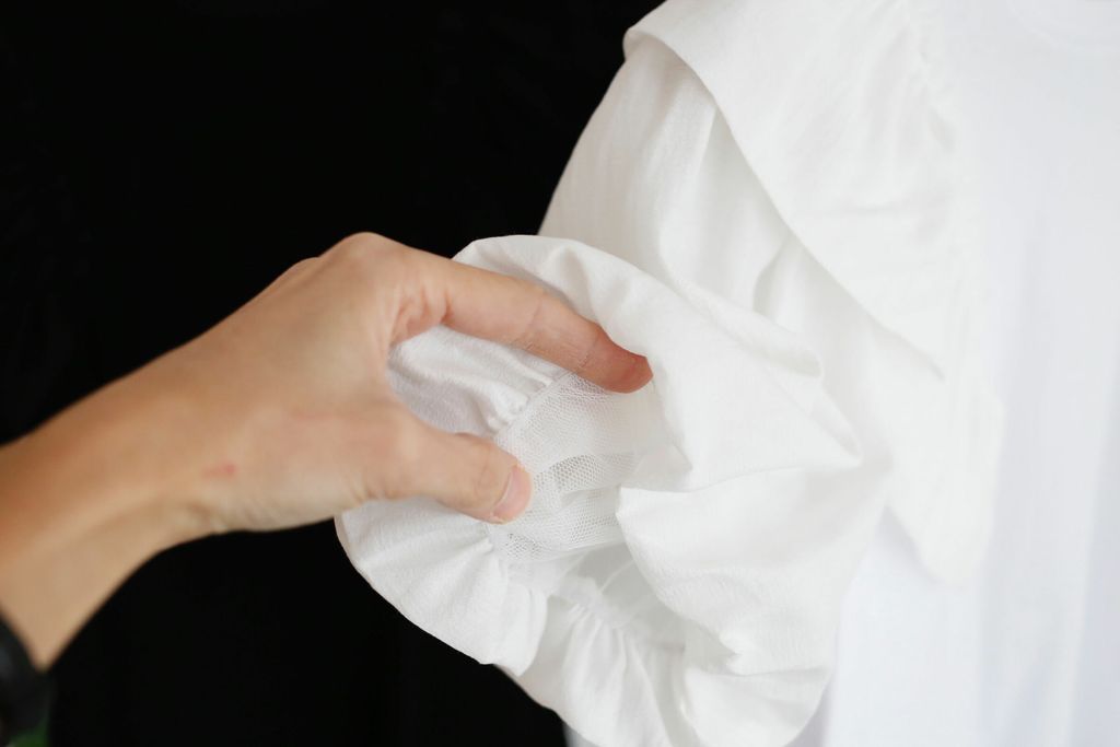 Type: Mix Fabric Frill Sleeves Blouse | Cotton Fabric | Cotton Fabric for Top and Chiffon for Sleeves | Slightly Stretchable | Hand Wash Recommended