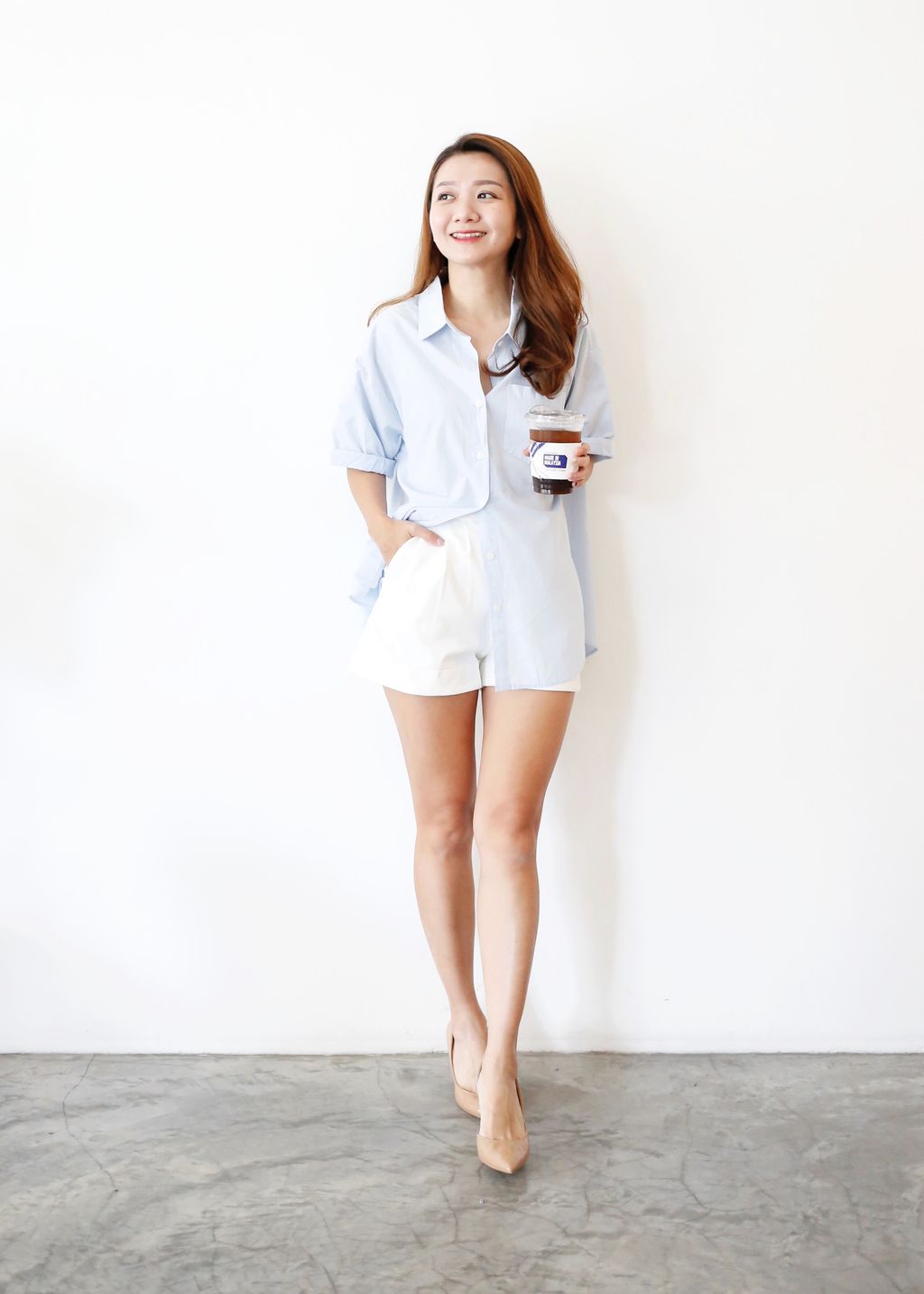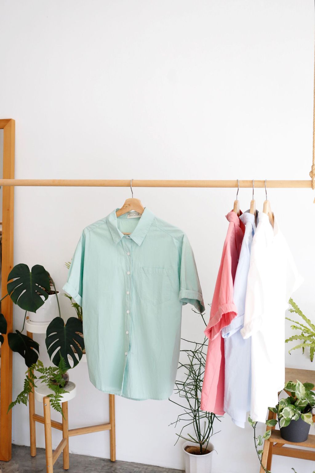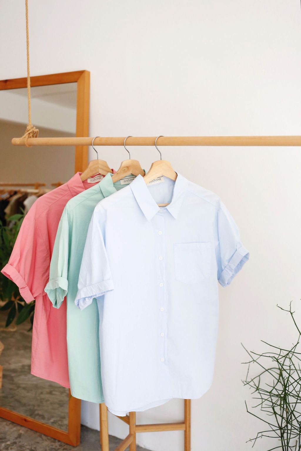 Type: Pastel Tone Short Sleeves Shirt | Cotton Blend Fabric | Folded Sleeves Design