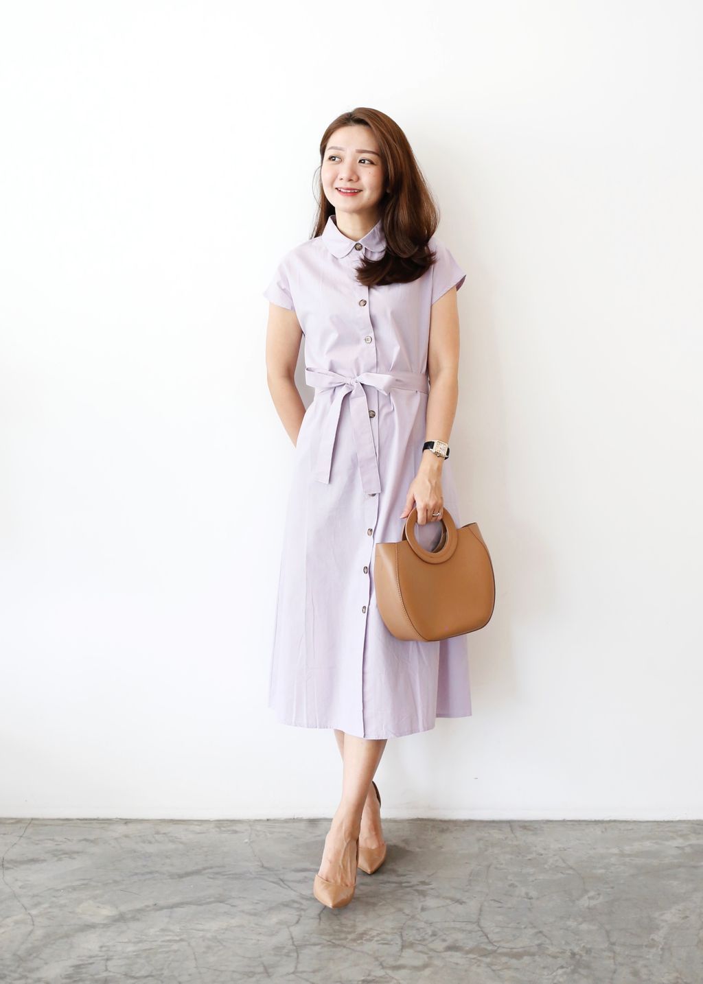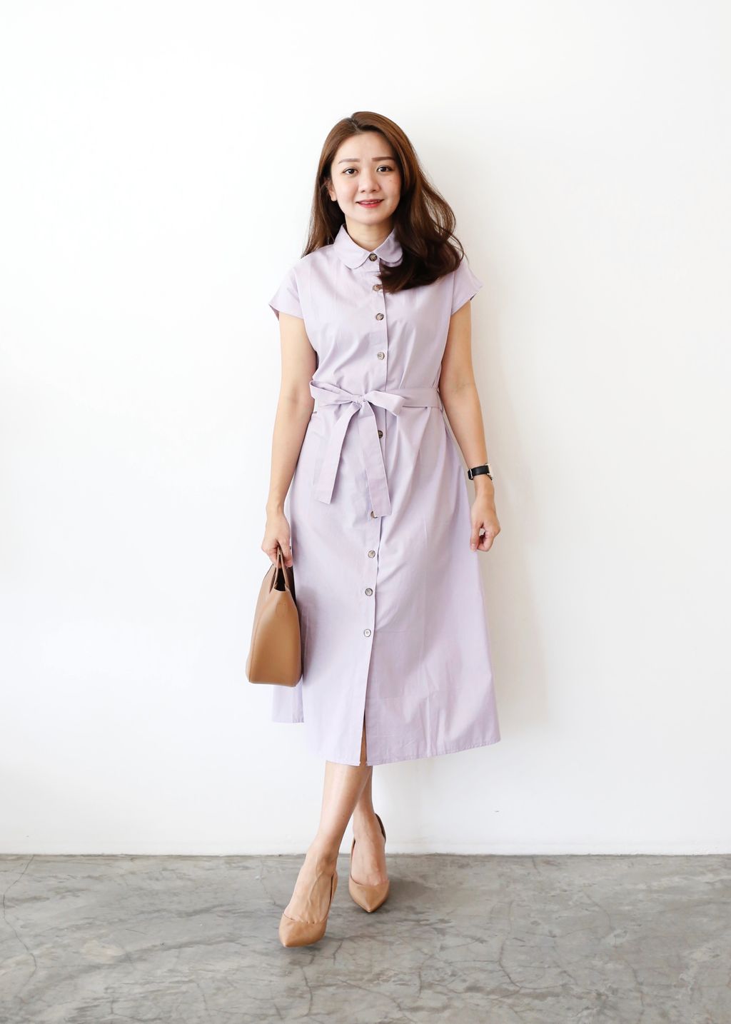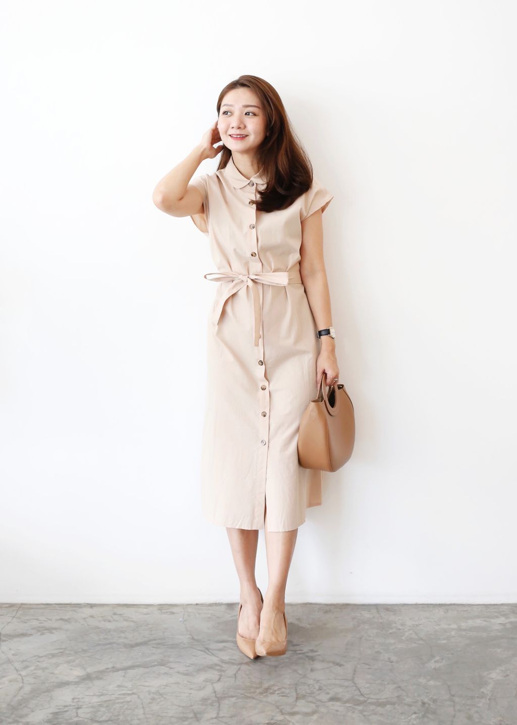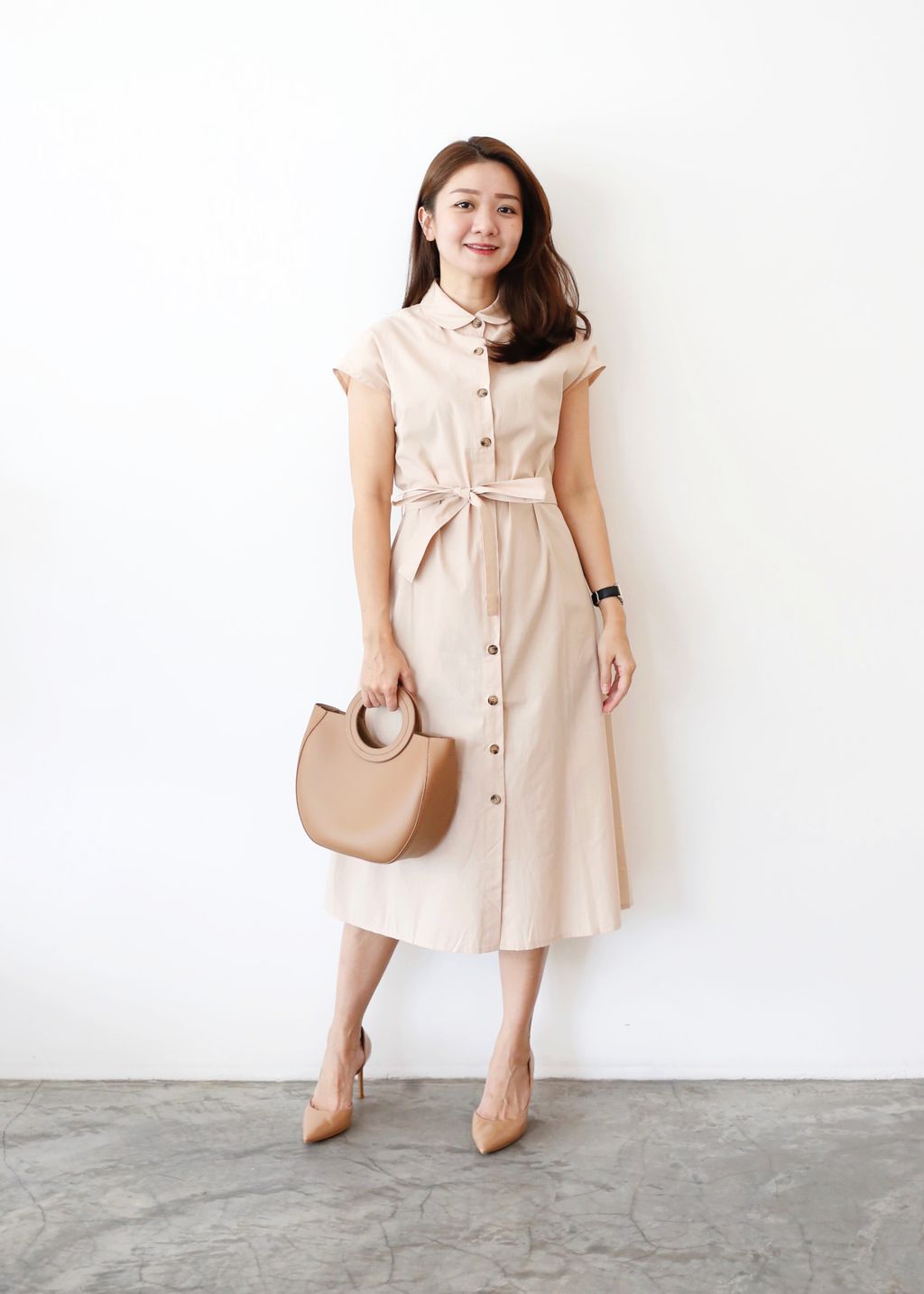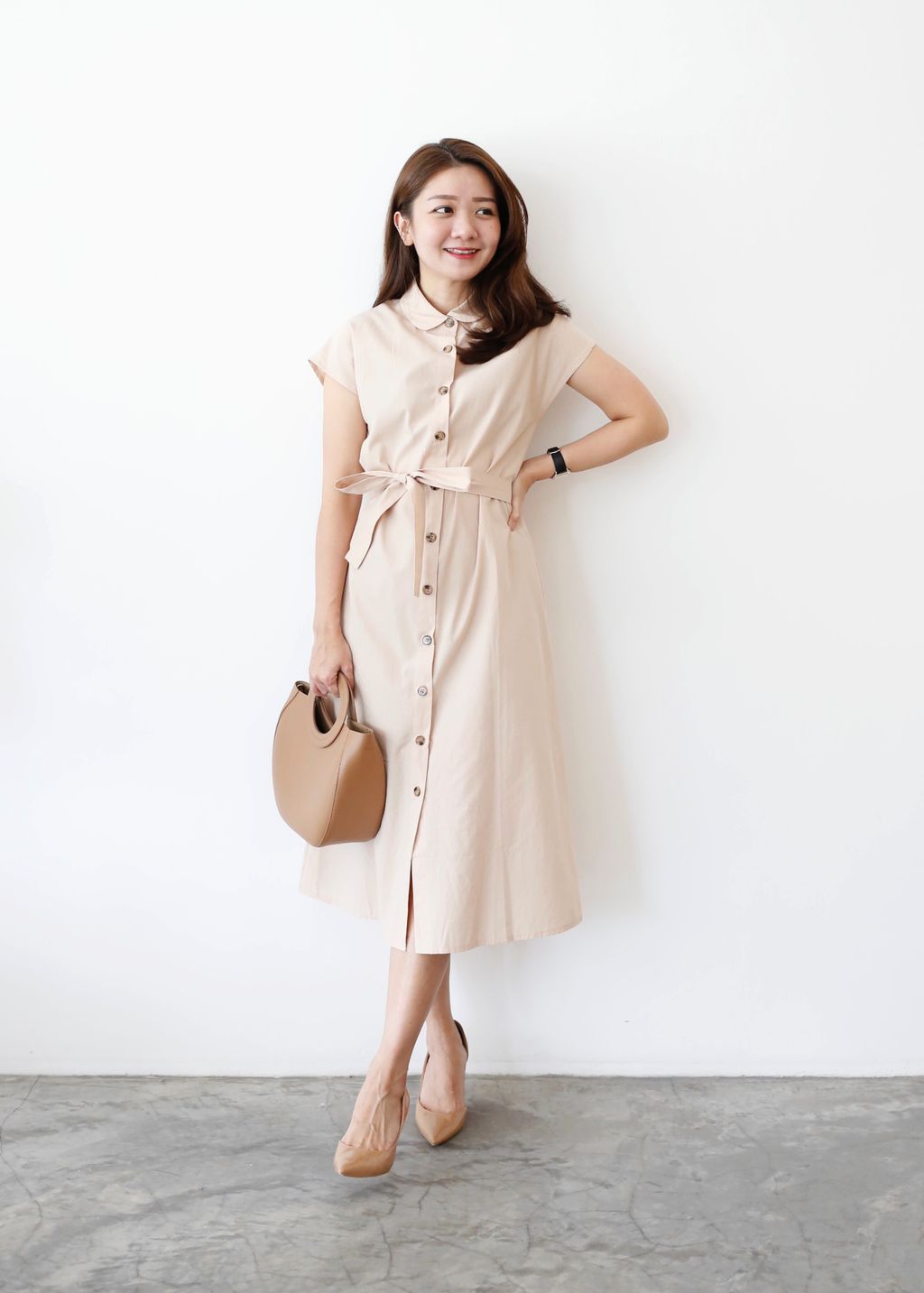 Type: Peter Pan Collar Cap Sleeves Dress | Soft and Thin Cotton Fabric | Belt Can Be Separated | Slightly Sheer for Beige, Inner Dress Sold Separately
