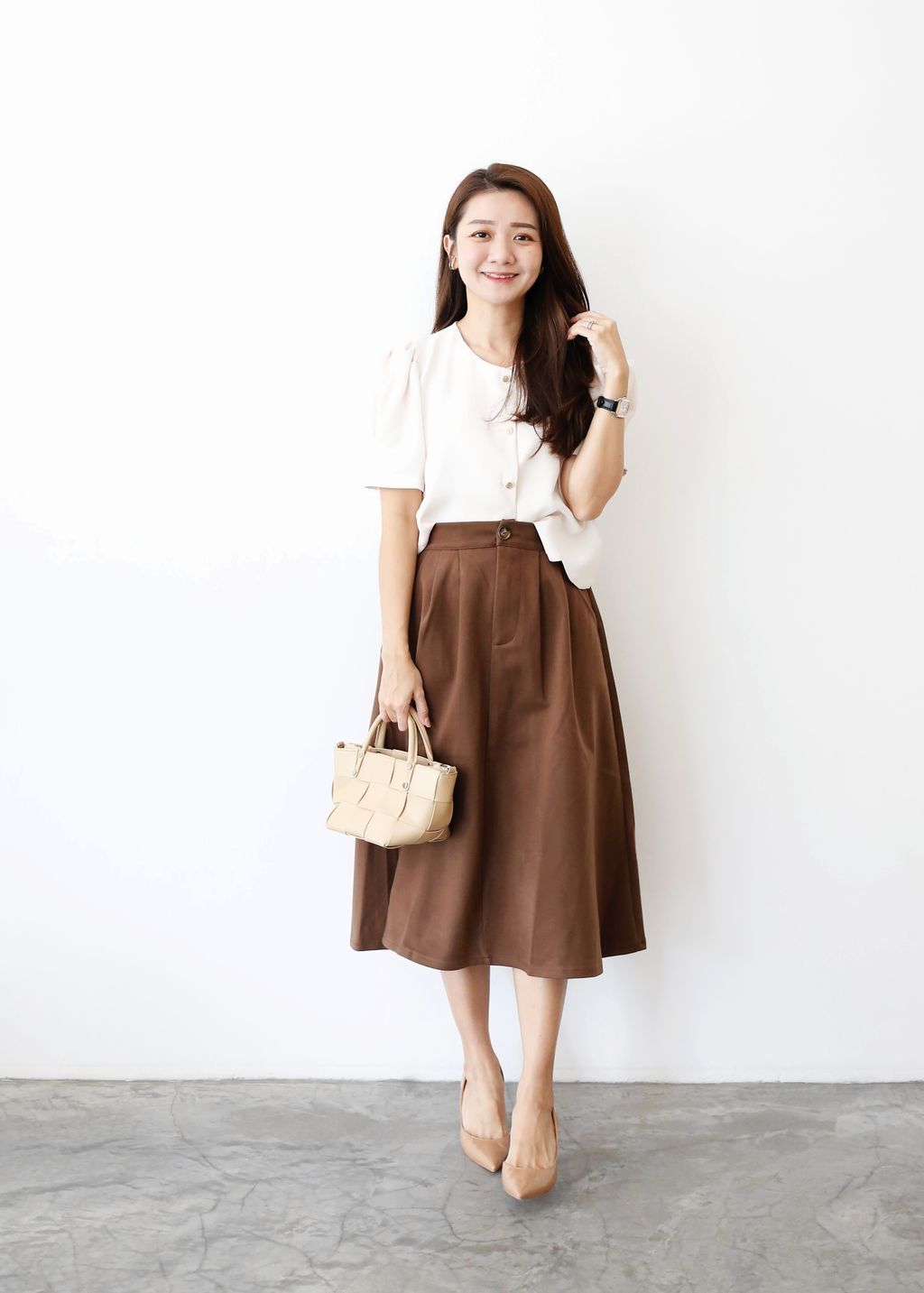 Type: Pleated Front Cotton Circular Skirt | Front Zipper | Side Pockets | Space Cotton Fabric | Stretchable Waistband