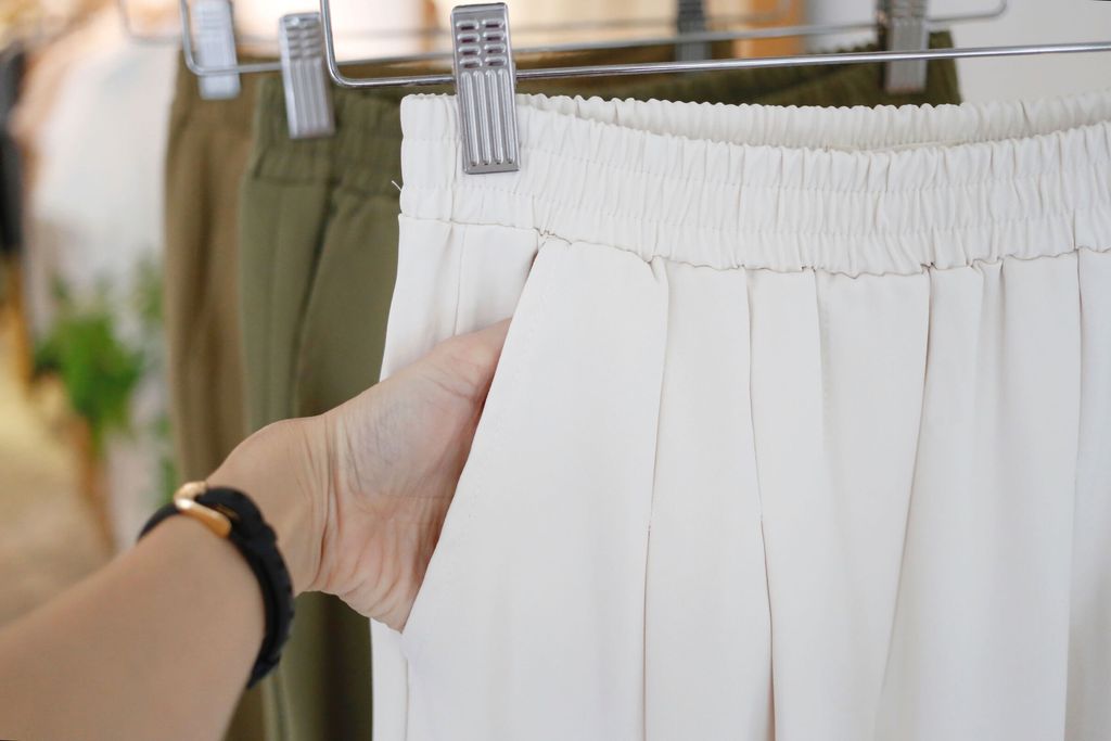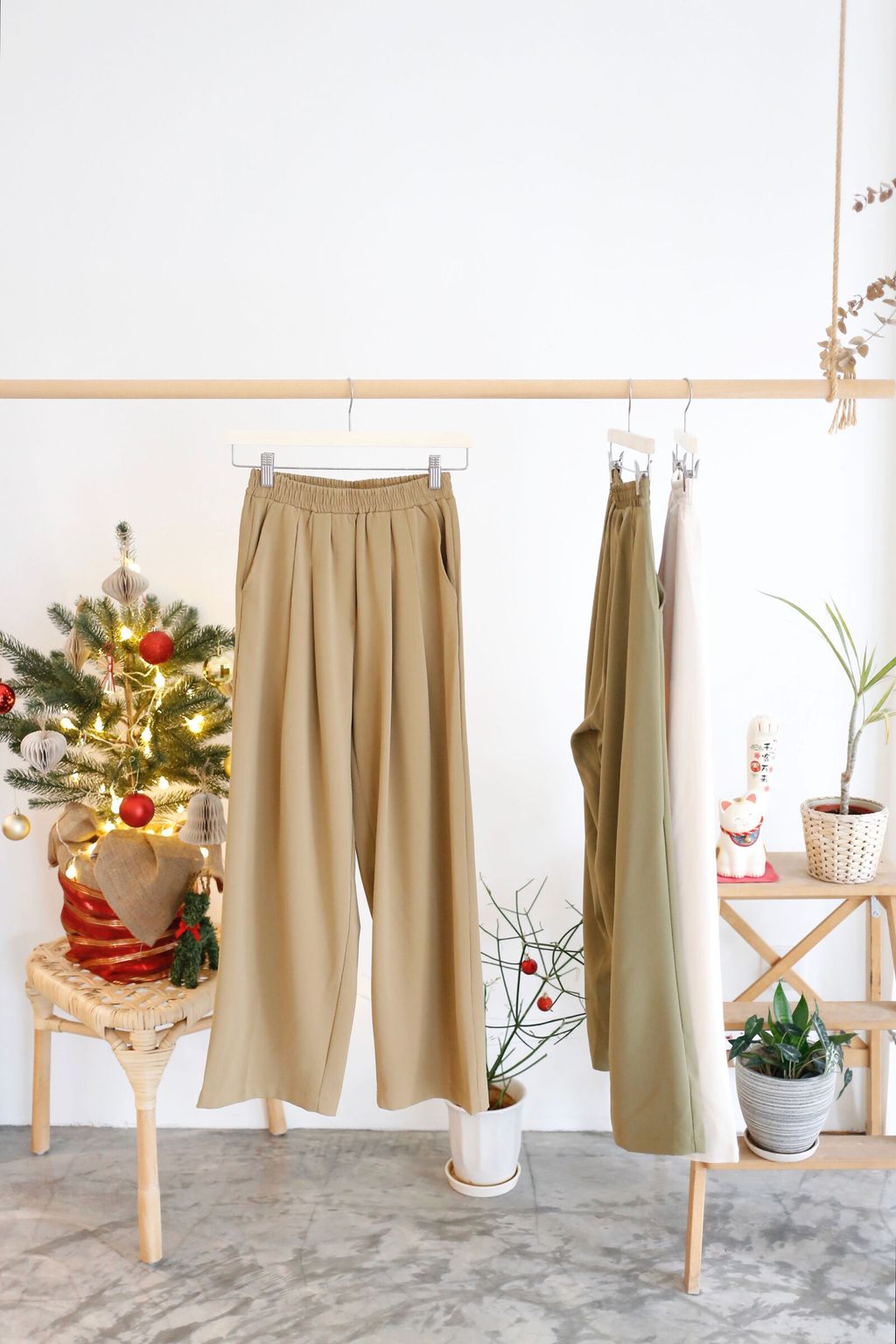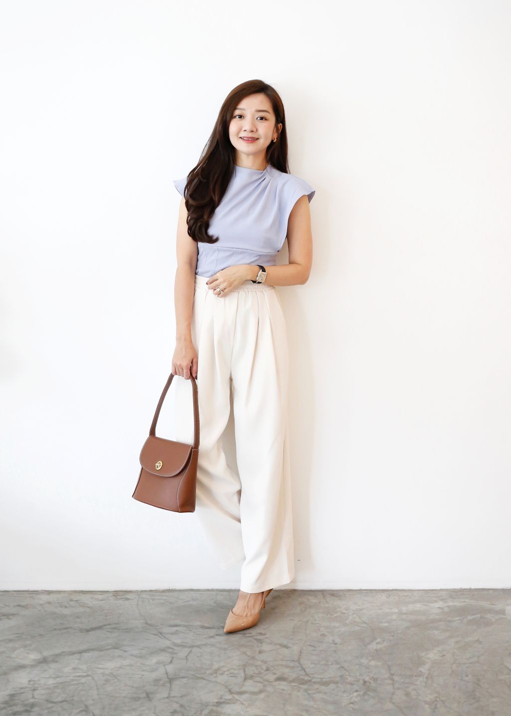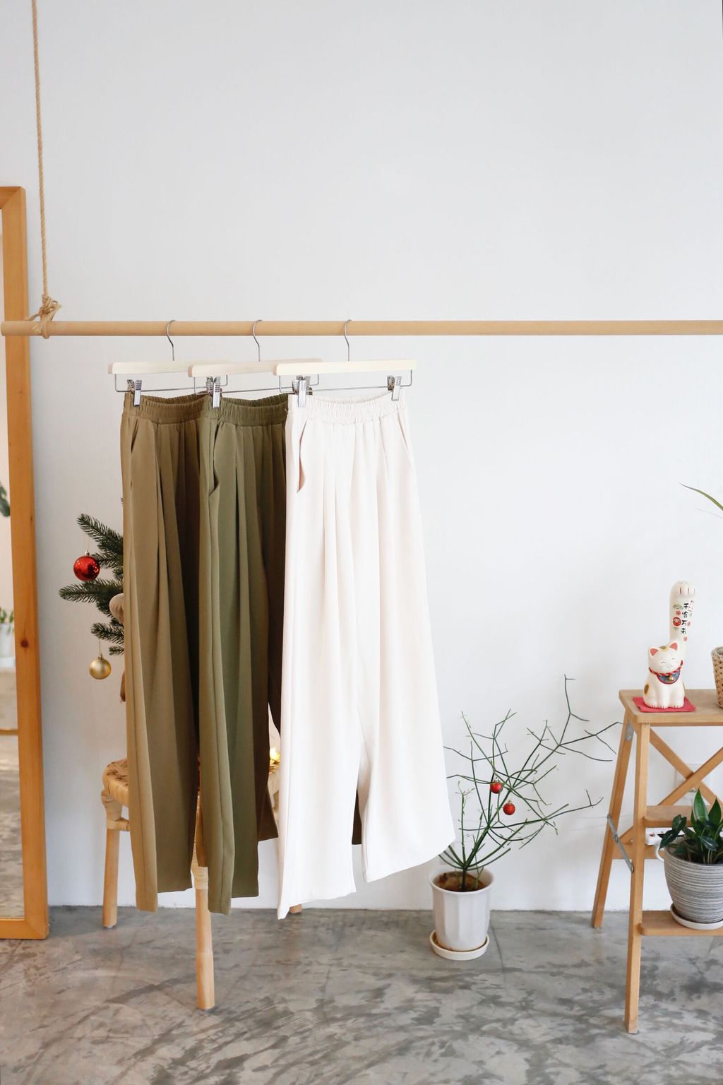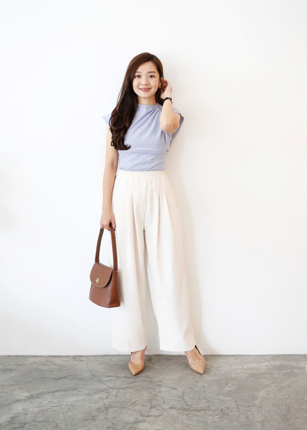 Type: Pleated Front Wide Leg Suit Pants | Suit Fabric | Side Pockets | Stretchable Waistband | Non-Sheer for Cream Color