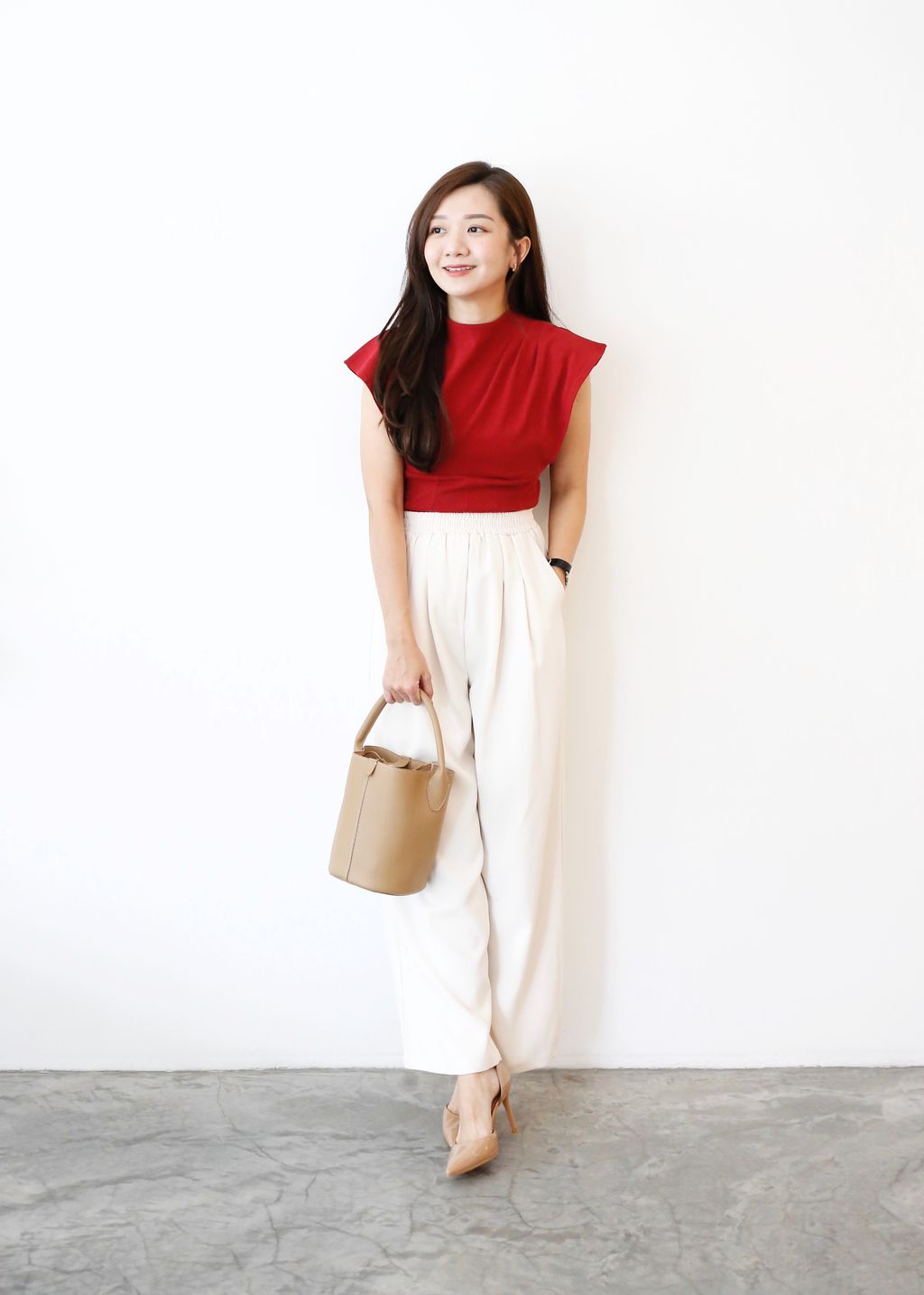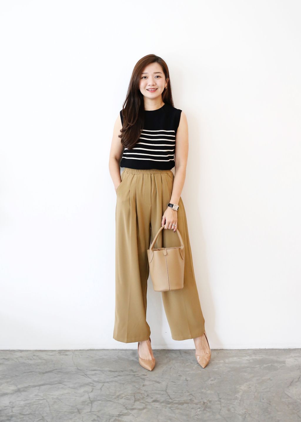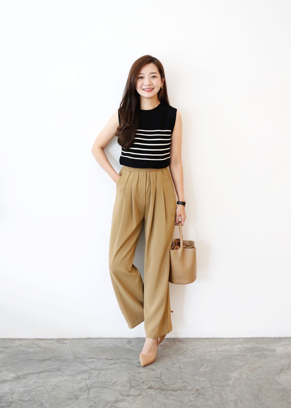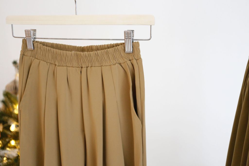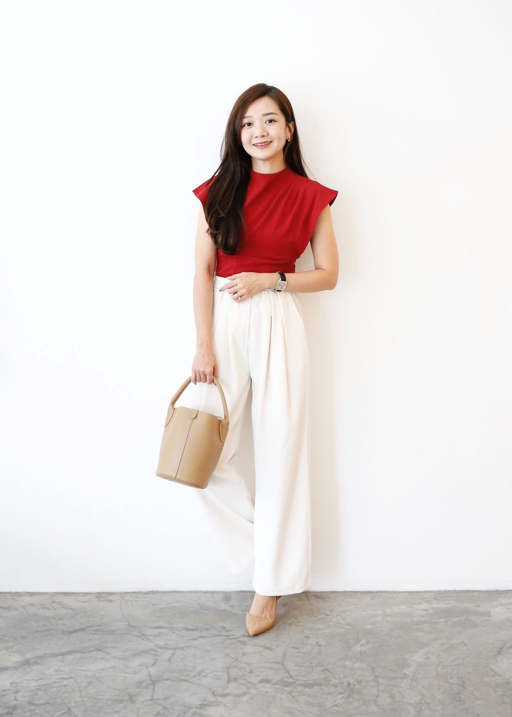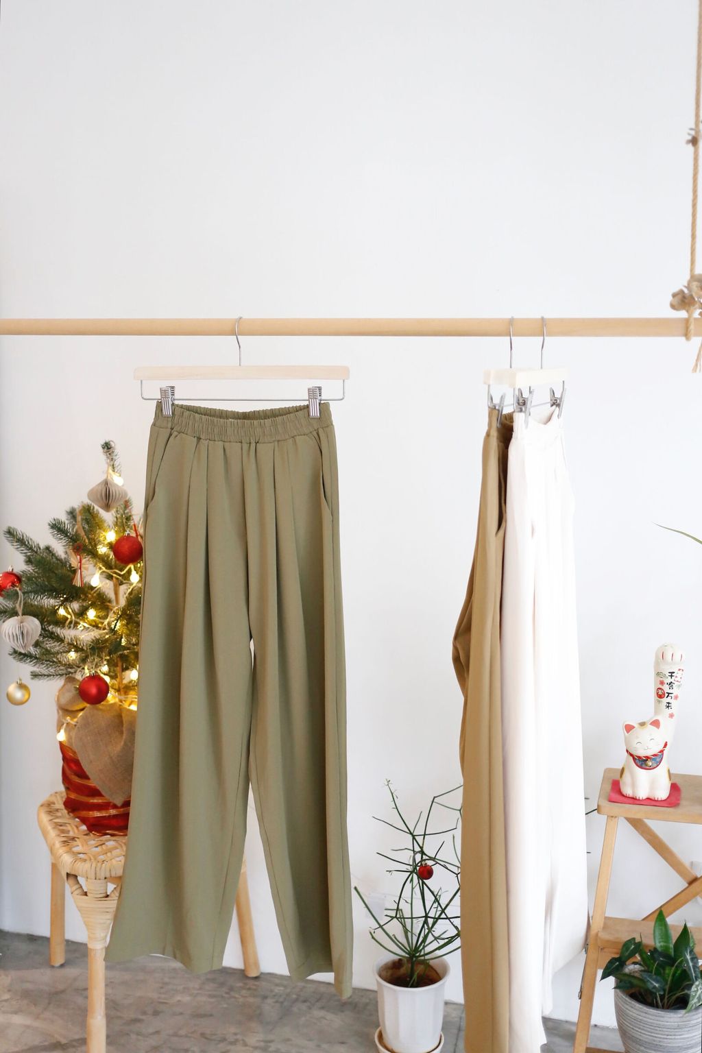 Type: Pleated Front Wide Leg Suit Pants | Suit Fabric | Side Pockets | Stretchable Waistband | Non-Sheer for Cream Color