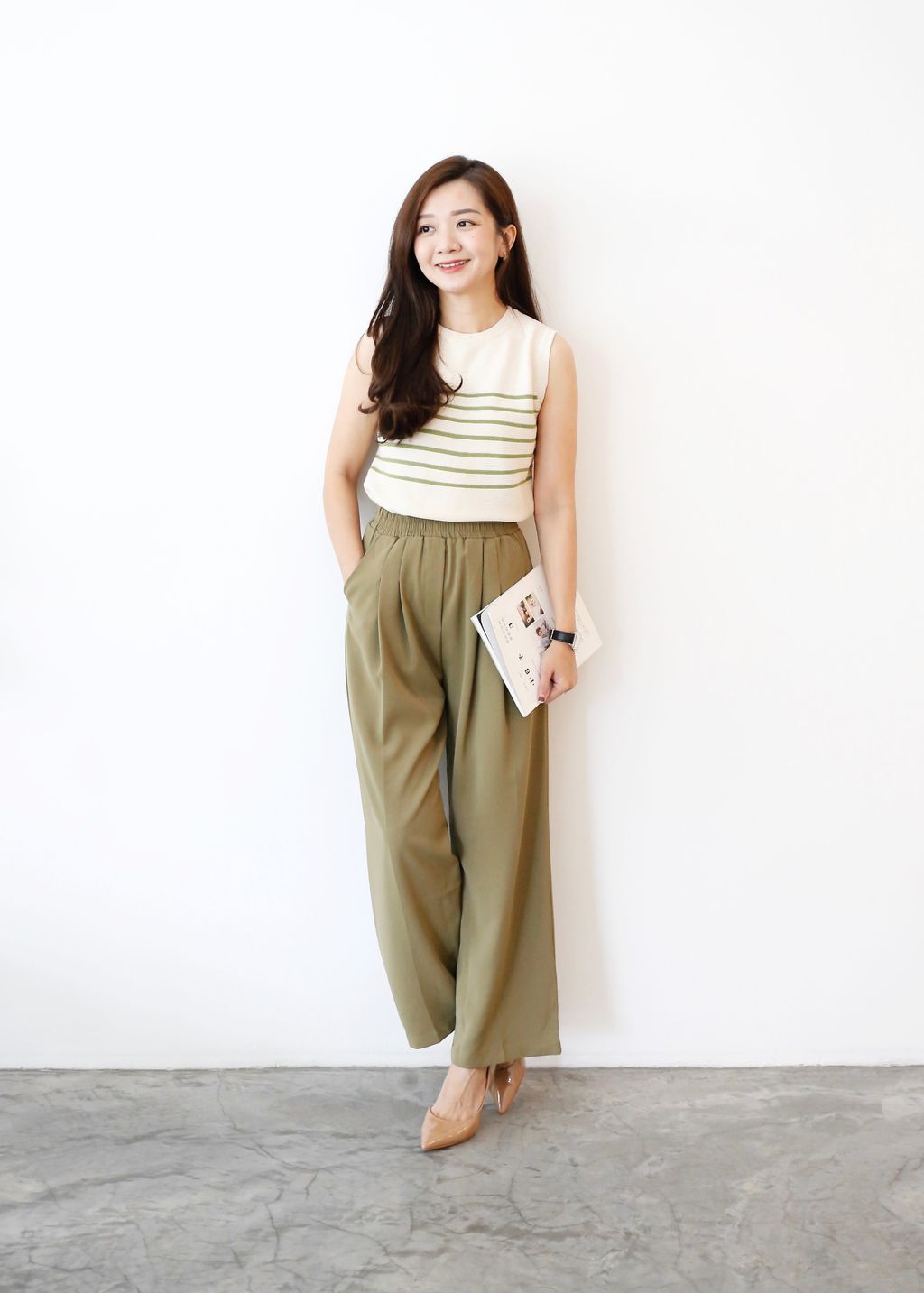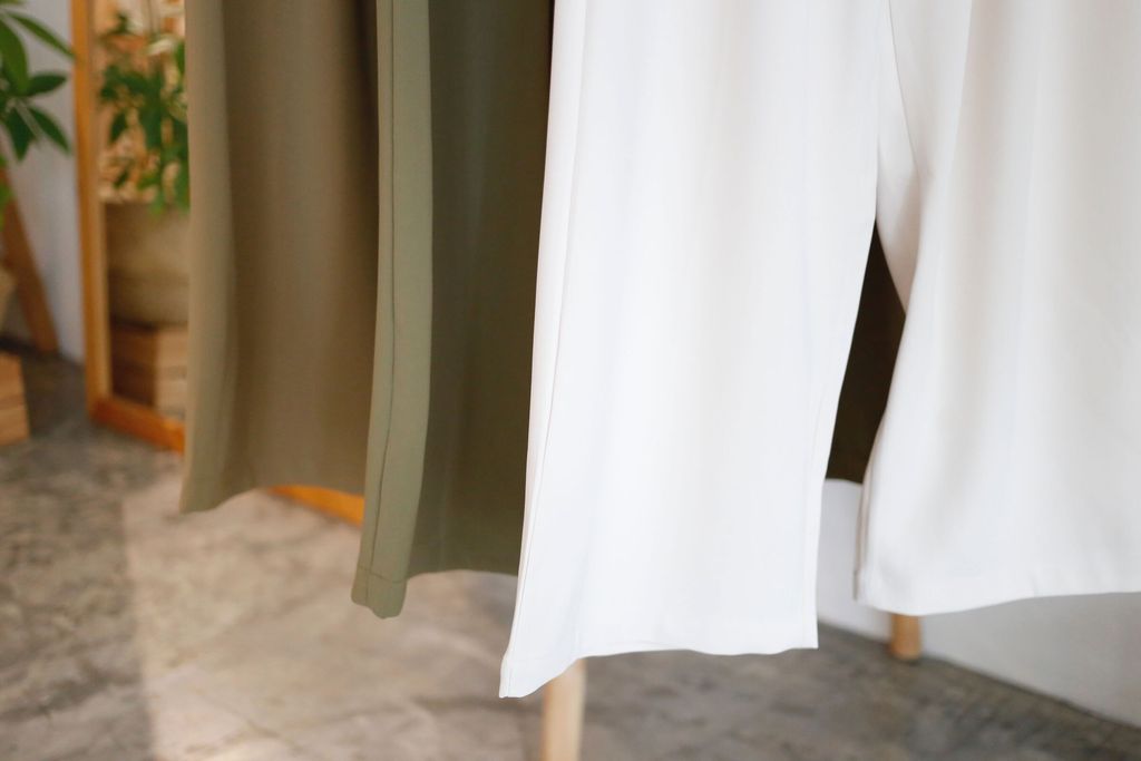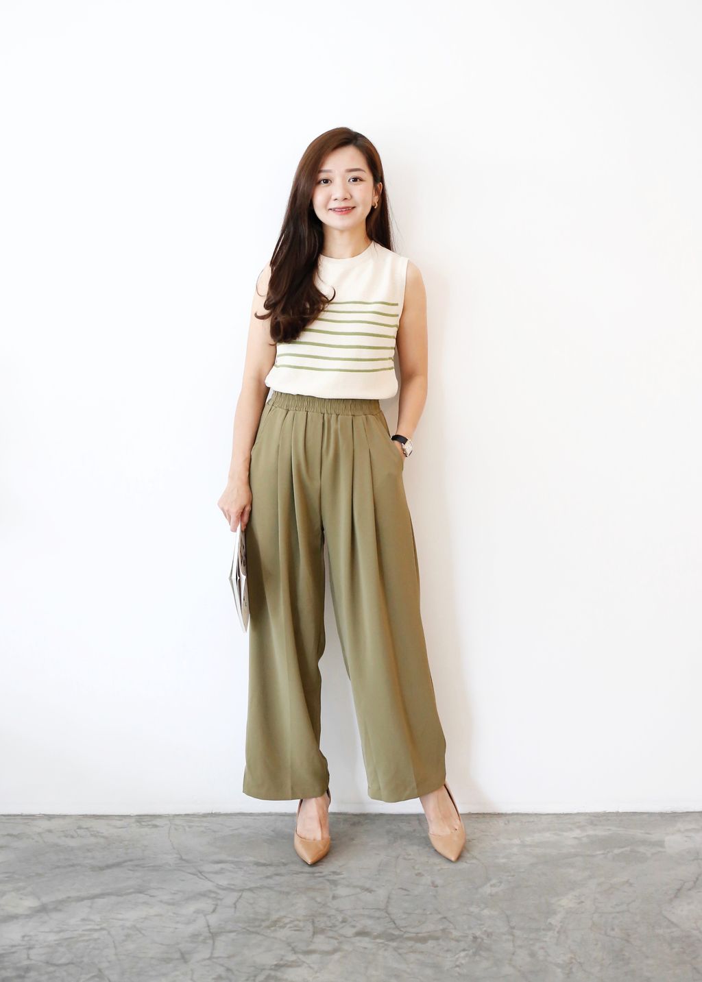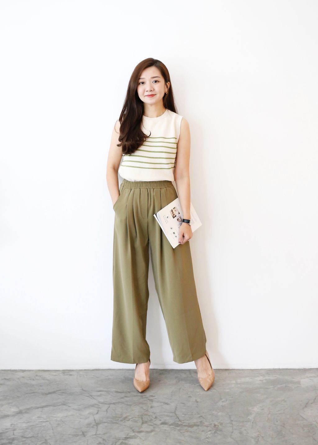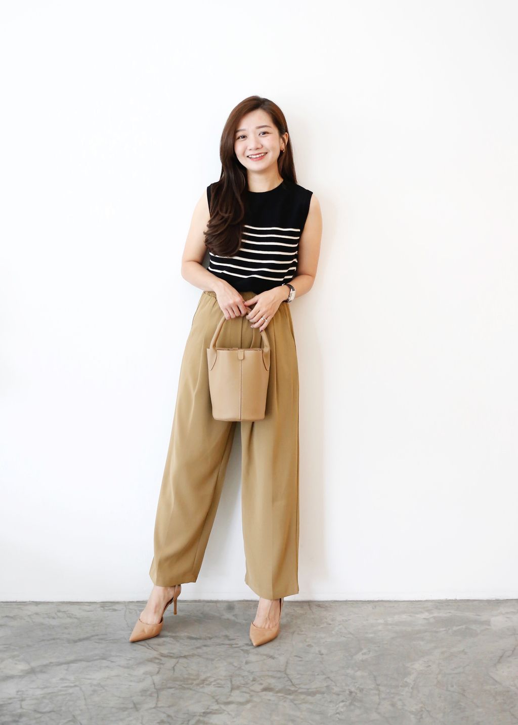 Type: Pleated Front Wide Leg Suit Pants | Suit Fabric | Side Pockets | Stretchable Waistband | Non-Sheer for Cream Color