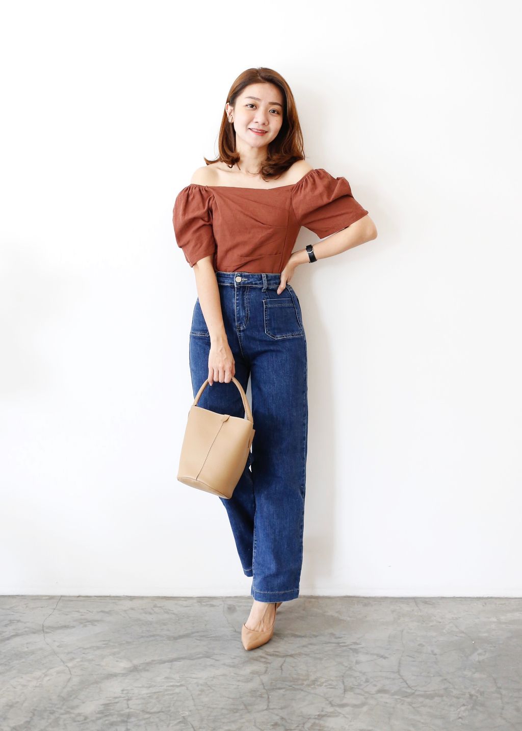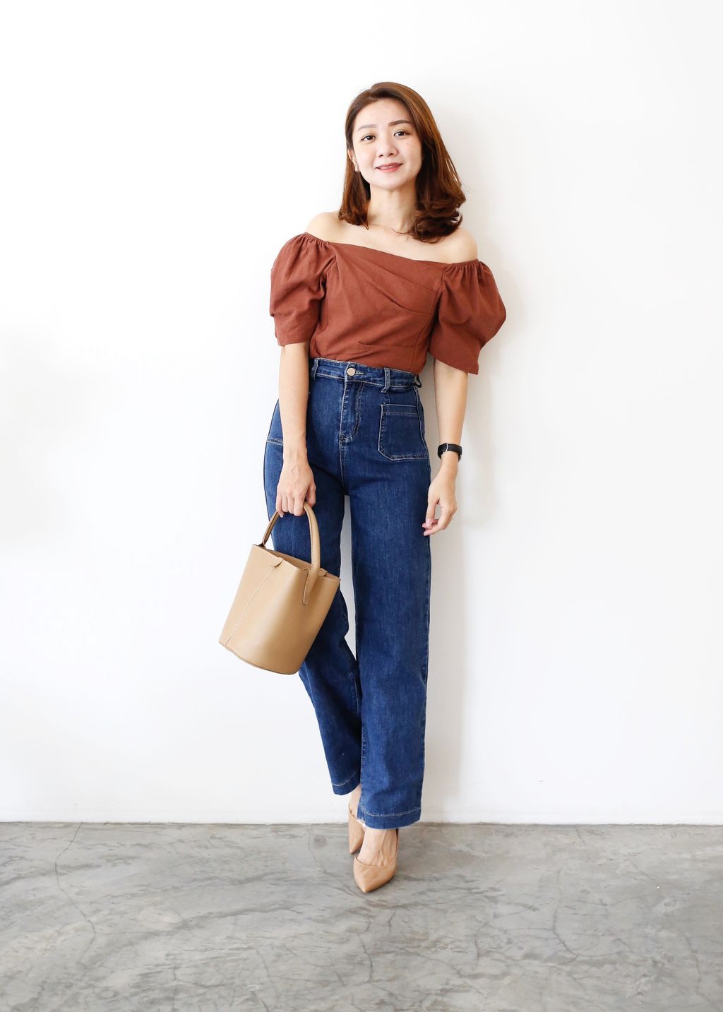 Type: Puffy Sleeves Off Shoulder Blouse | Soft Cotton Blend Fabric | Back Smocked Design
