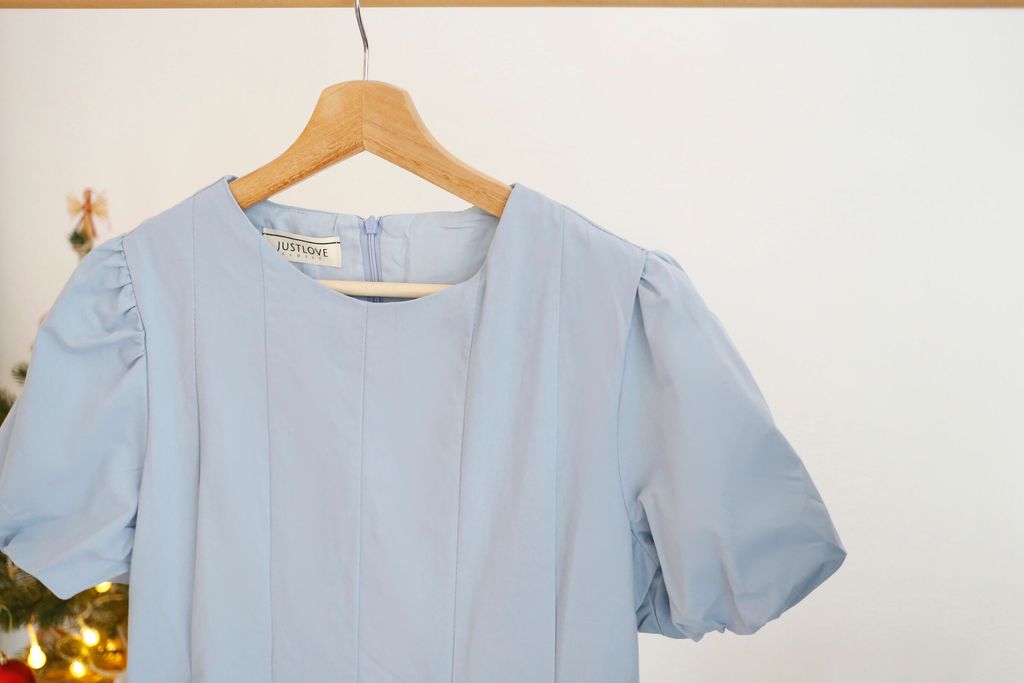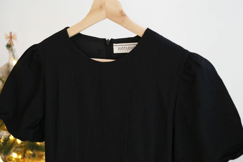 Type: Puffy Sleeves Pleated Flared Hem Dress | Cotton Fabric | Not Stretchable | Comes with Full Lining | Back Zipper